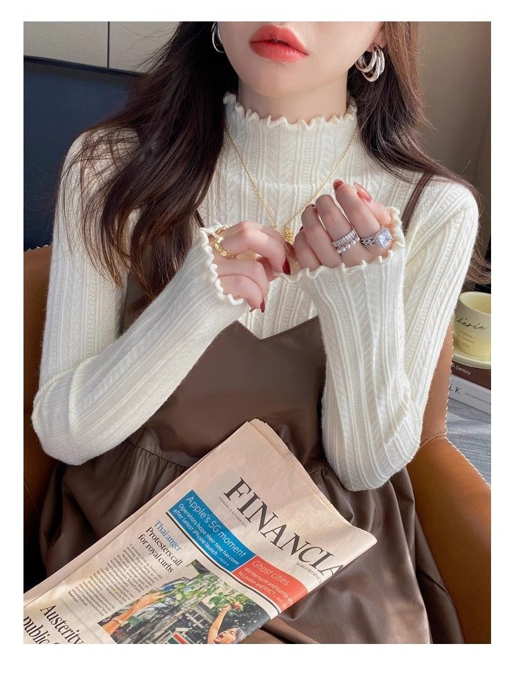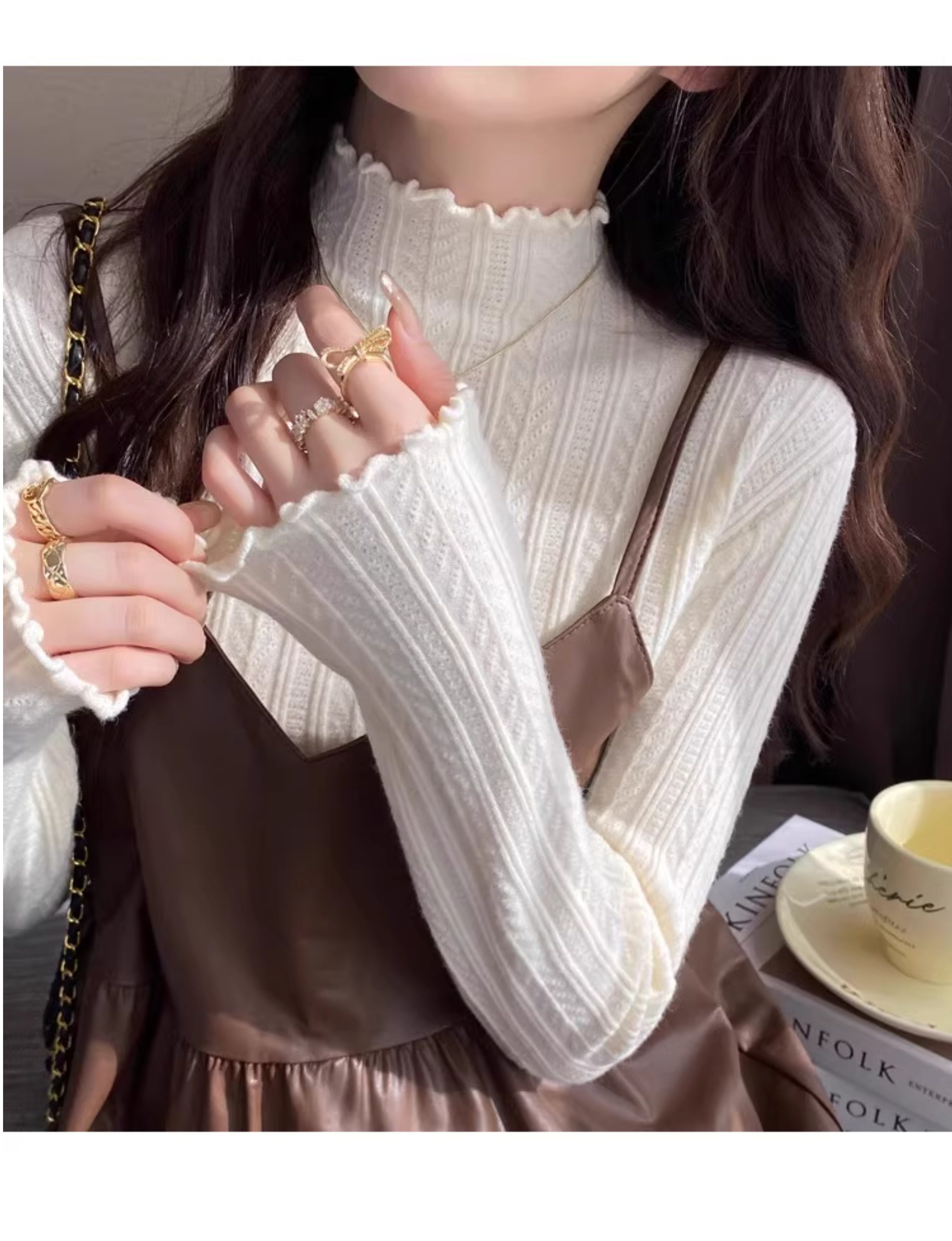 【60%OFF⭐️早い者勝ち】【トップス】マストハブ!シンプル&万能 フリル付き リブニット インナーTシャツ コーデ No.1【JZシリーズ】