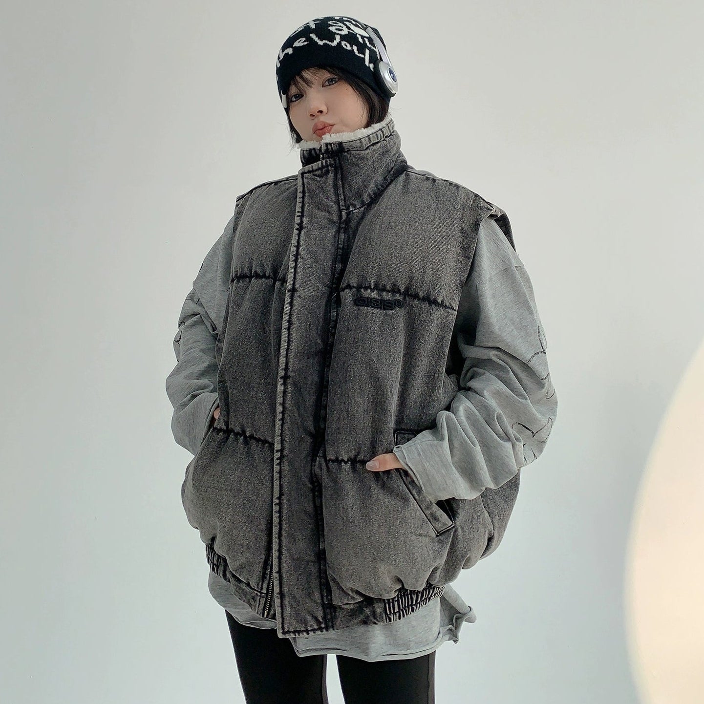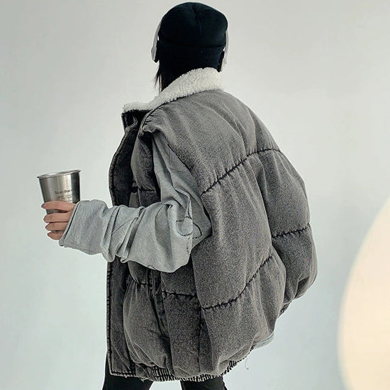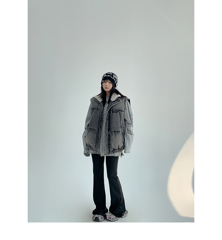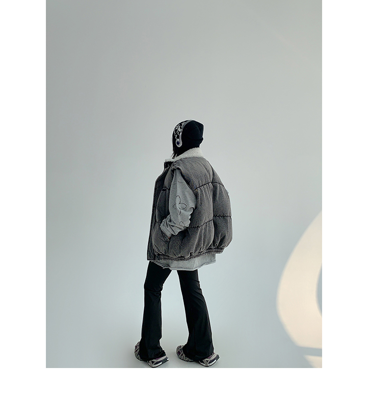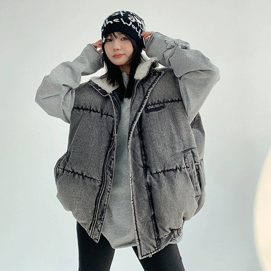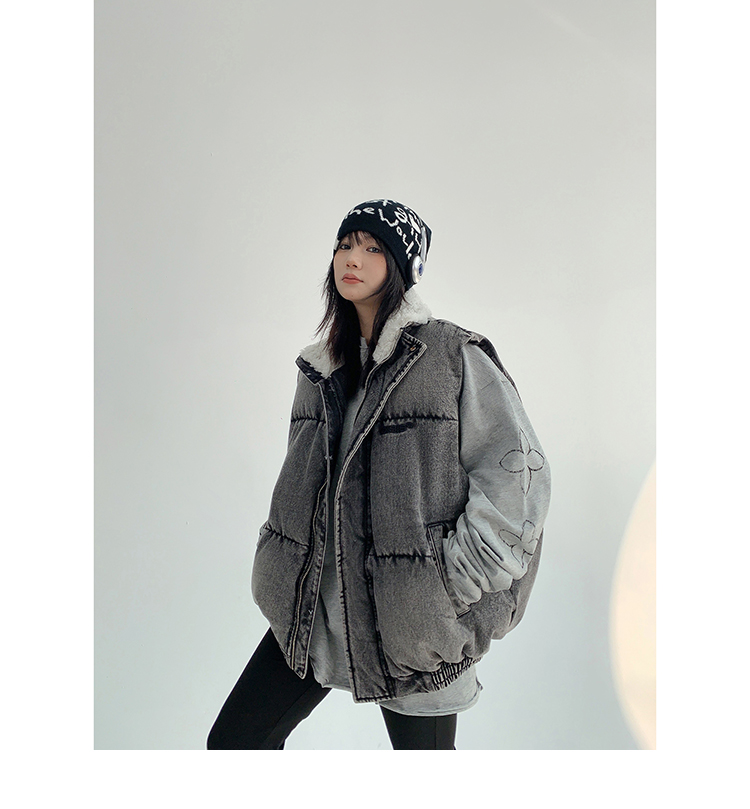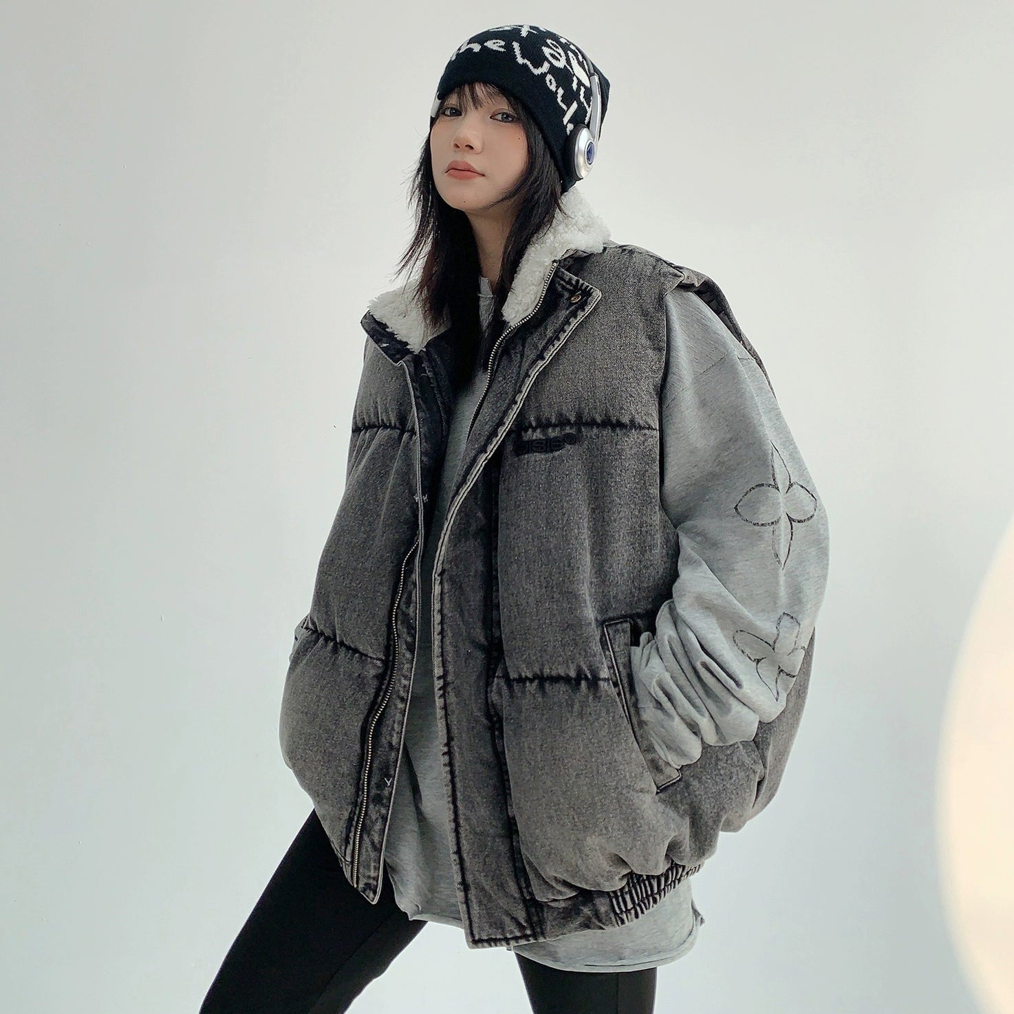 【商品名】【アウター】春 秋 冬 アメリカンスタイル ヴィンテージ加工 厚手 デニム 綿入れコート