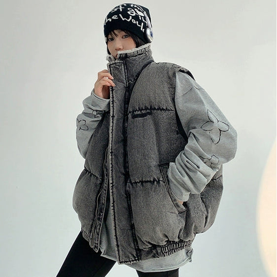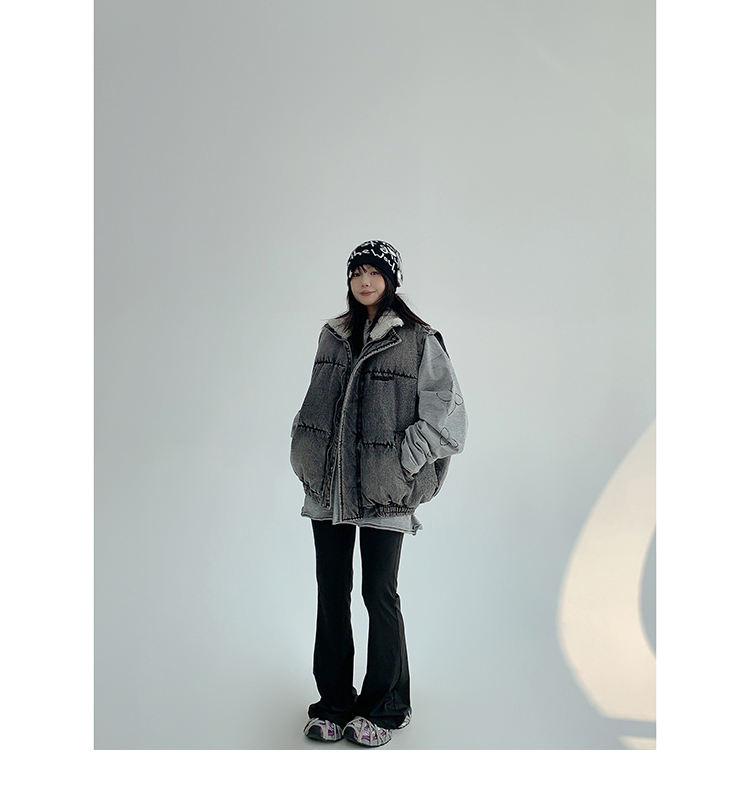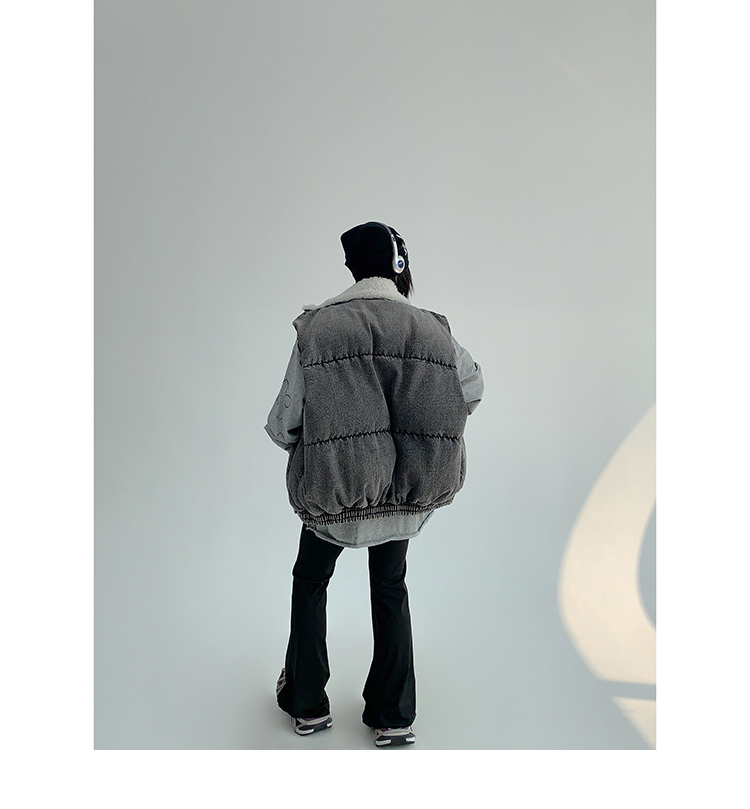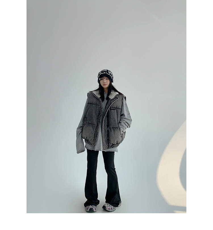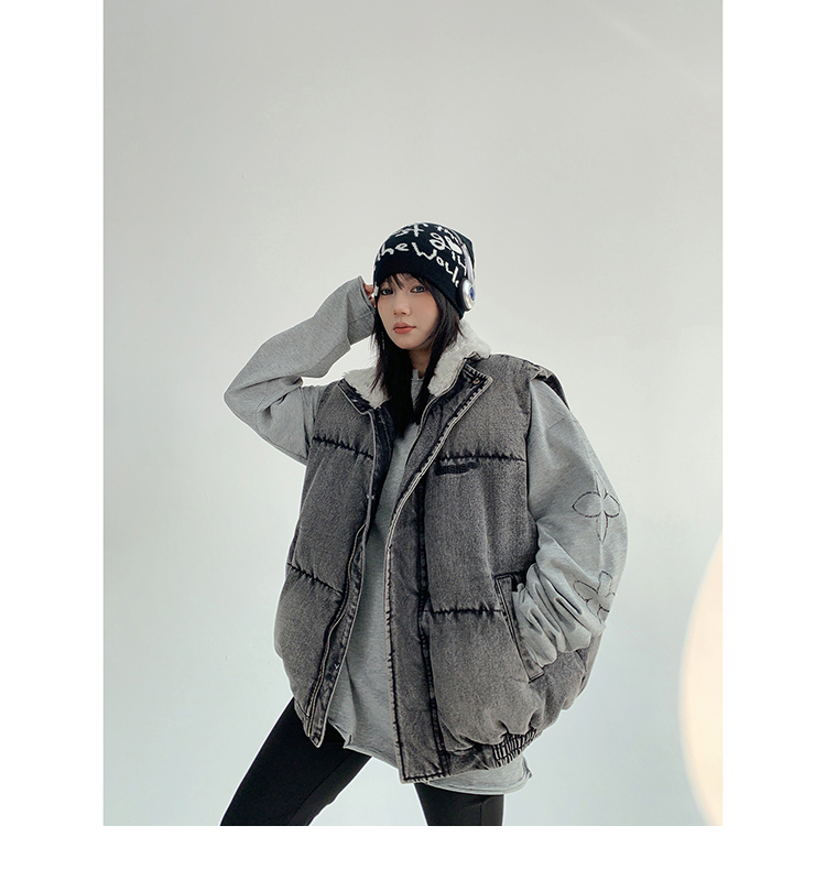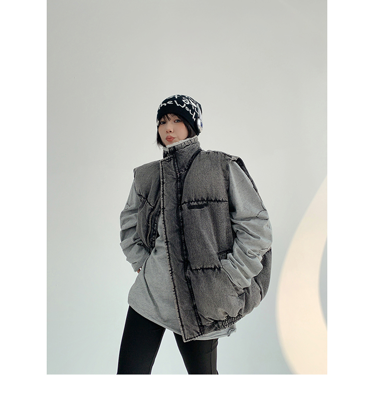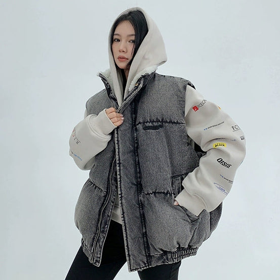 【商品名】【アウター】春 秋 冬 アメリカンスタイル ヴィンテージ加工 厚手 デニム 綿入れコート