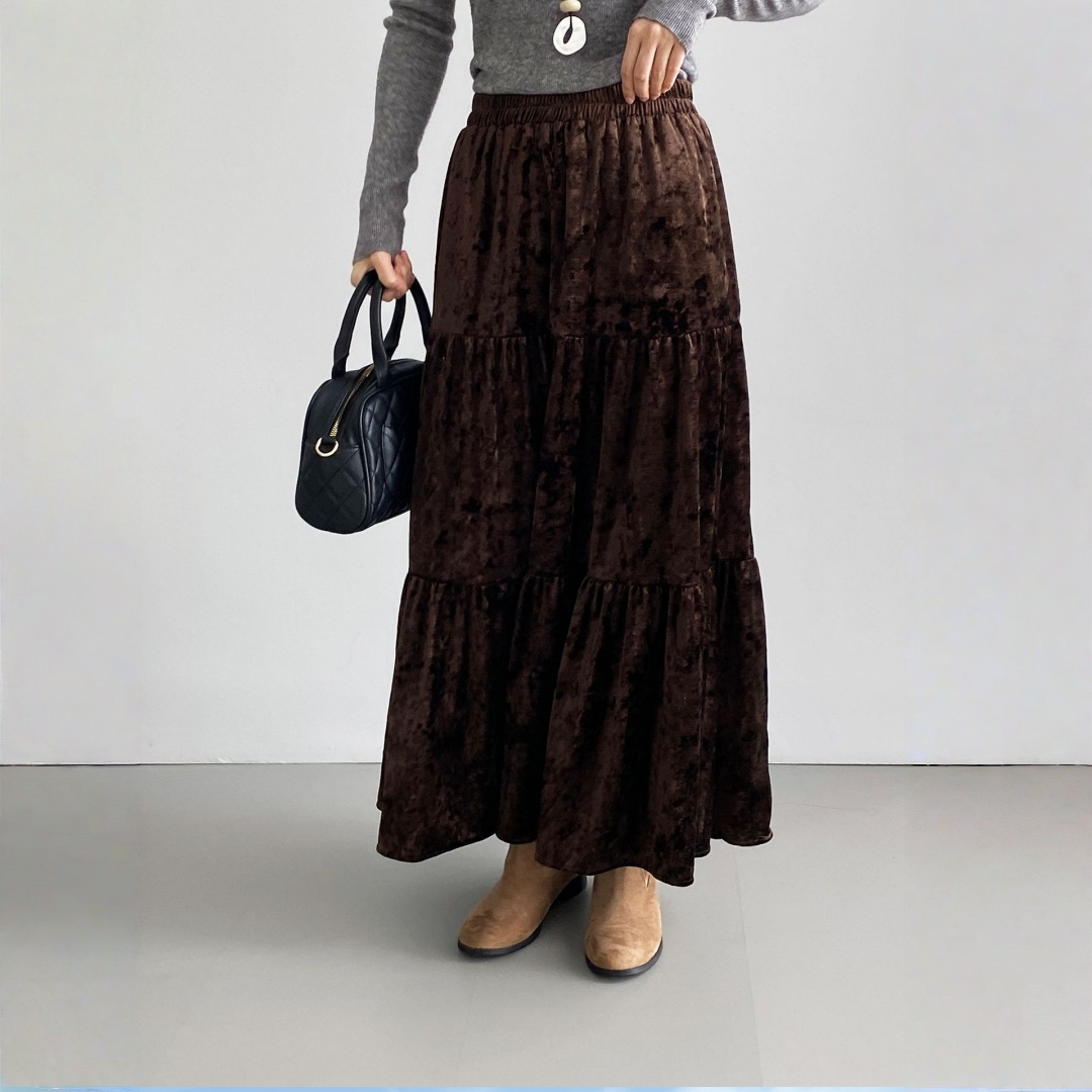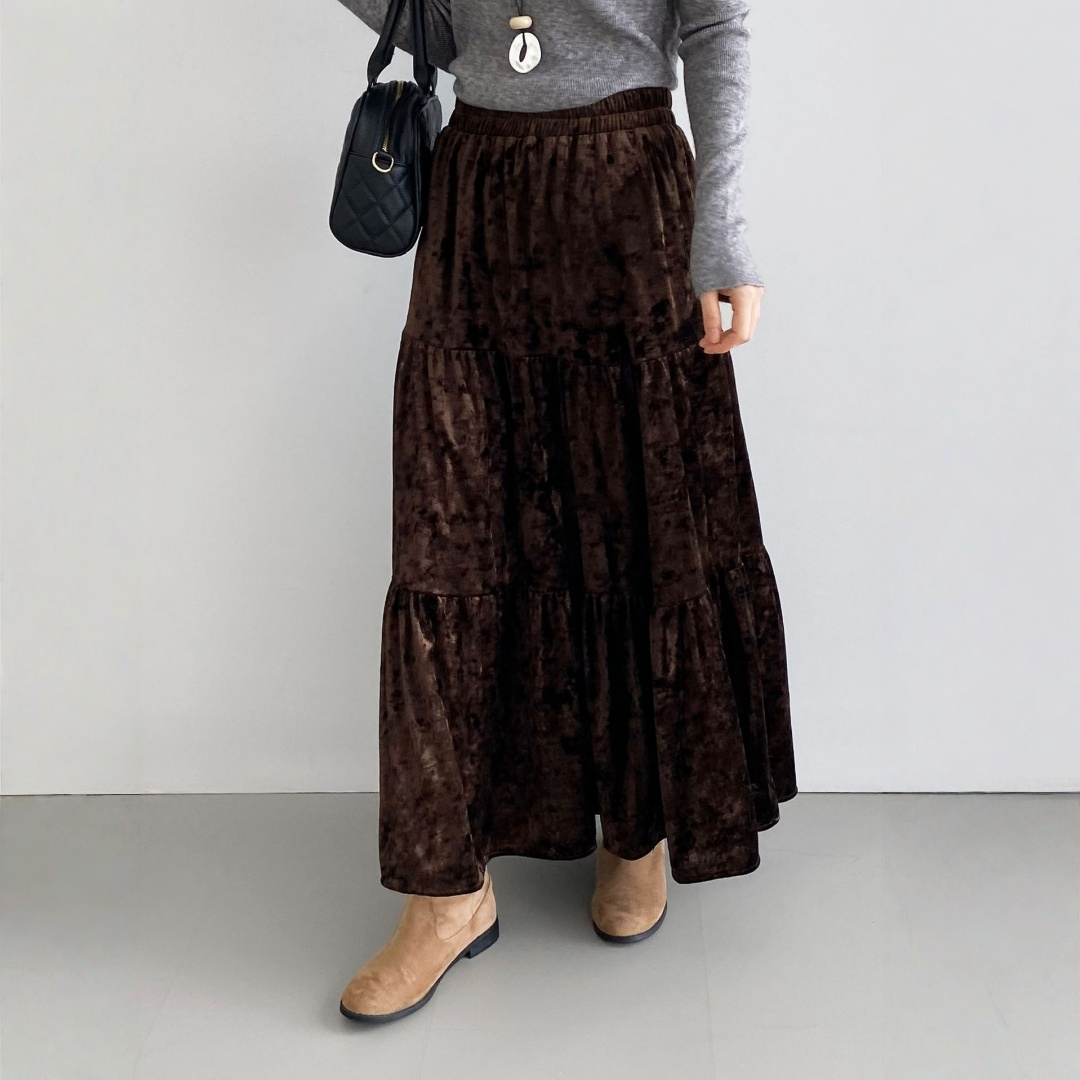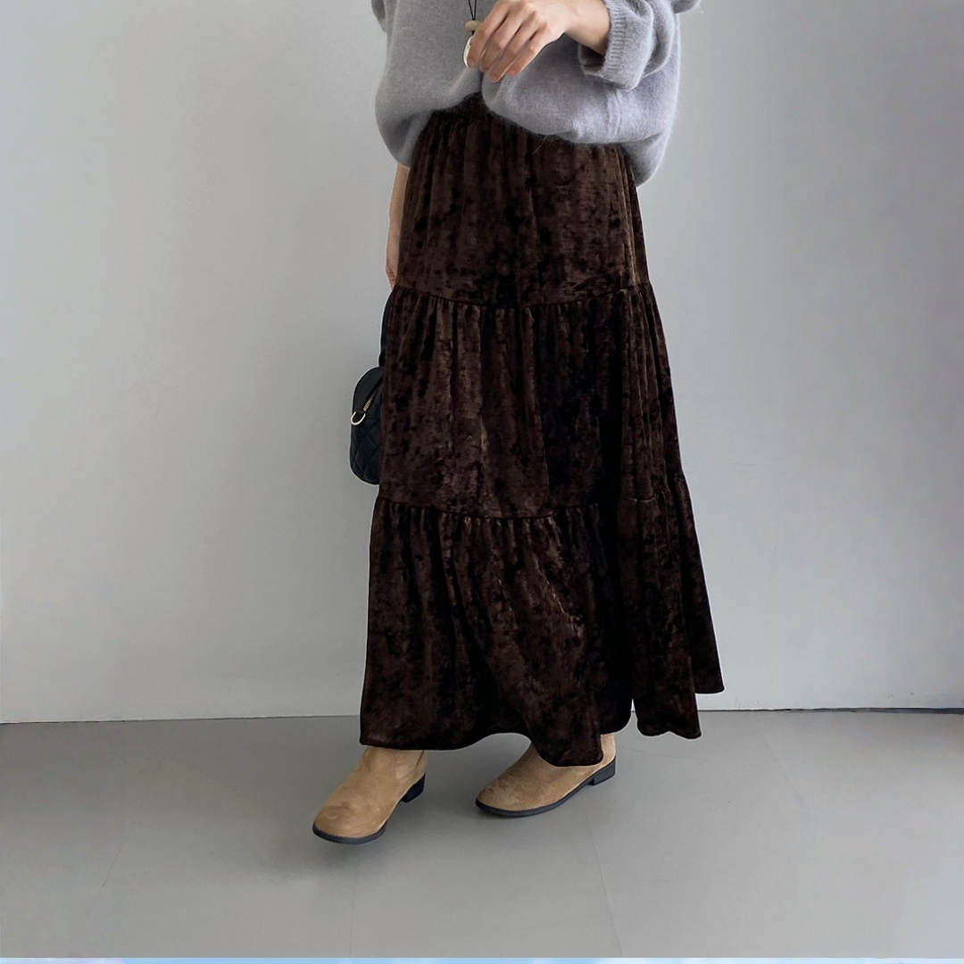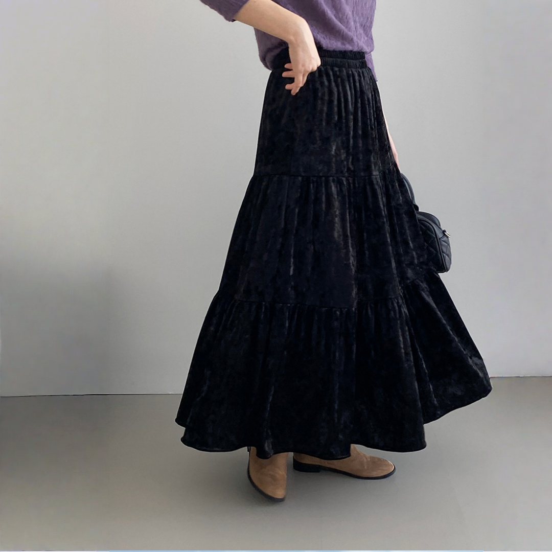 【ボトムス】春 秋 冬 ウエストゴム入り ベルベット素材 フレア スカート 【JZシリーズ】