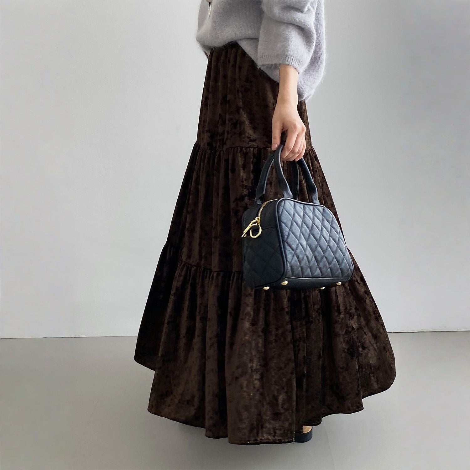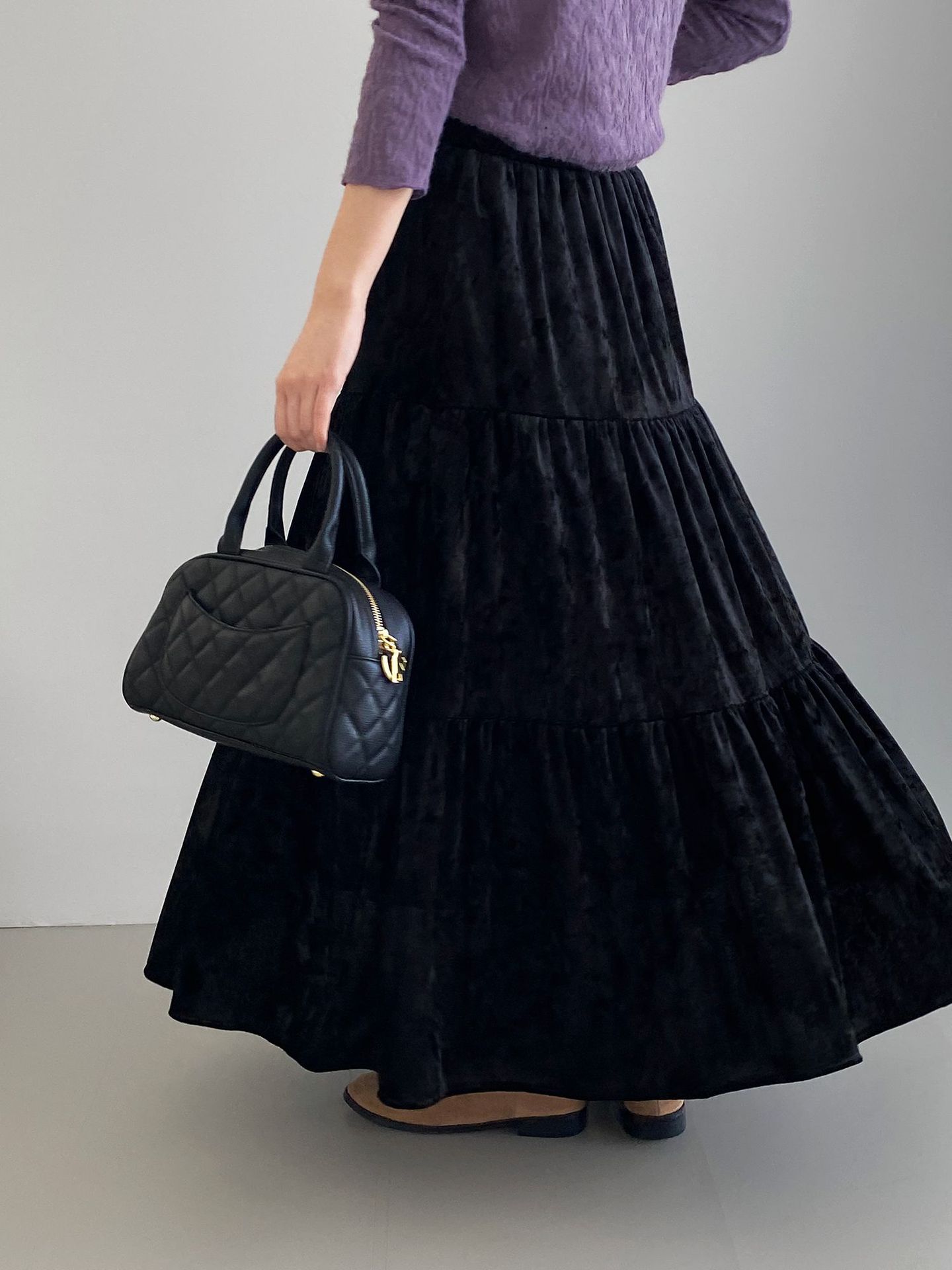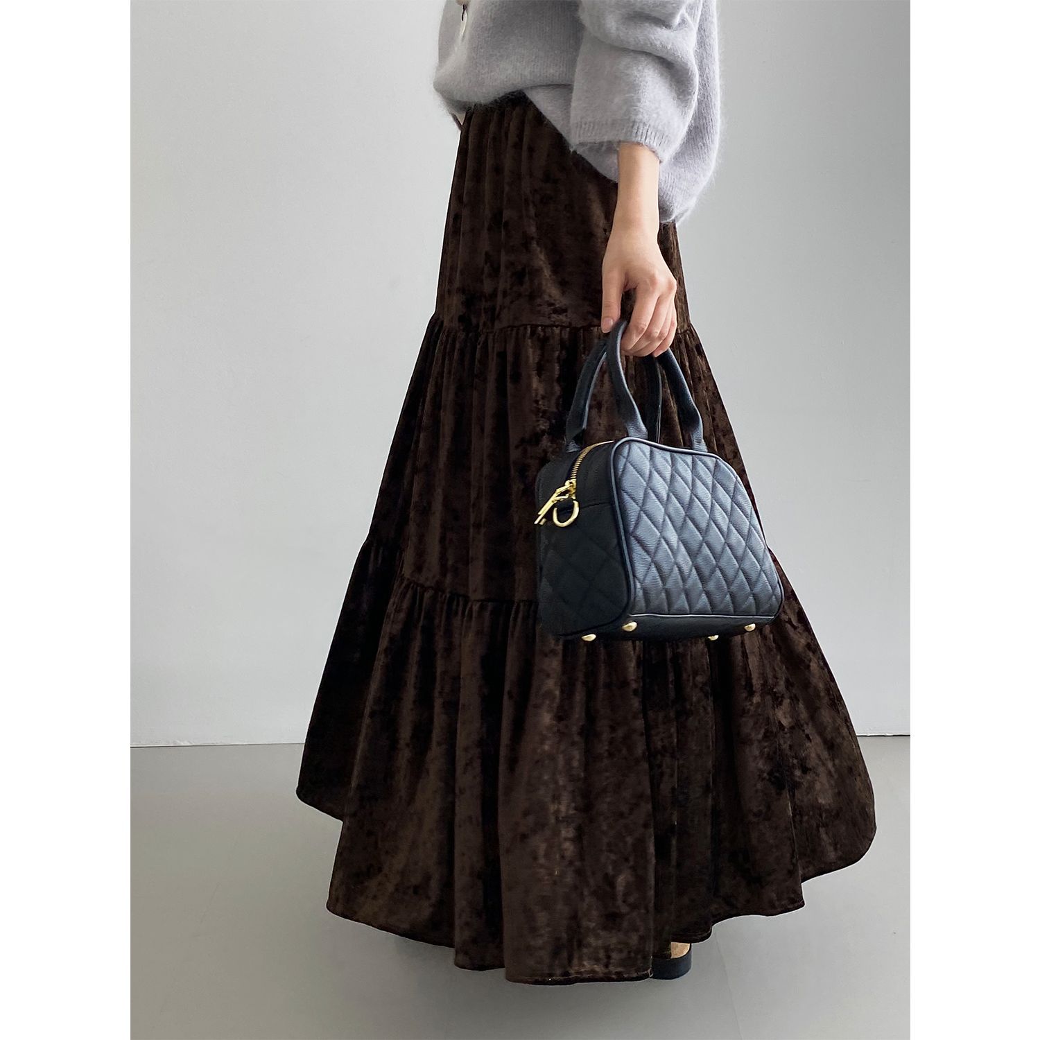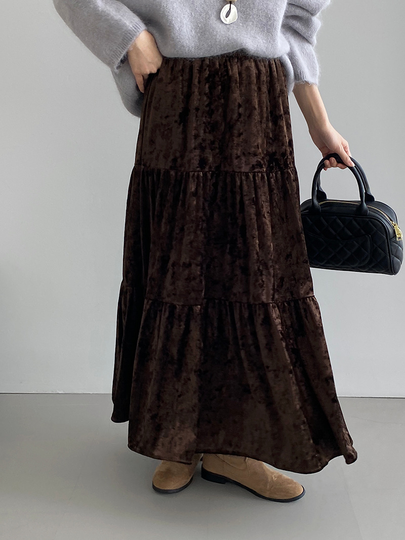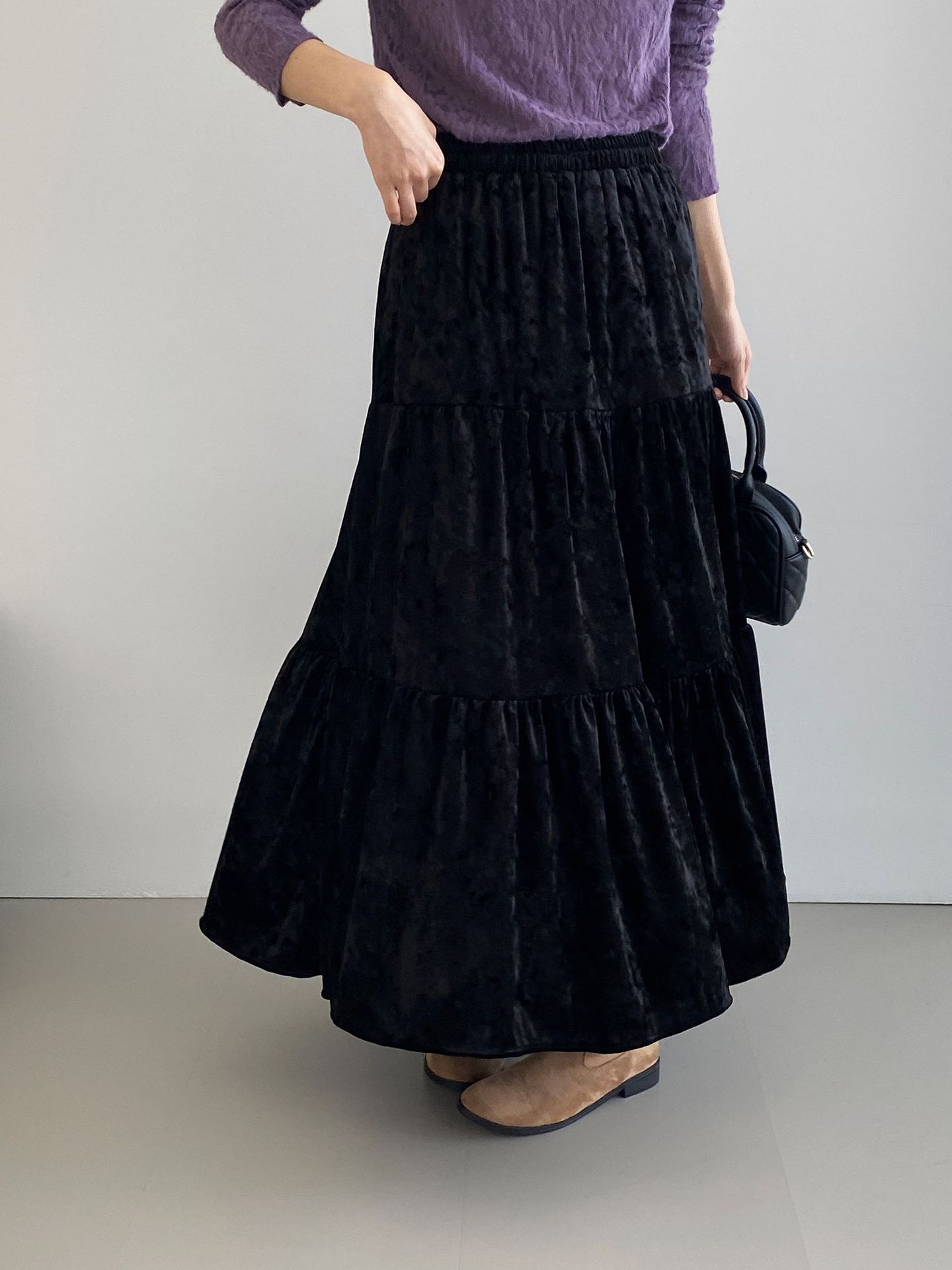 【ボトムス】春 秋 冬 ウエストゴム入り ベルベット素材 フレア スカート 【JZシリーズ】