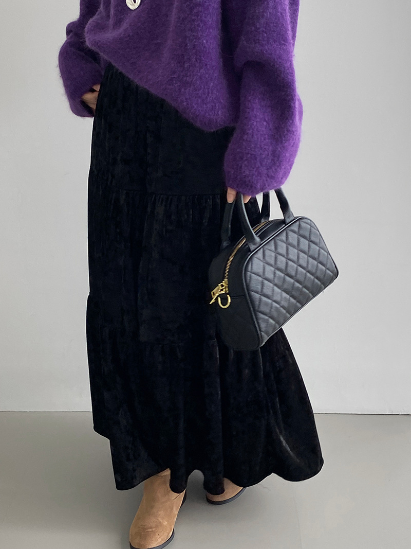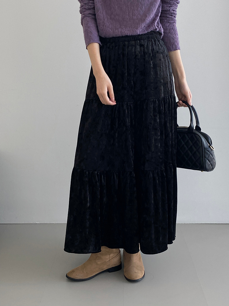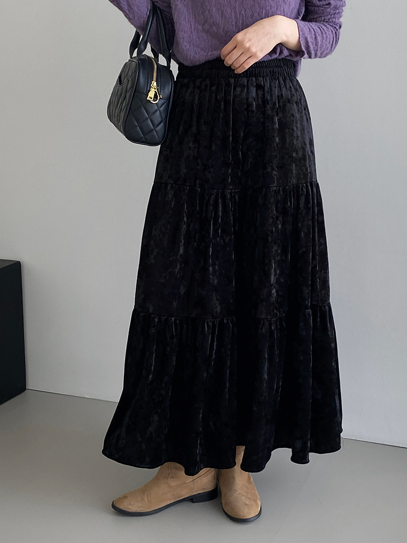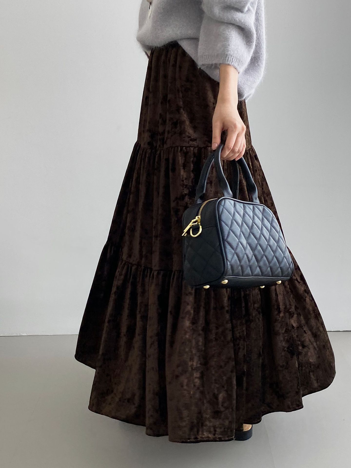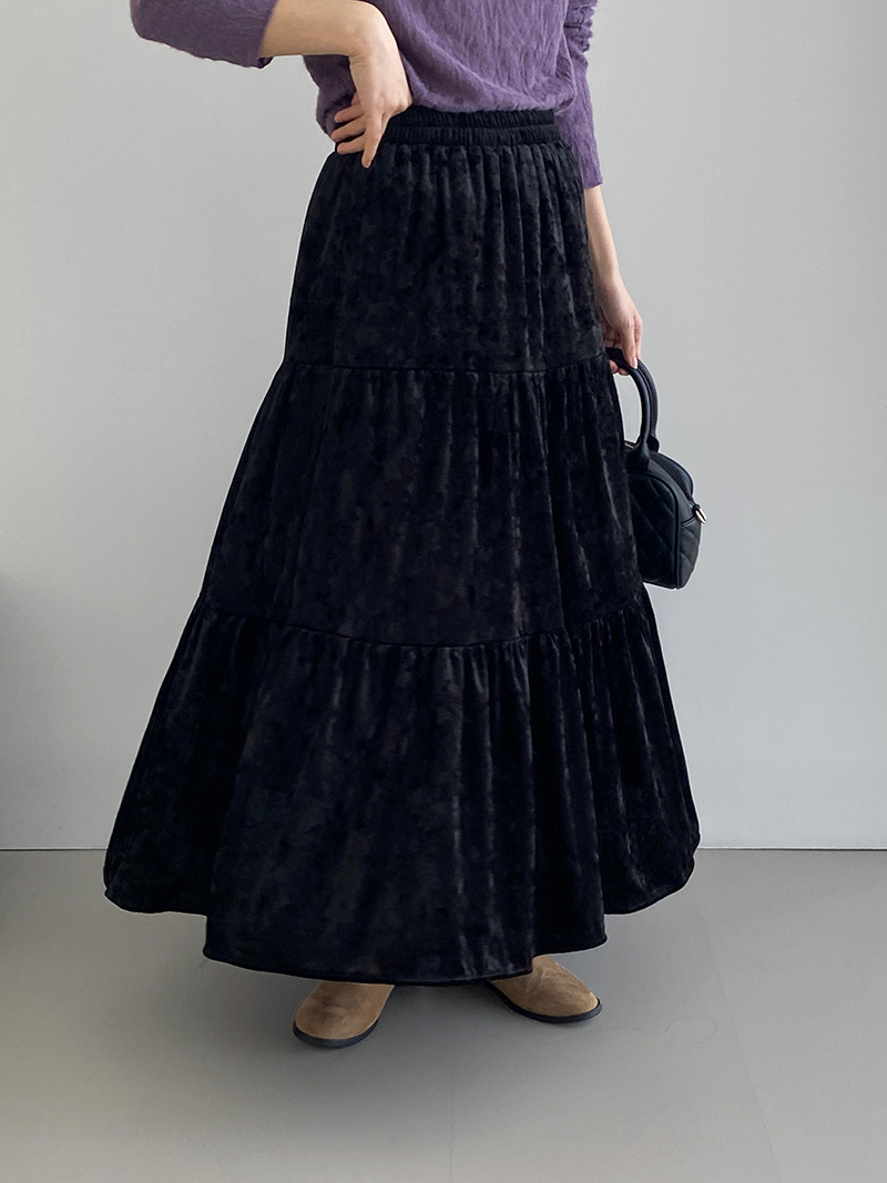 【ボトムス】春 秋 冬 ウエストゴム入り ベルベット素材 フレア スカート 【JZシリーズ】