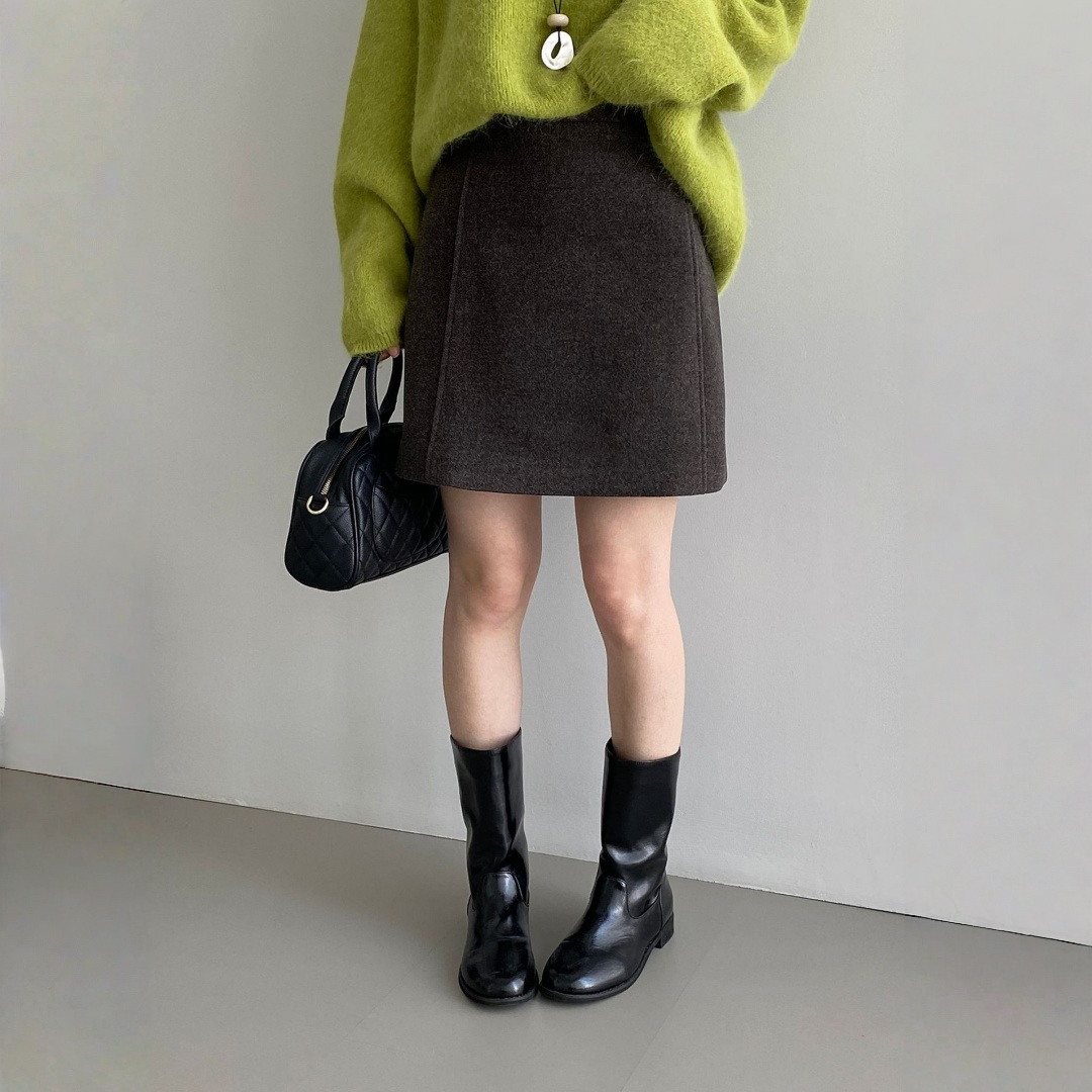 【ボトムス】春 秋 冬 ハイウエスト タイトフレア ウール混スカート 【JZシリーズ】