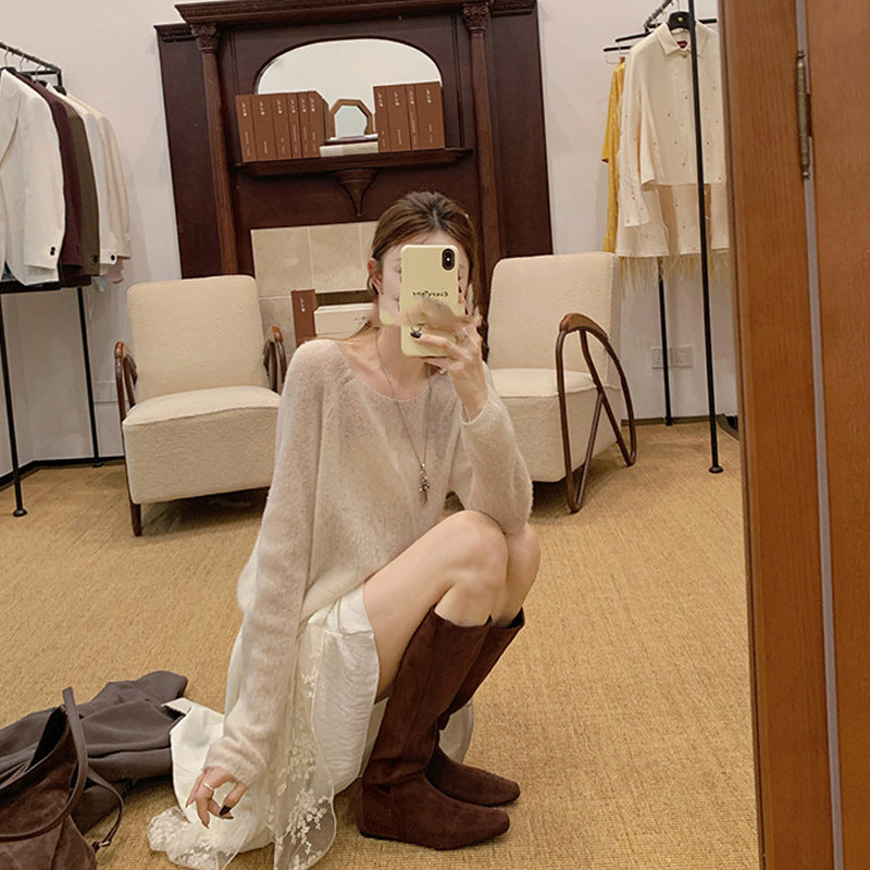 【トップス】秋冬新作✨ヴィンテージ ロゴ編みニット レディース ゆったりシルエット メラードカラーでこなれ感アップ【FCシリーズ】