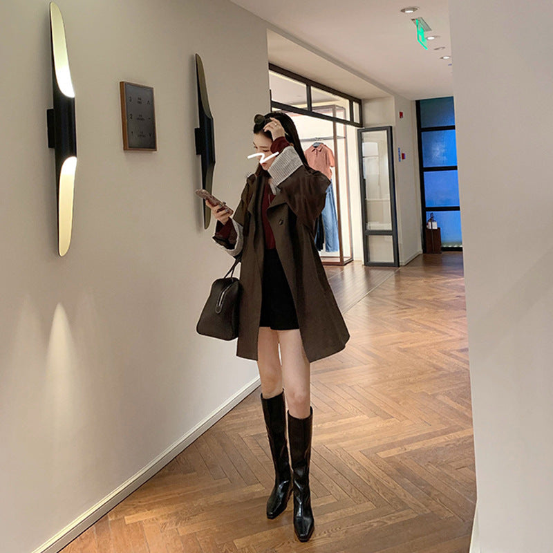 【アウター】気質と高級感 ミディアムロング 斜めボタン襟 ウールコート【JZシリーズ】