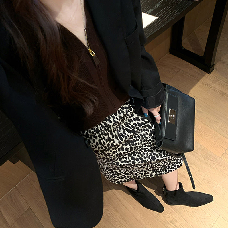 【トップス】レトロ 豹柄 猫 ゆったり ラウンドネック ニットセーター【FCシリーズ】