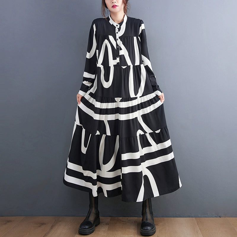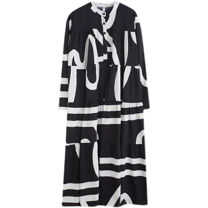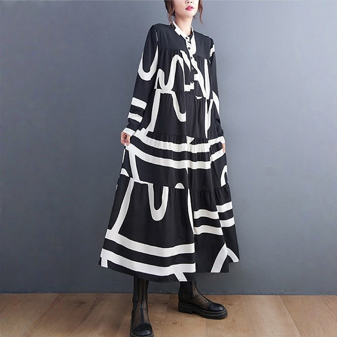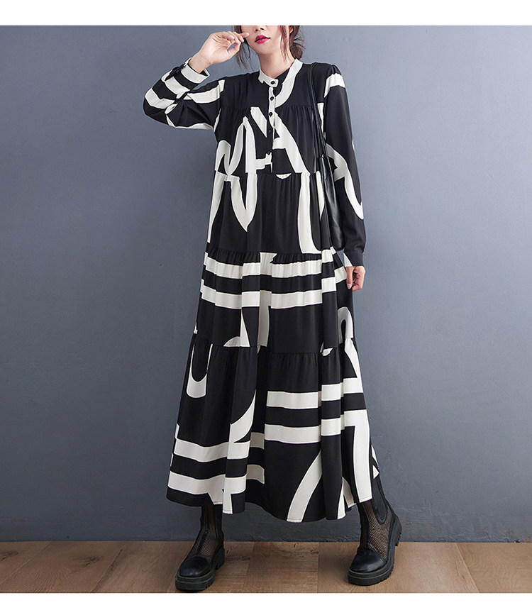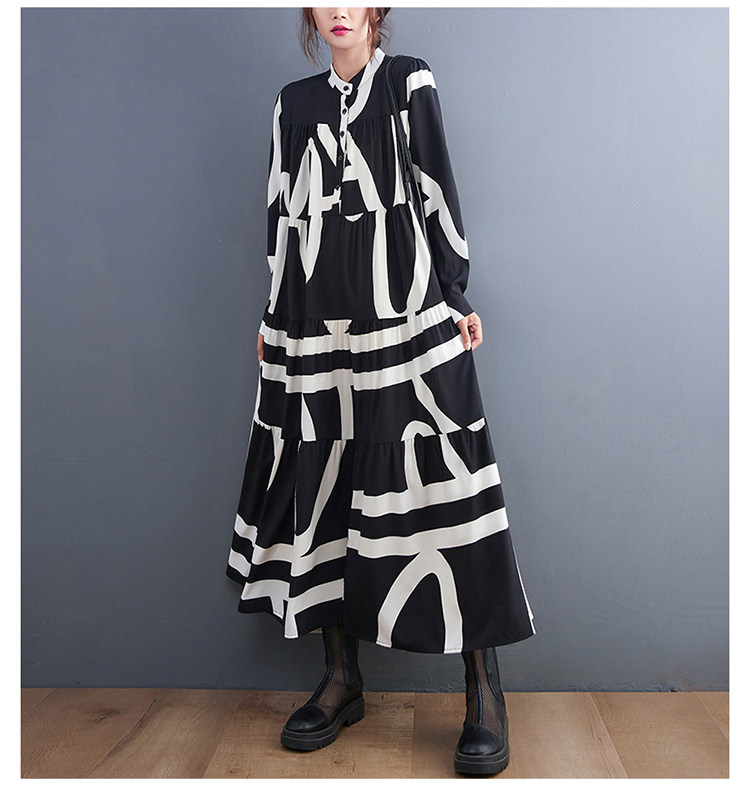 【商品名】【ワンピース】春 秋 冬プリント 体型カバ 長袖 ワンピース 【SHシリーズ】