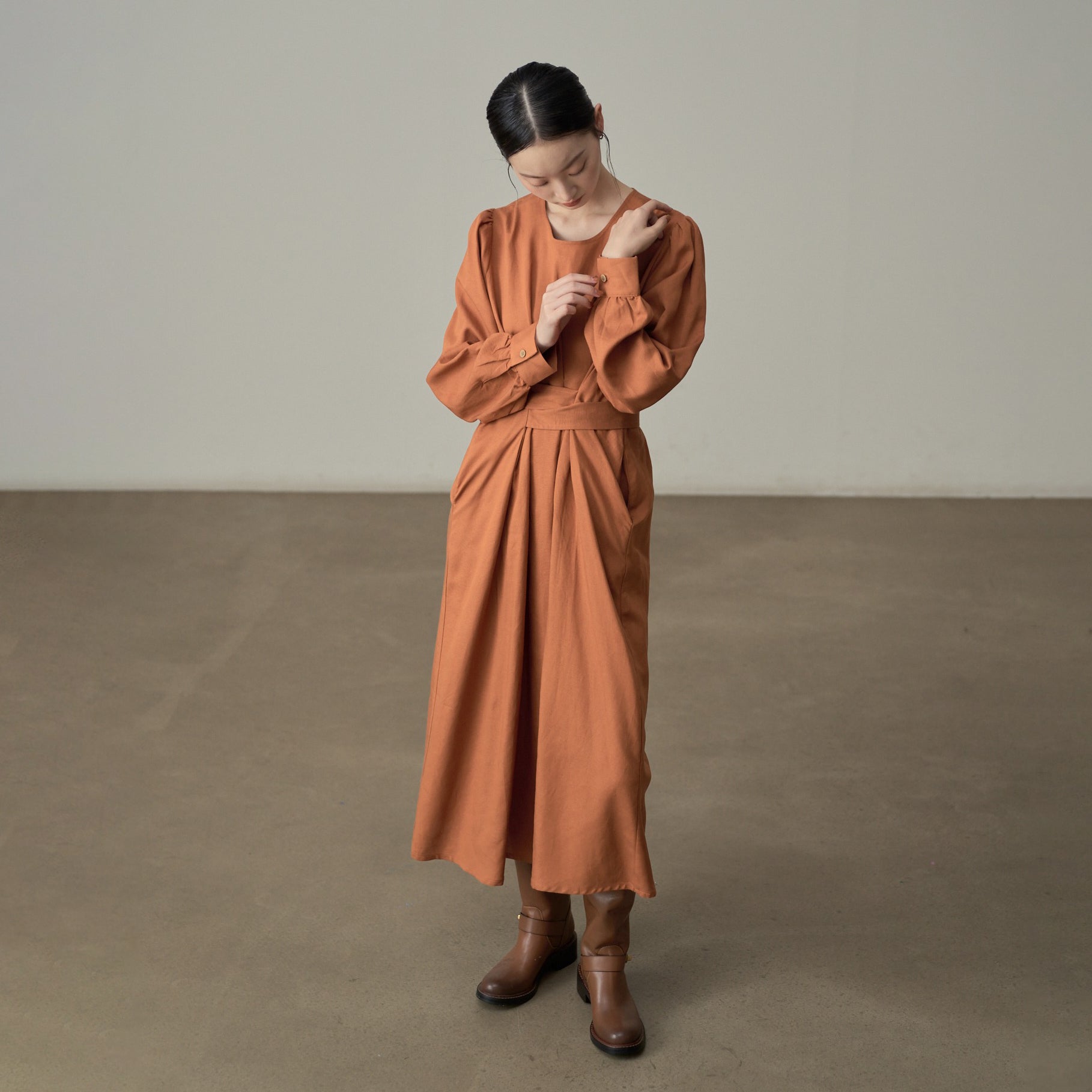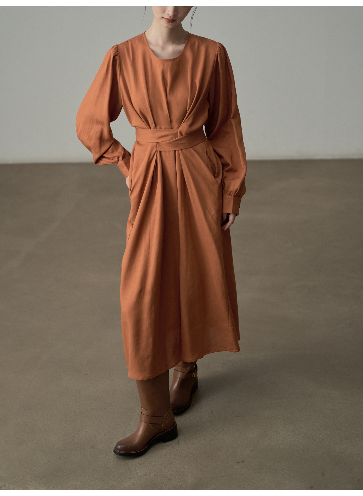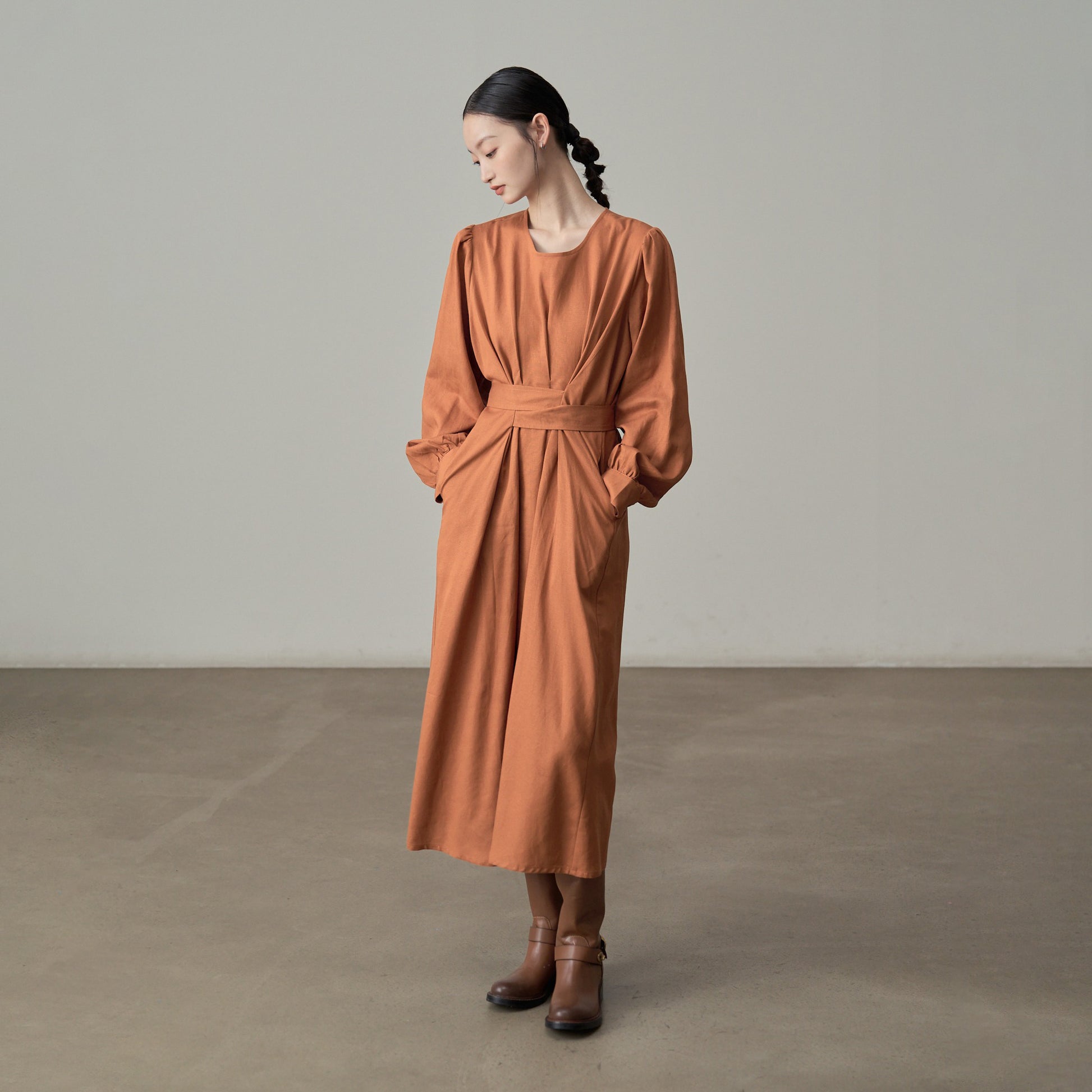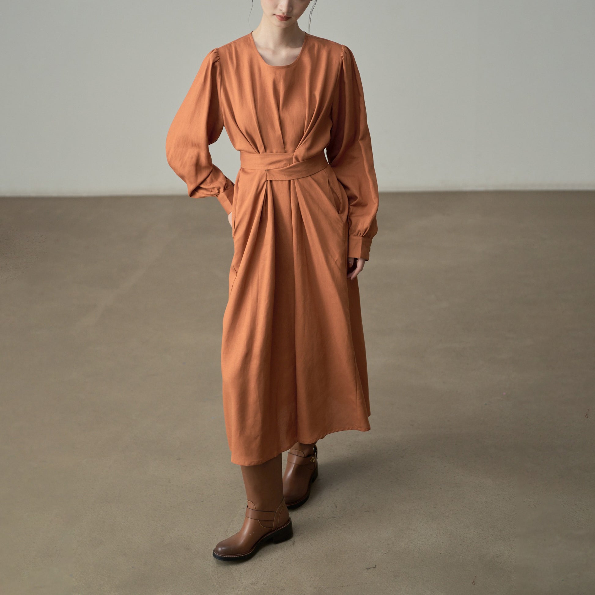 【ワンピース】ドローストリング付き ゆったりとした 春 秋 冬 切り替え 長袖 ワンピース 【AHシリーズ】