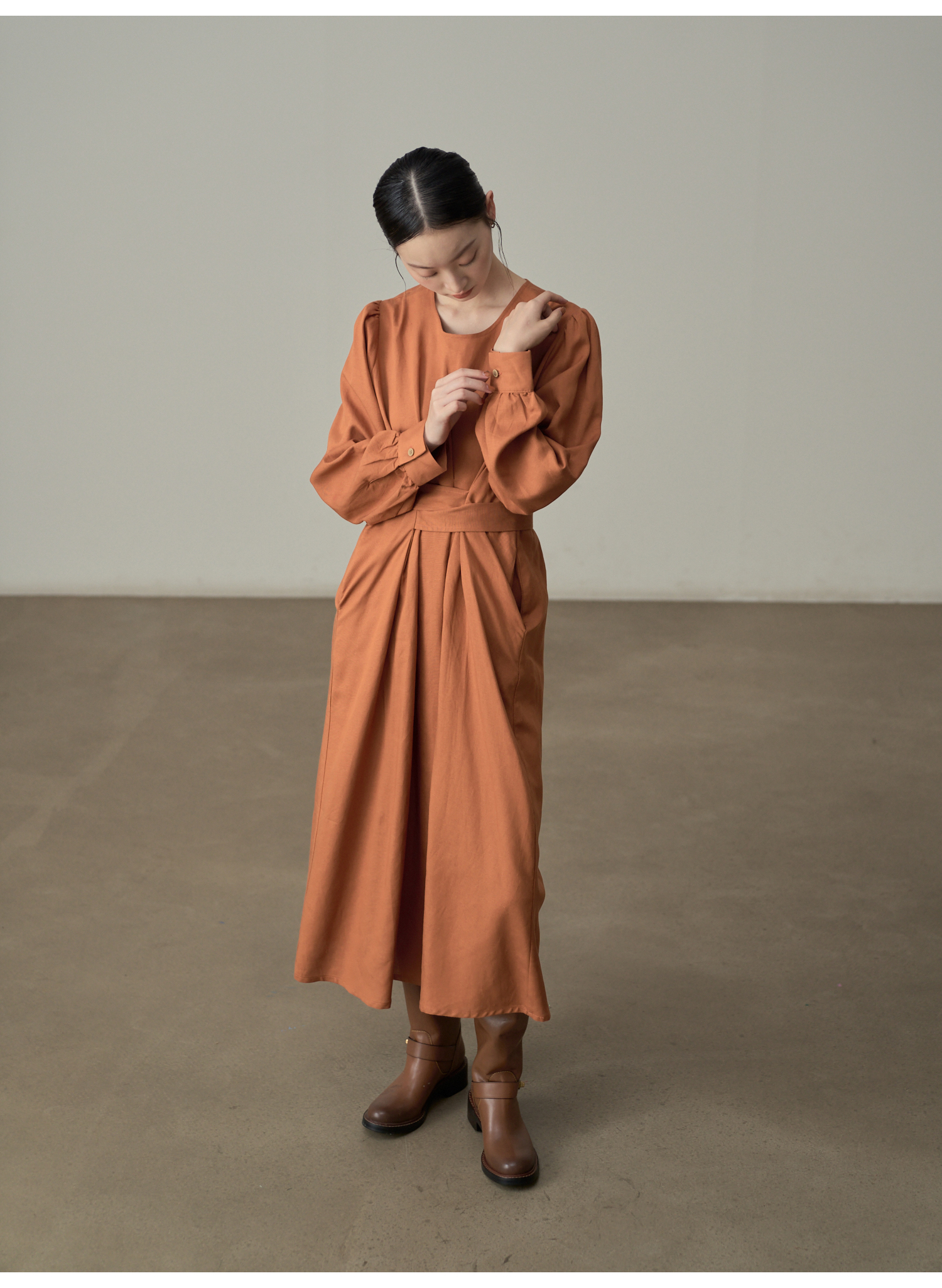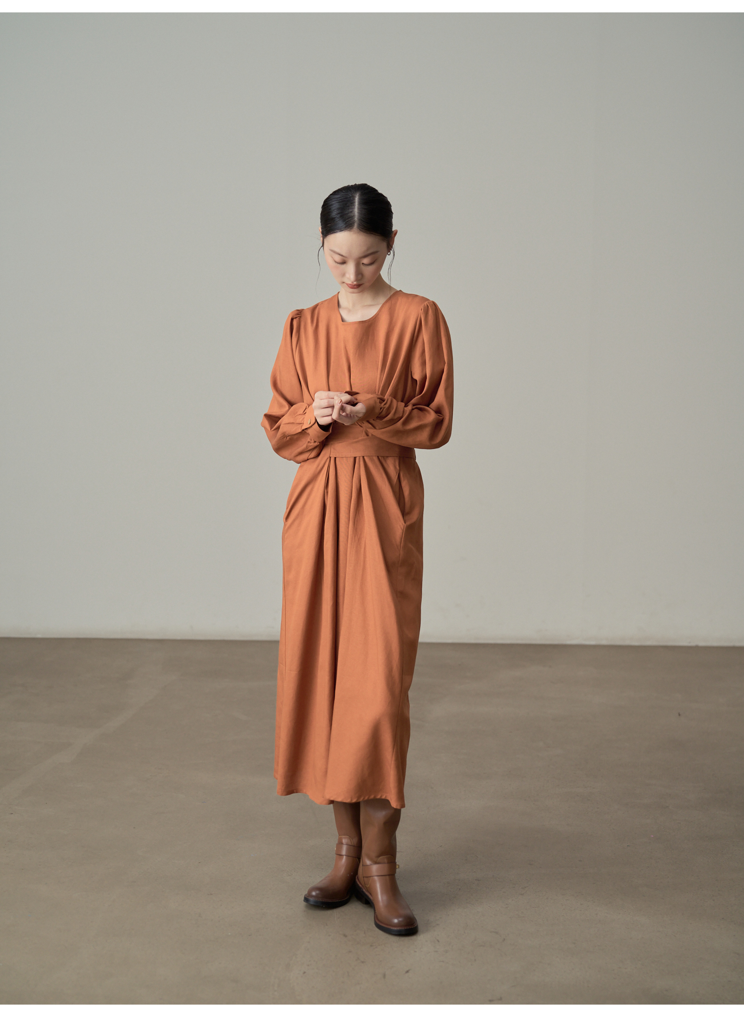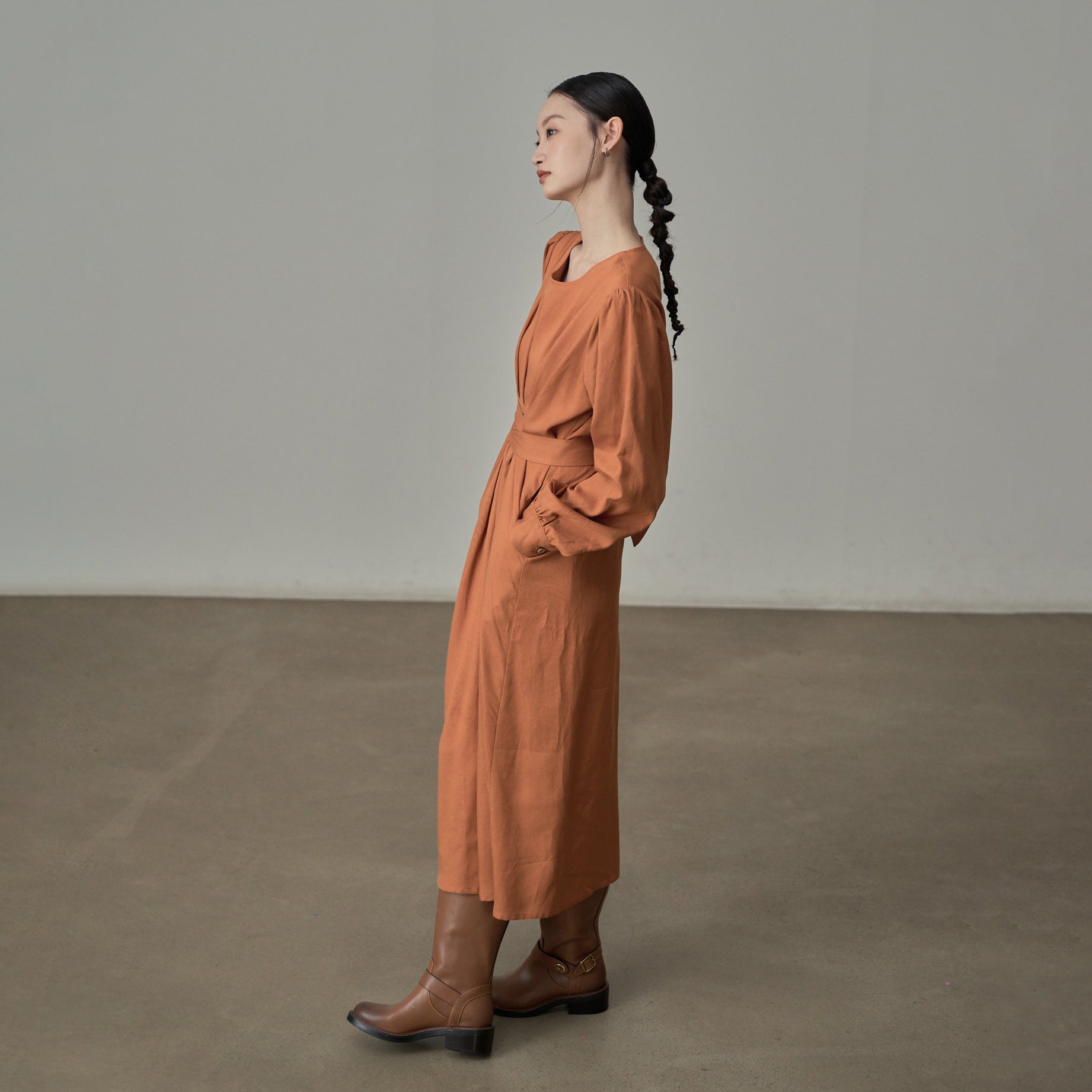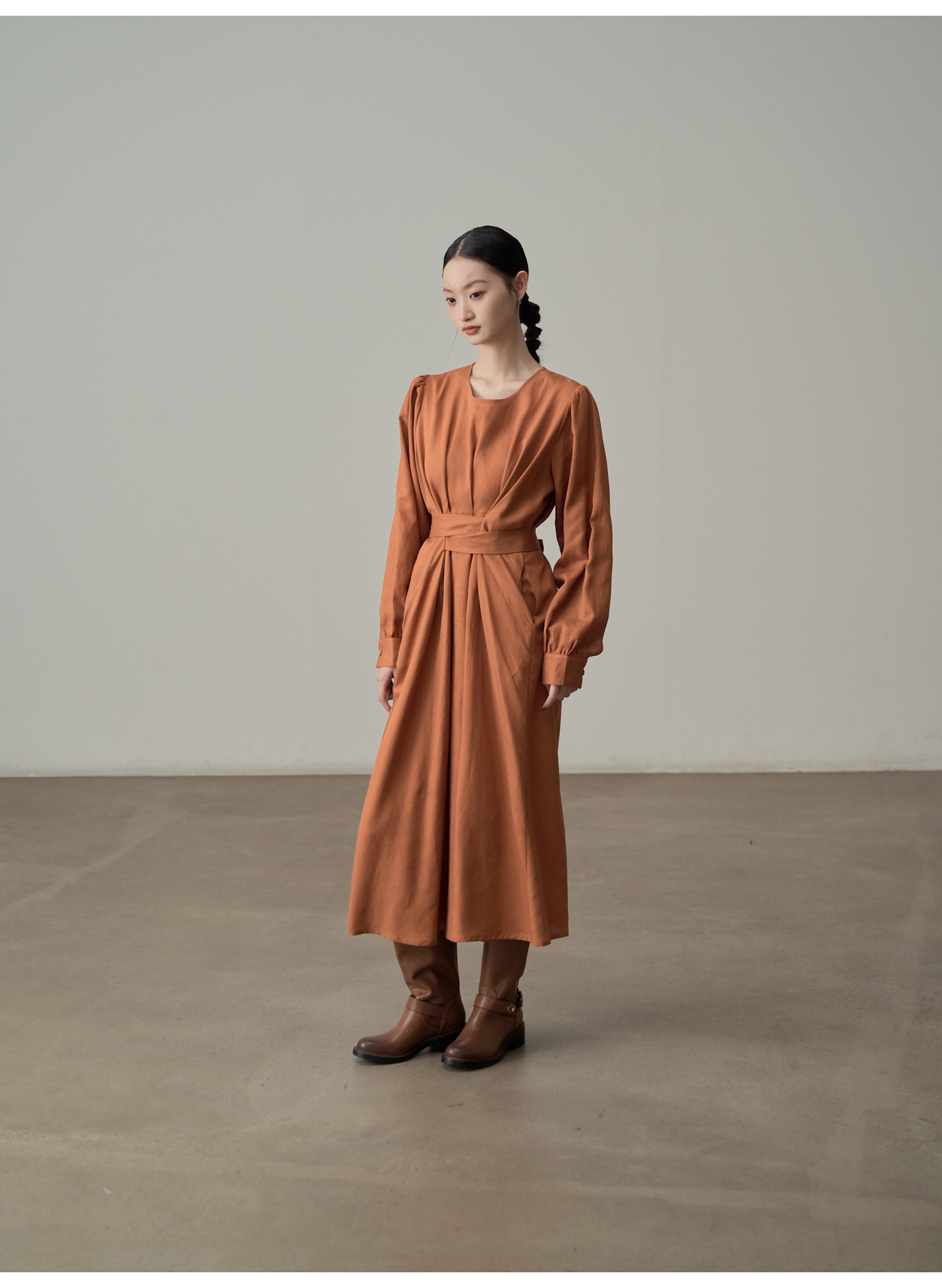 【ワンピース】ドローストリング付き ゆったりとした 春 秋 冬 切り替え 長袖 ワンピース 【AHシリーズ】