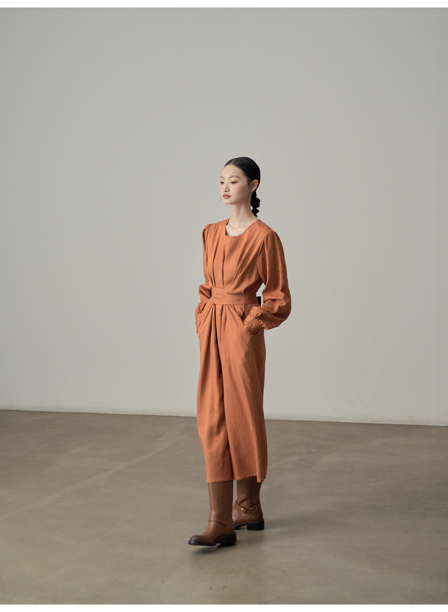 【ワンピース】フレンチレトロ 切替デザイン 大ポケット 長袖 ワンピース 秋新作 ゆったり 【JZシリーズ】
