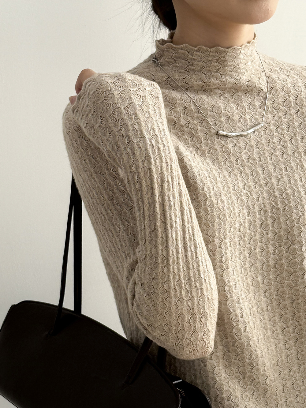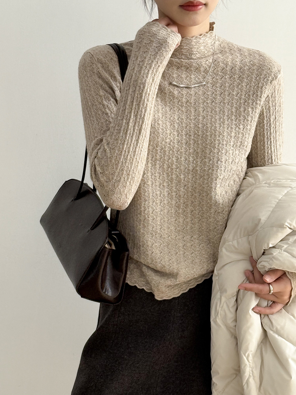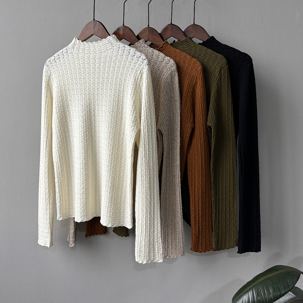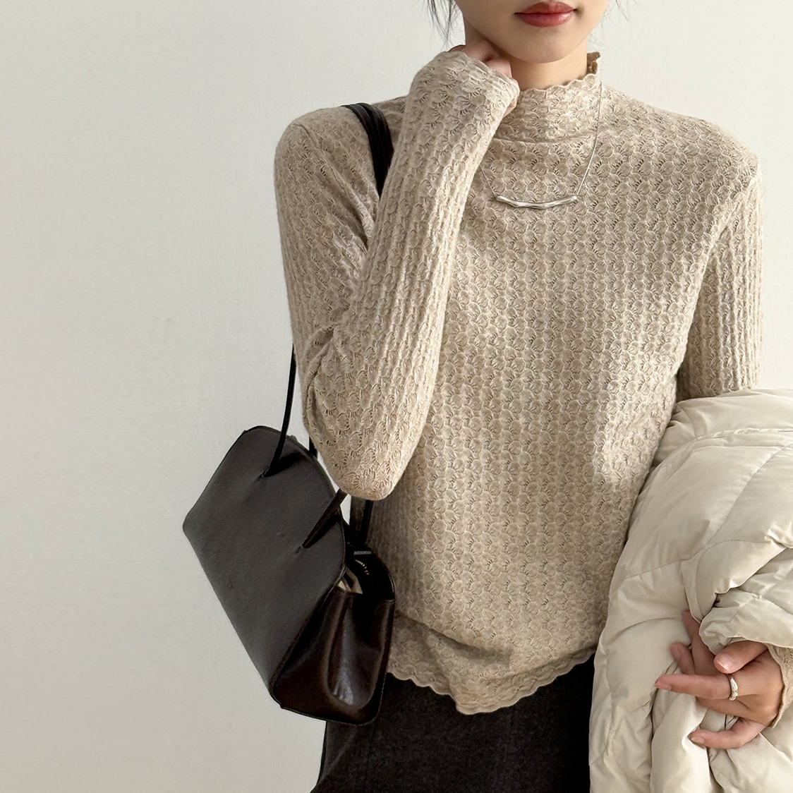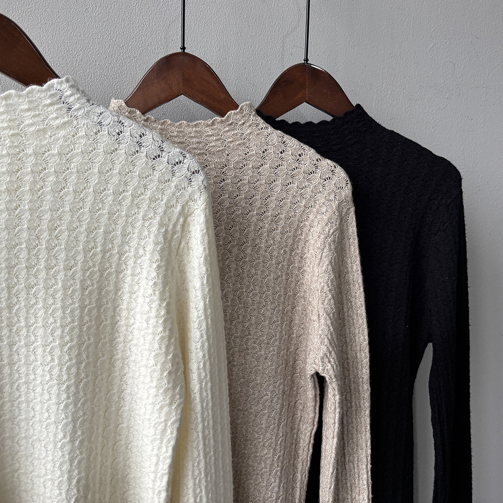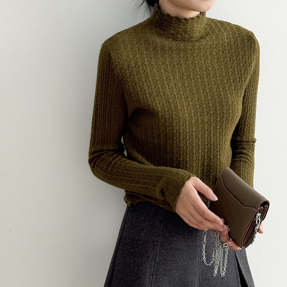 5カラー【トップス】シンプル無地 ハーフハイネック レースニット レディース 秋冬 ふんわり柔らか すっきりシルエット インナー【JZシリーズ】