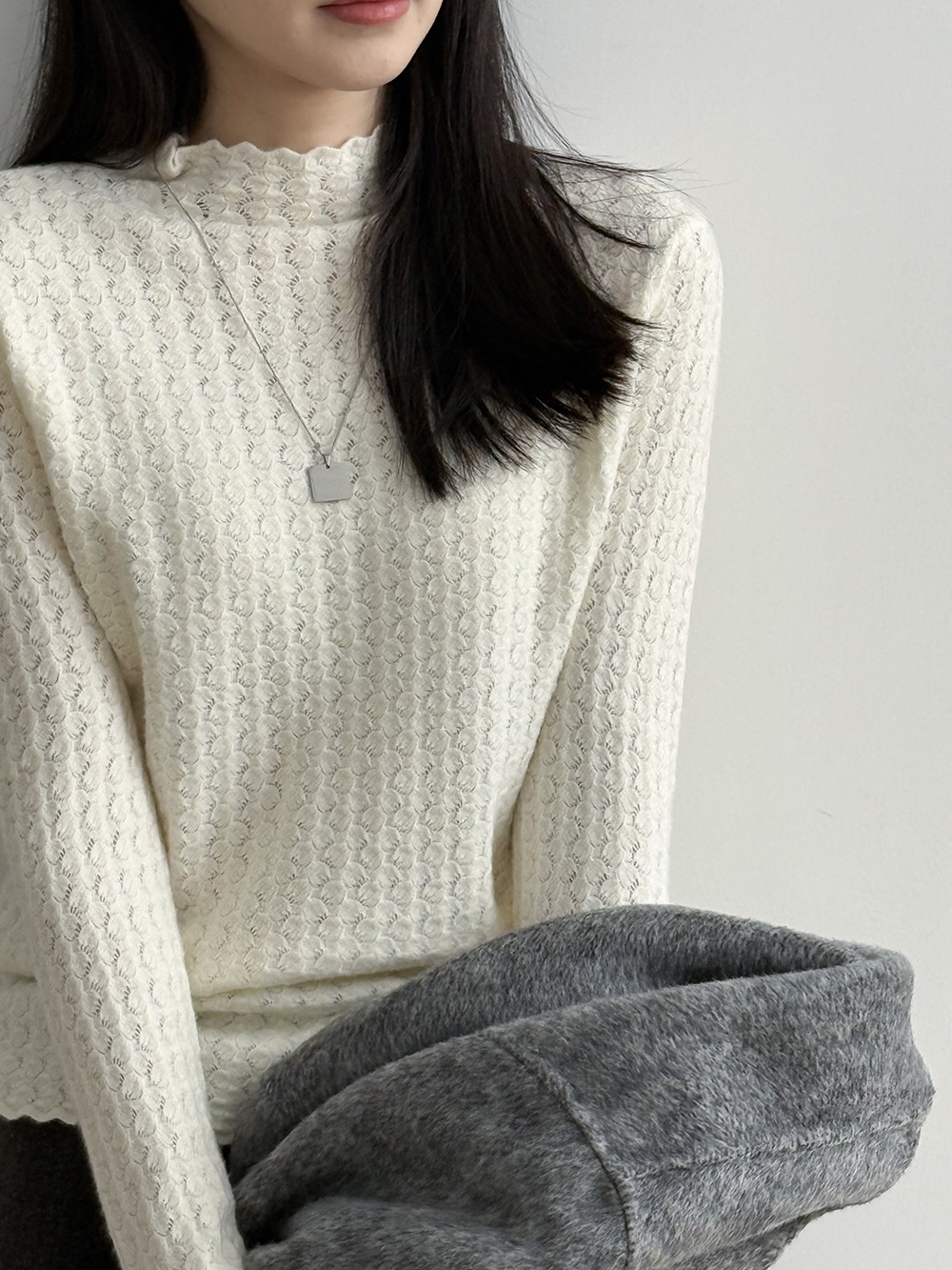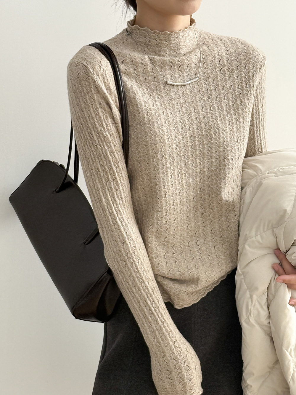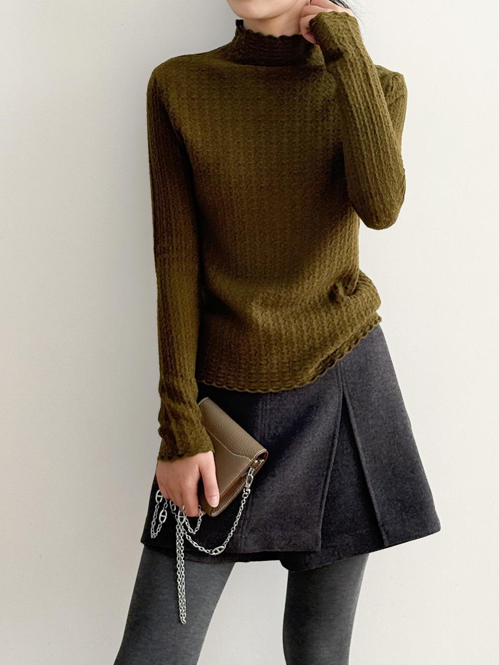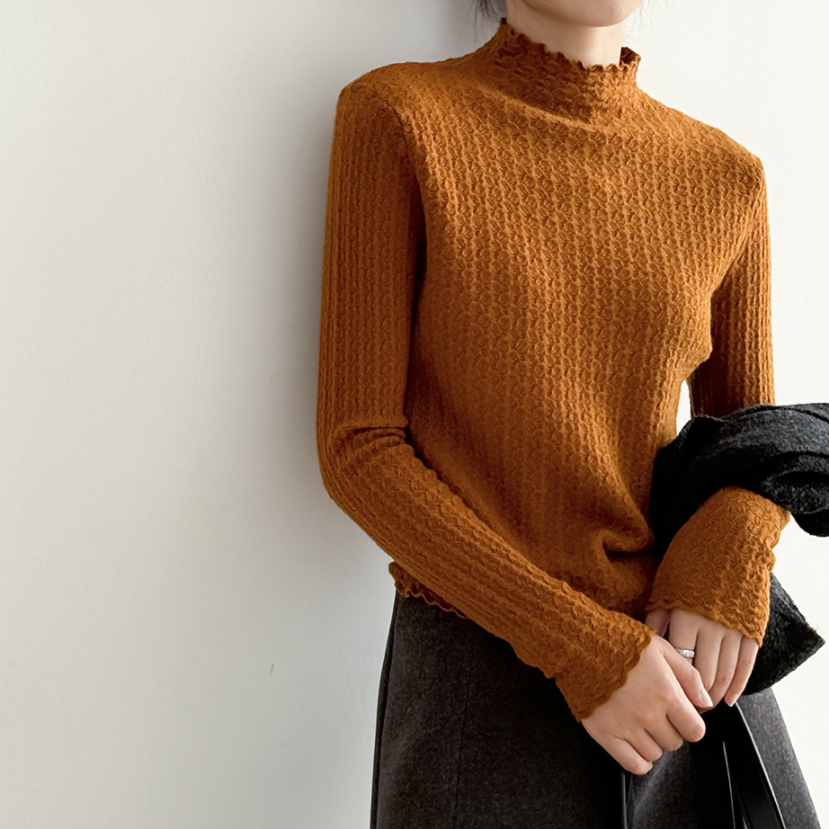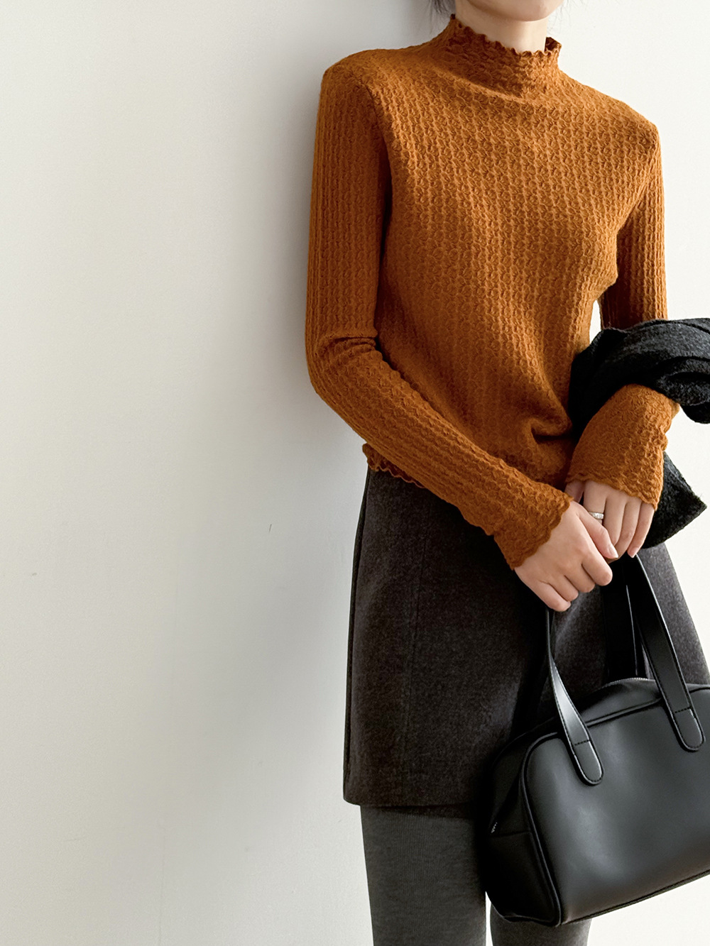 5カラー【トップス】シンプル無地 ハーフハイネック レースニット レディース 秋冬 ふんわり柔らか すっきりシルエット インナー【JZシリーズ】