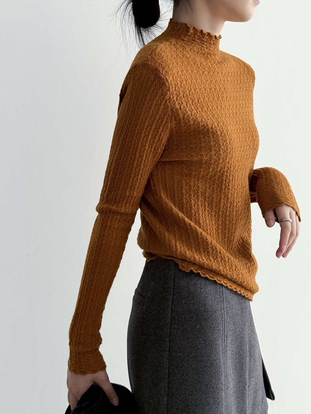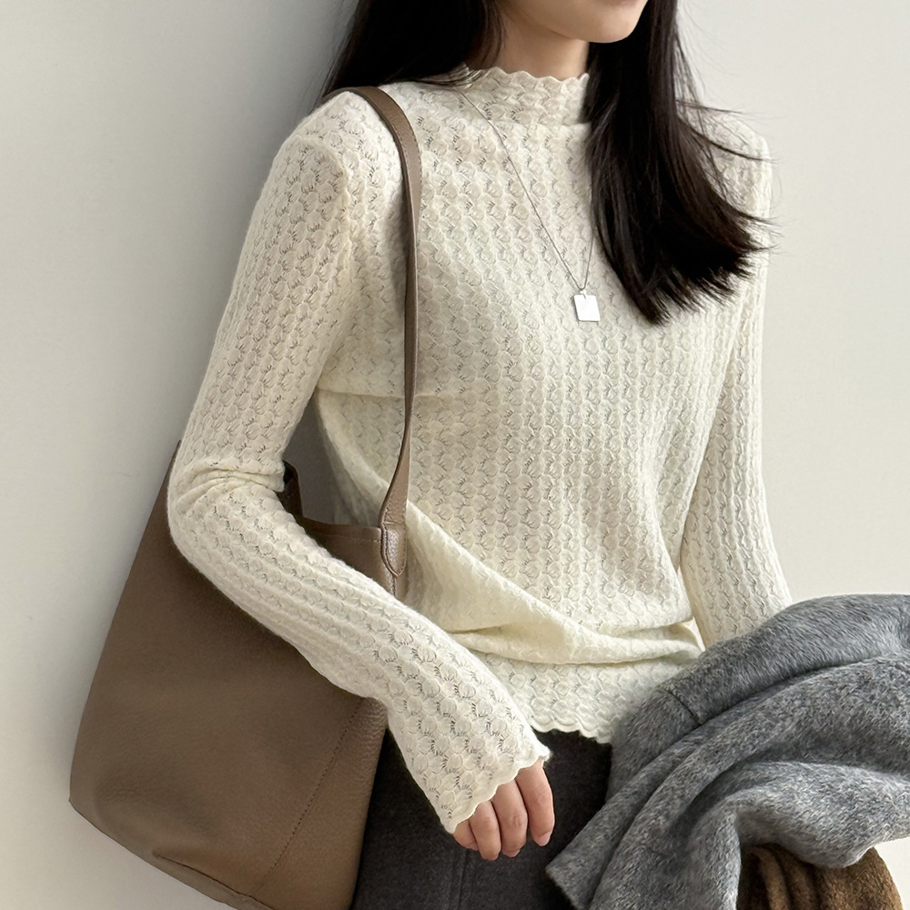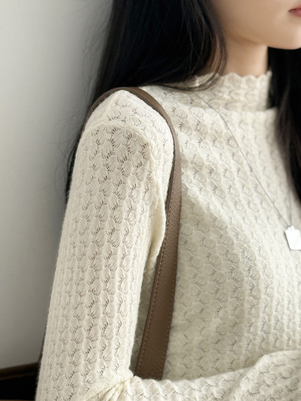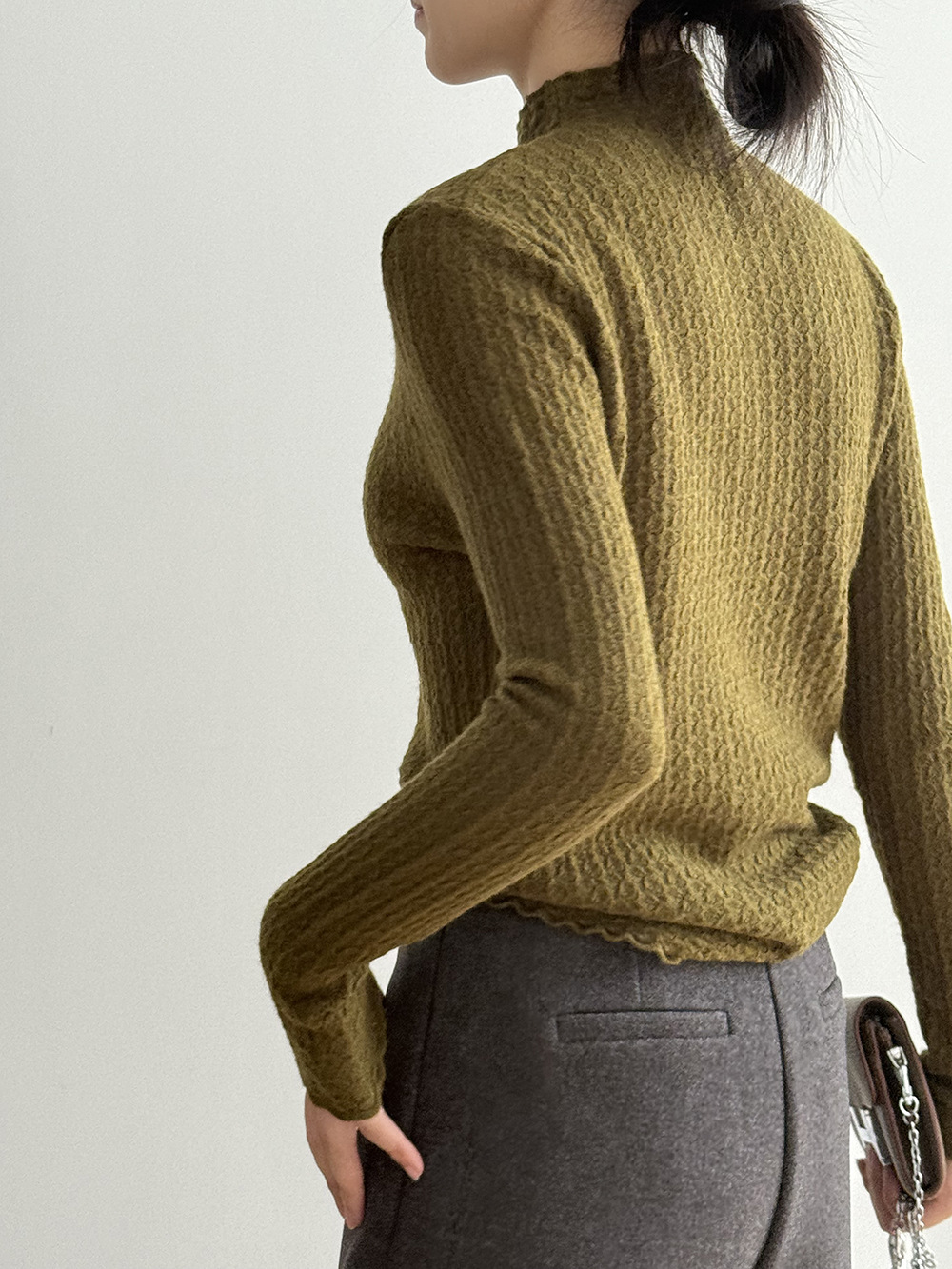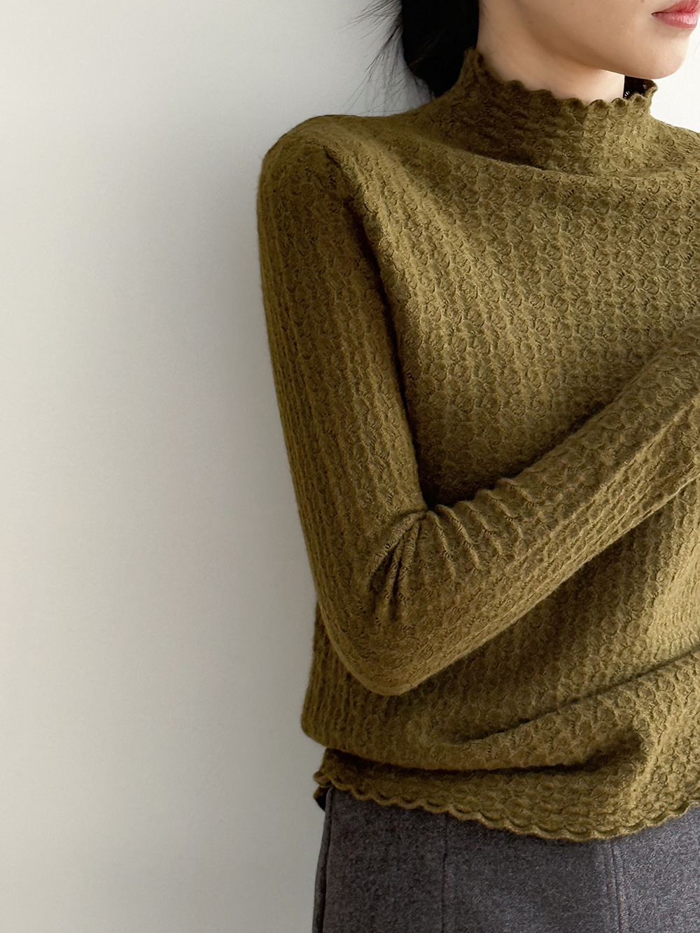 5カラー【トップス】シンプル無地 ハーフハイネック レースニット レディース 秋冬 ふんわり柔らか すっきりシルエット インナー【JZシリーズ】