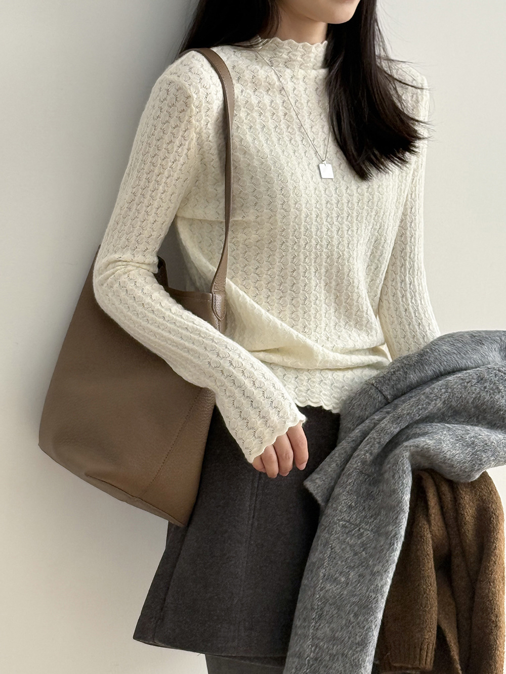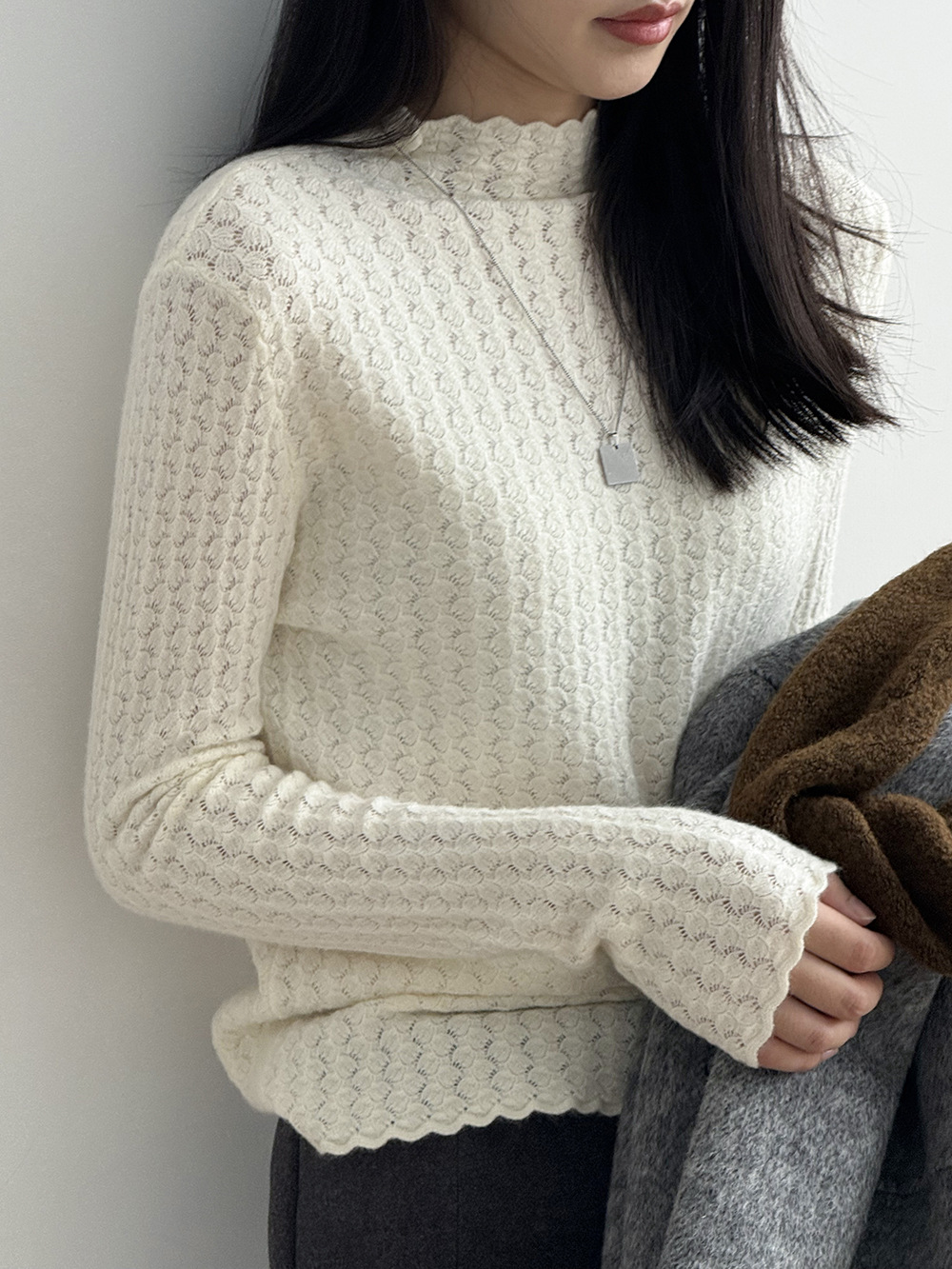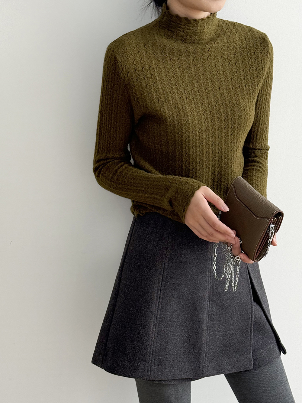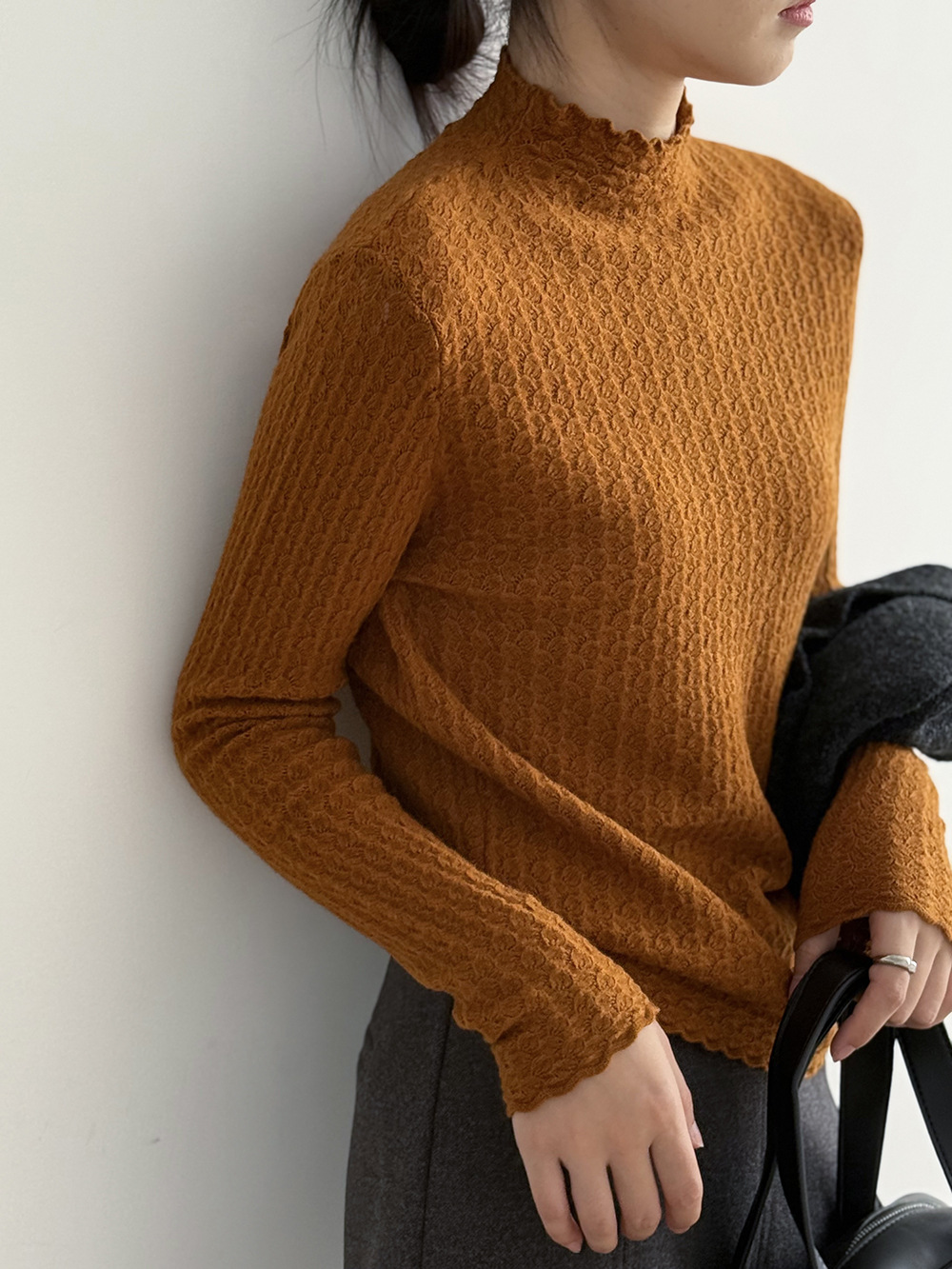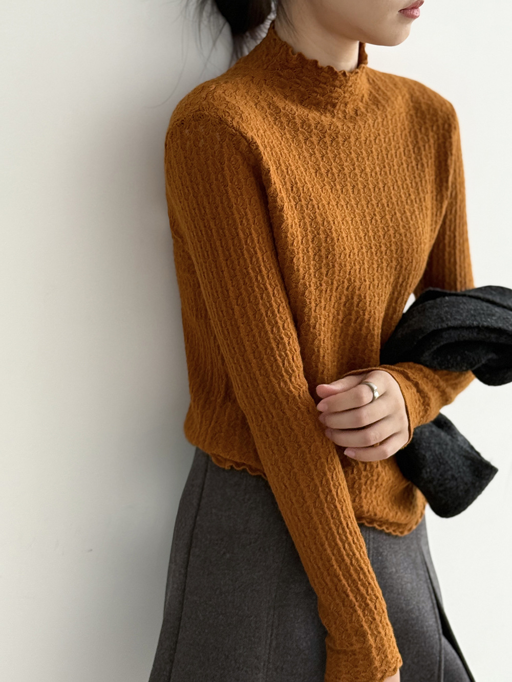 5カラー【トップス】シンプル無地 ハーフハイネック レースニット レディース 秋冬 ふんわり柔らか すっきりシルエット インナー【JZシリーズ】