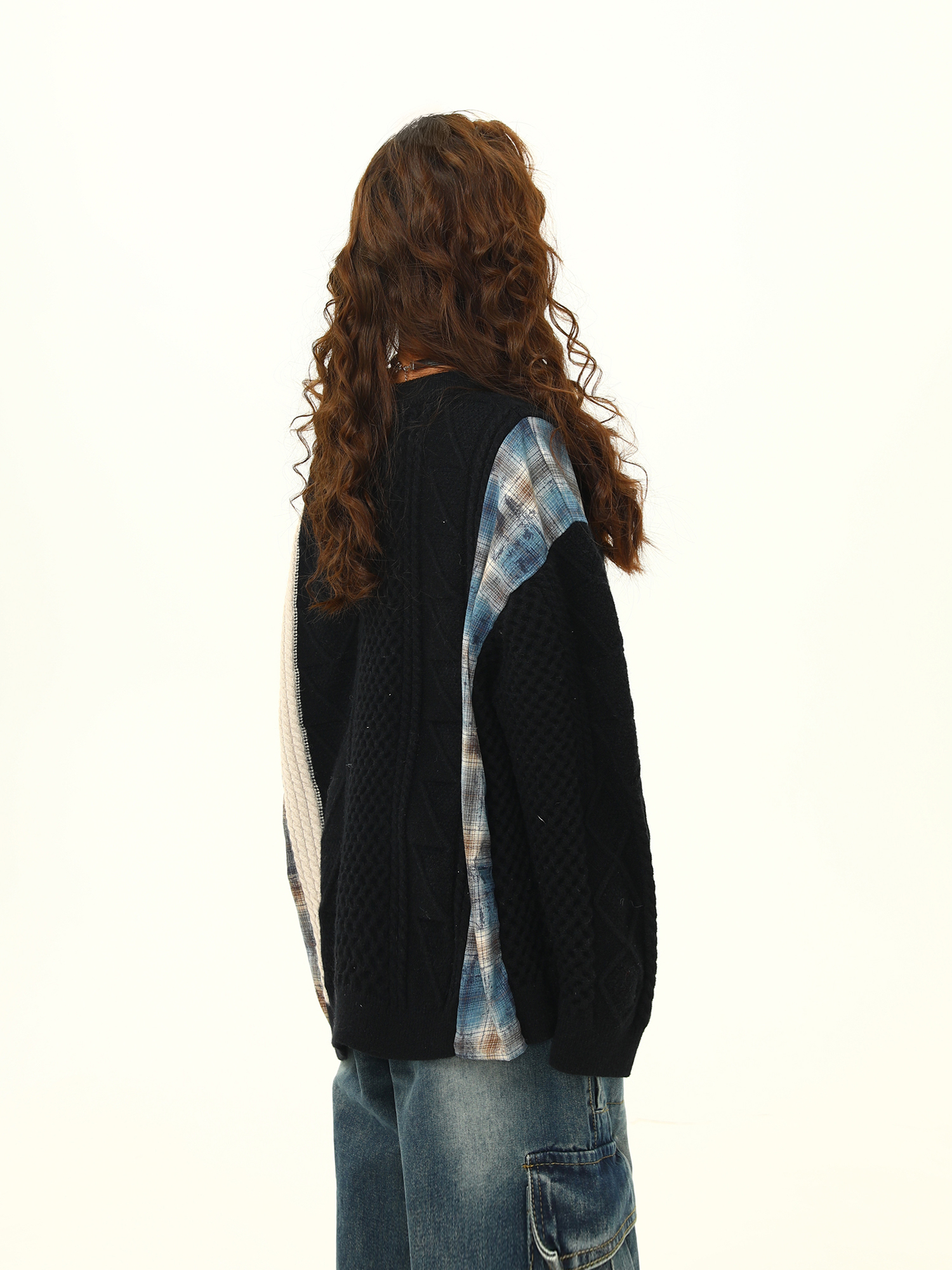 【商品名】【トップス】ストリート感漂う配色ニット✨秋冬新作 ゆったりシルエットでこなれ感アップ ケーブル編み おしゃれ セーター【FCシリーズ】