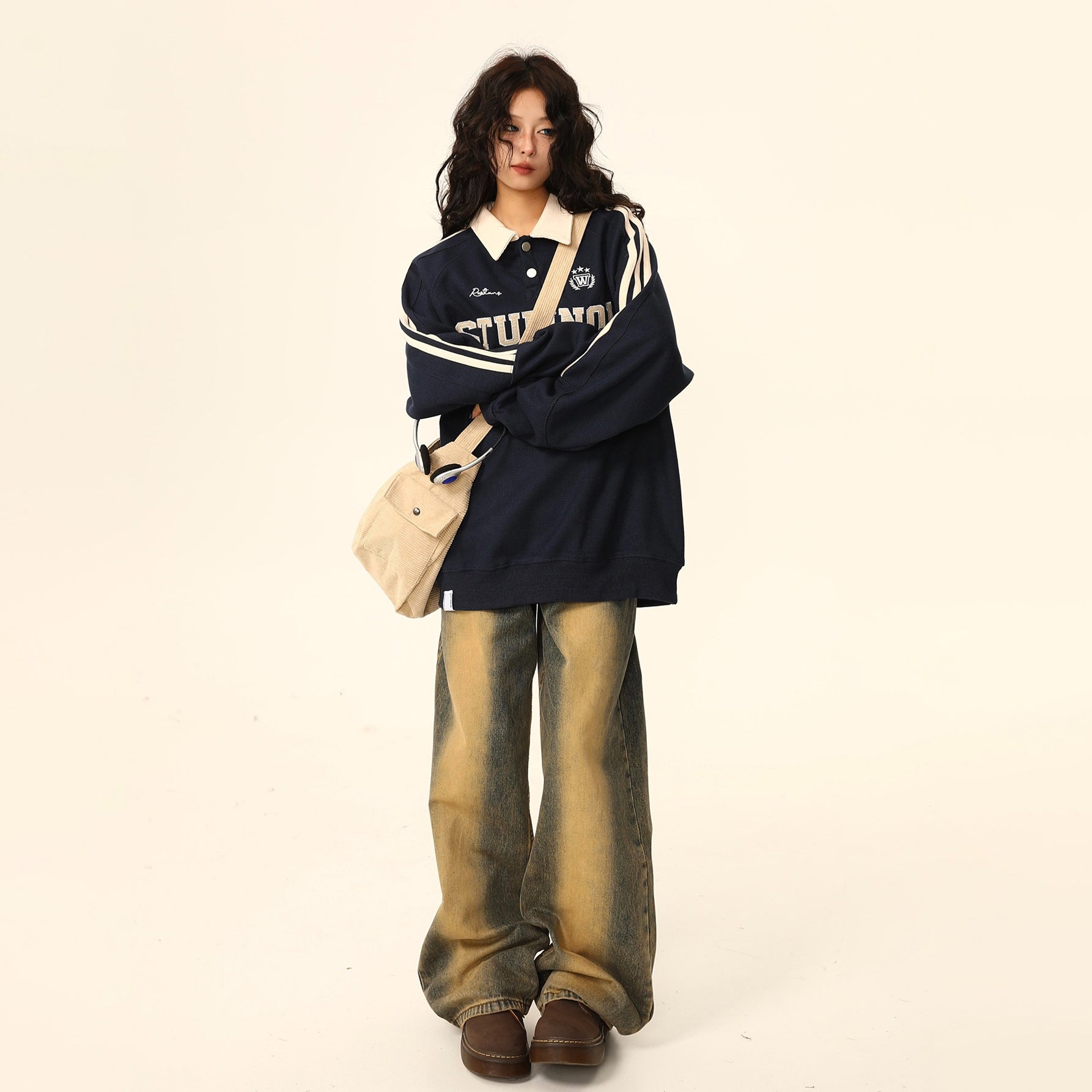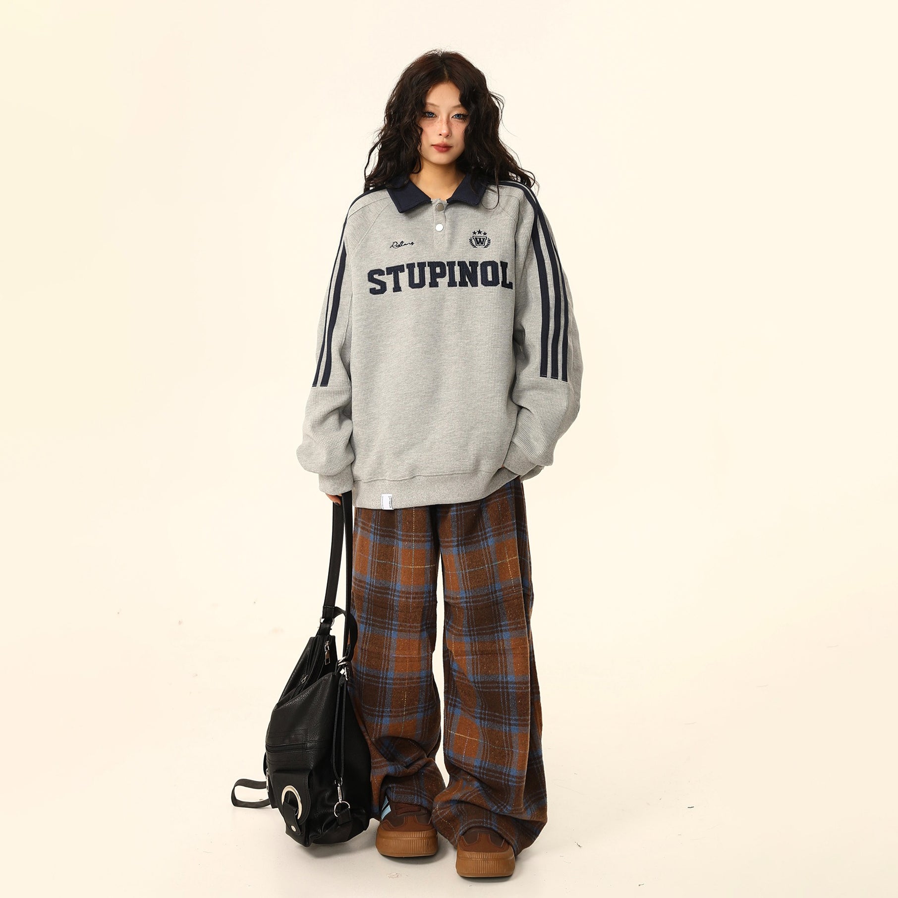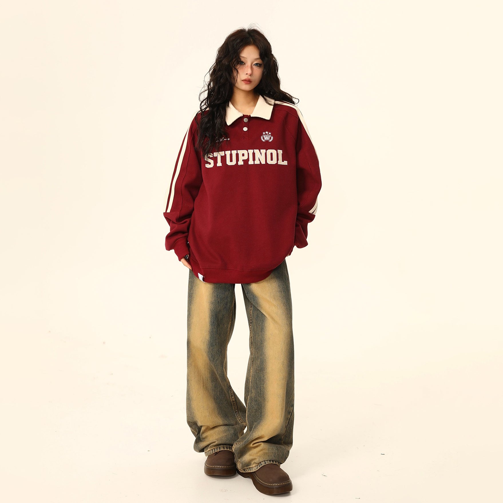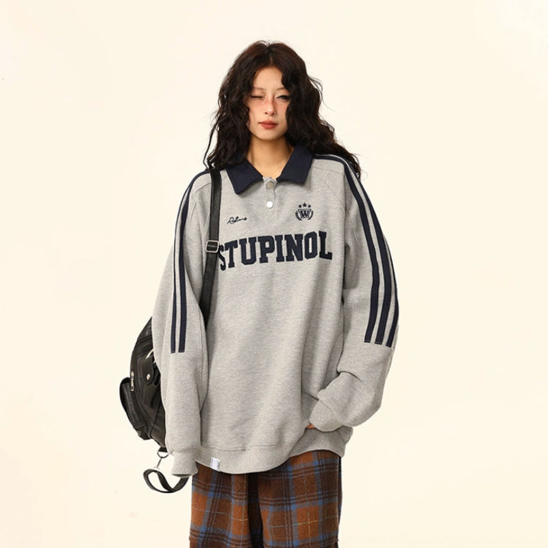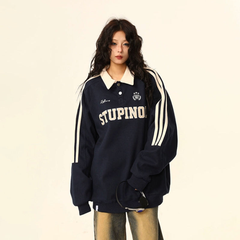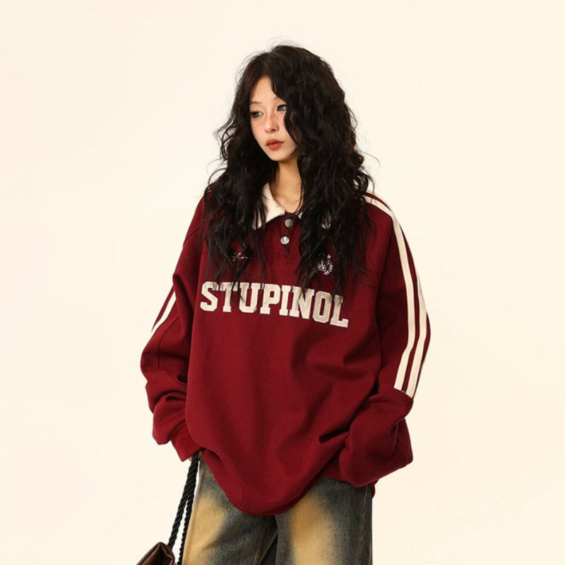 【トップス】ヴィンテージ ポロカラー スウェット レディース ゆったり カジュアル ユニセックスペアコーデ パーカー【FCシリーズ】