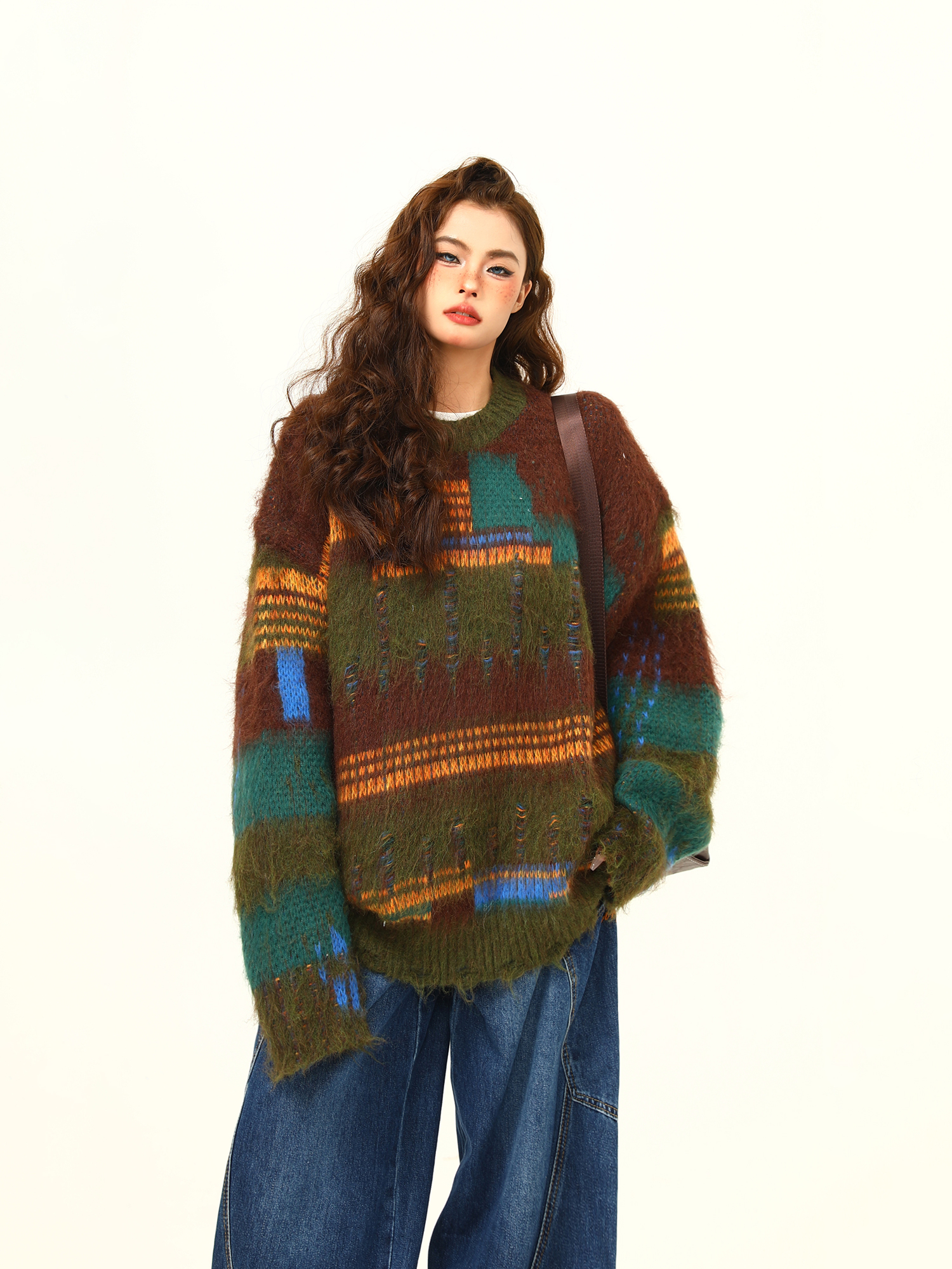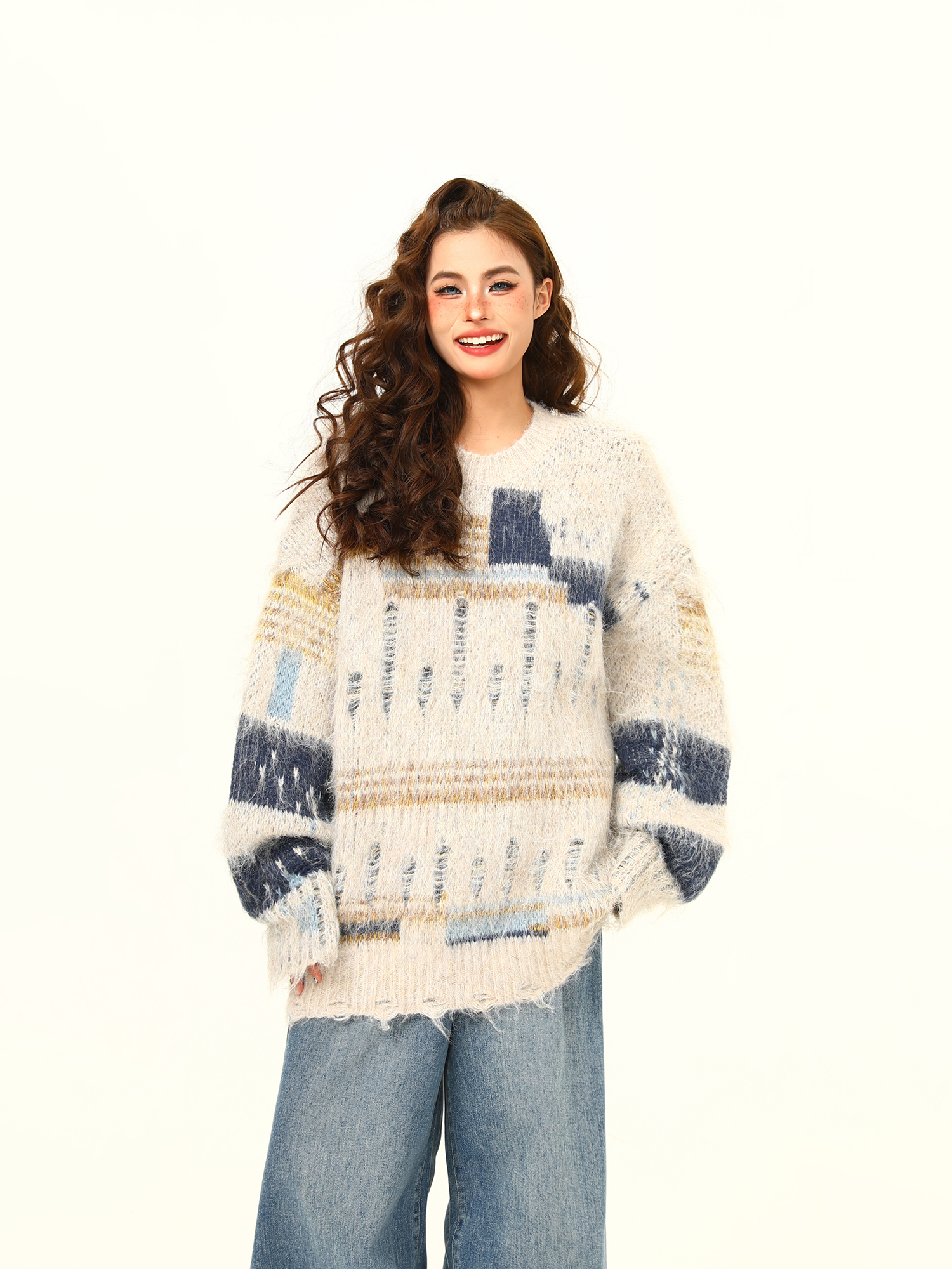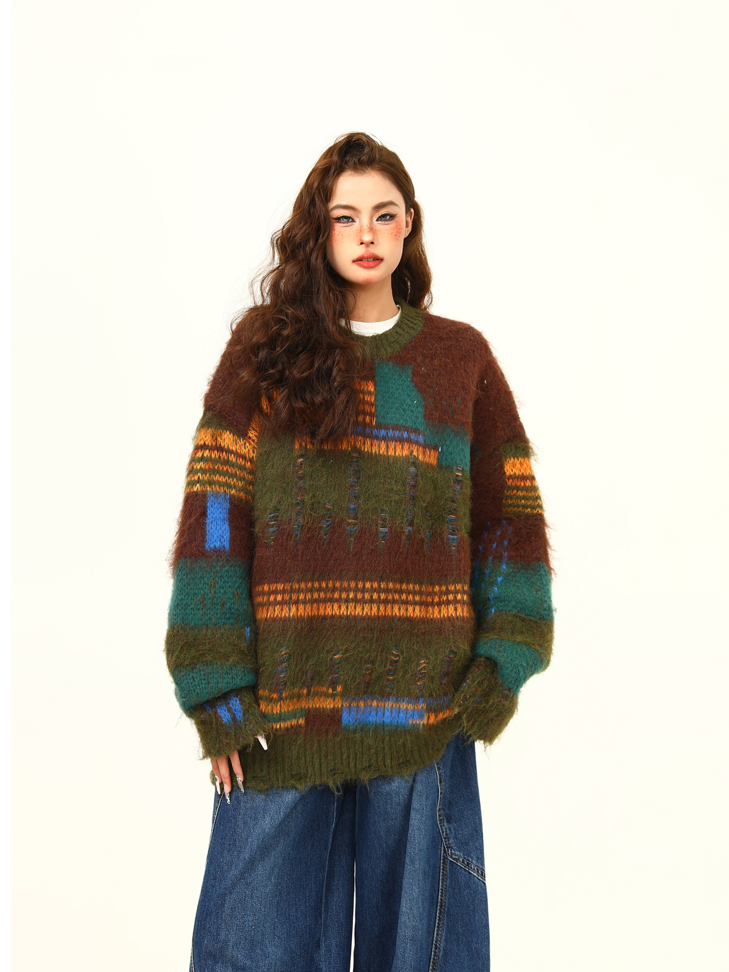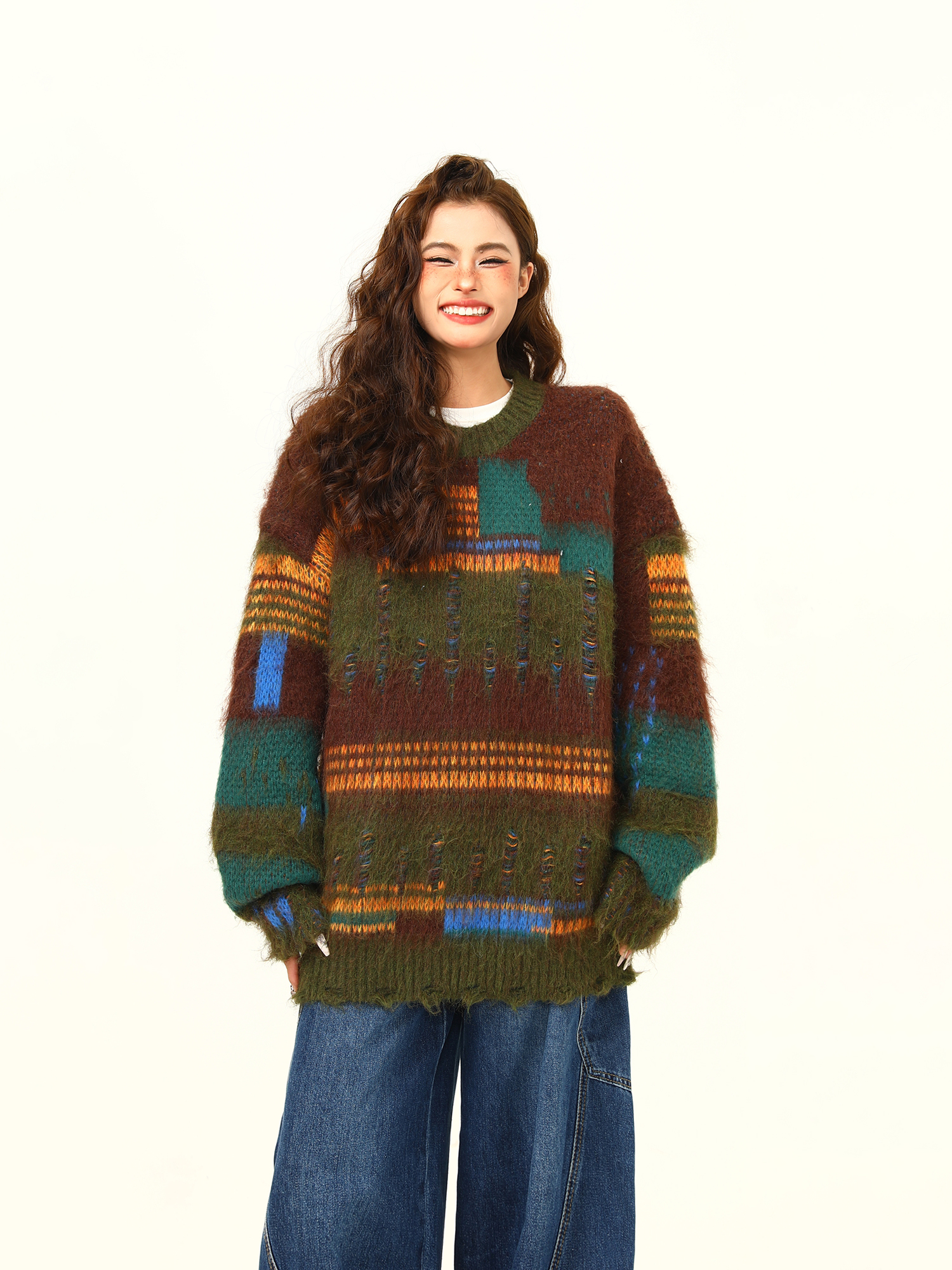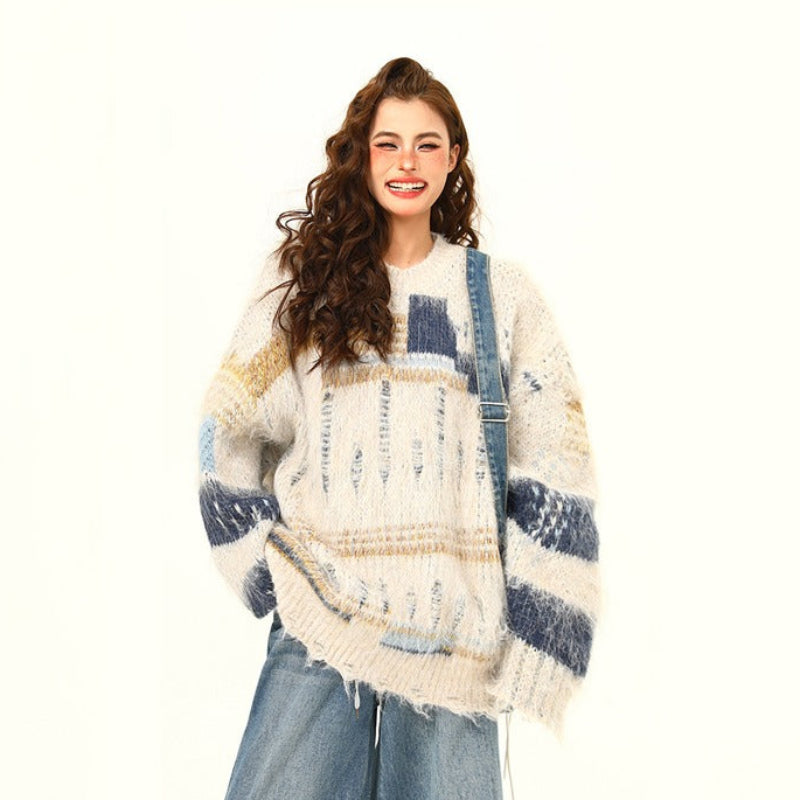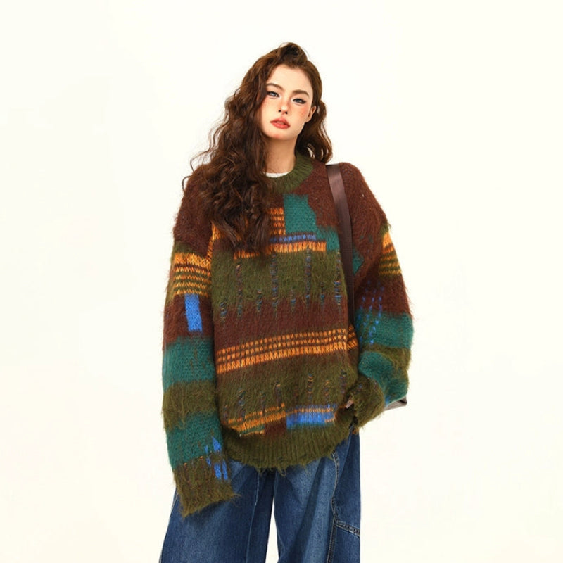 【商品名】【トップス】🎄クリスマス モヘア風ボーダーニット レディース ゆったり抜け感 ペアセーター【FCシリーズ】