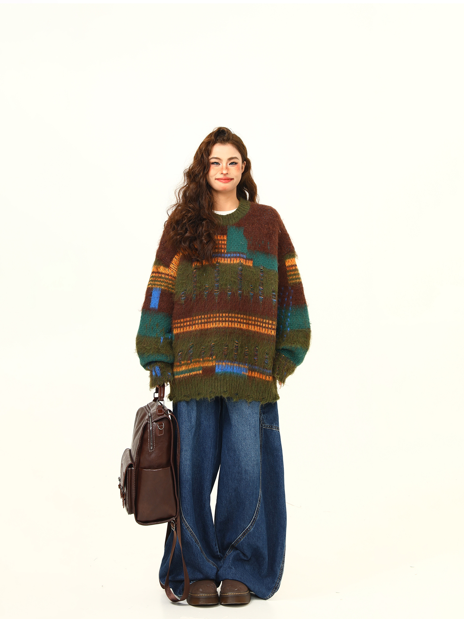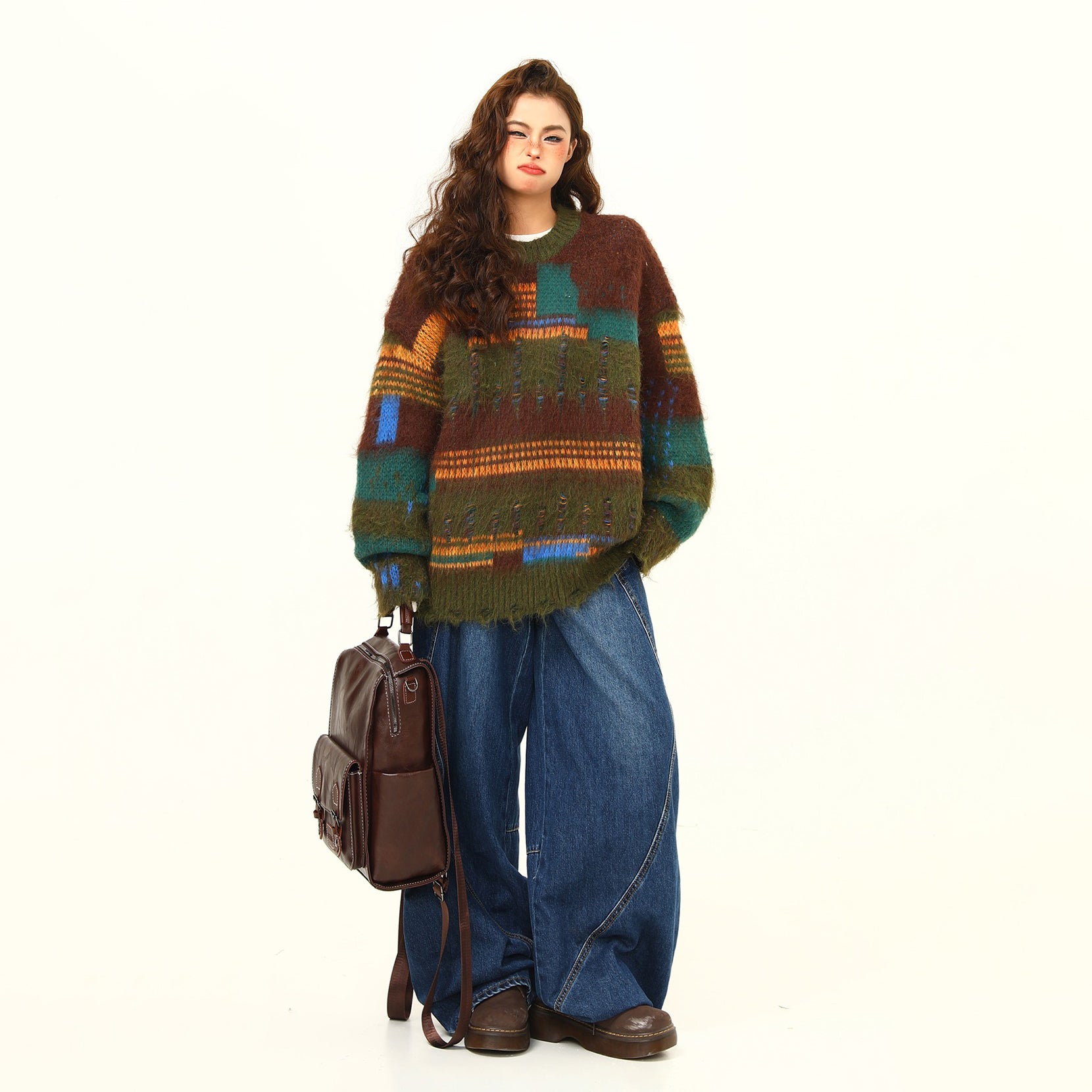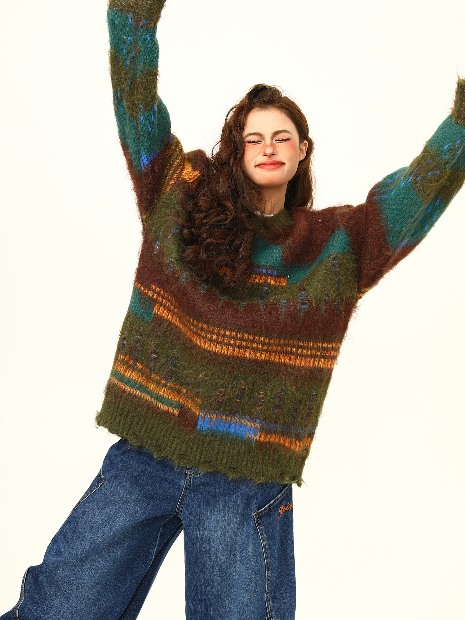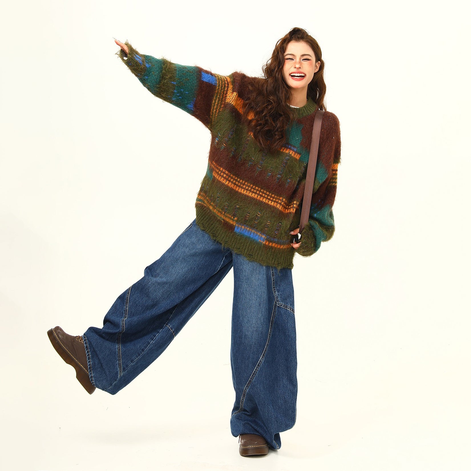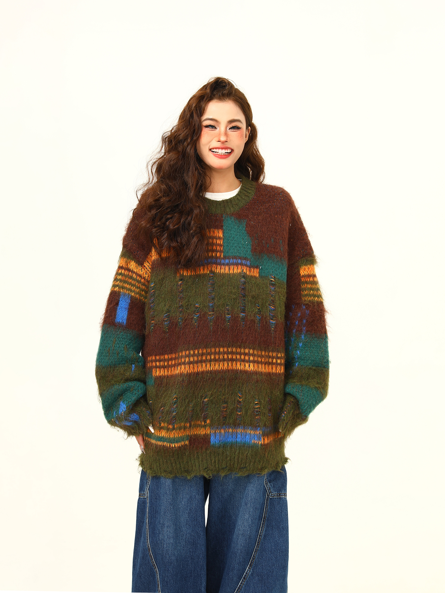 【商品名】【トップス】🎄クリスマス モヘア風ボーダーニット レディース ゆったり抜け感 ペアセーター【FCシリーズ】