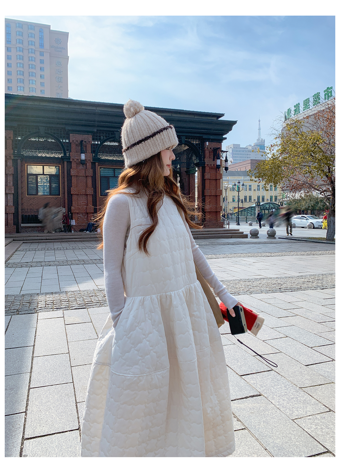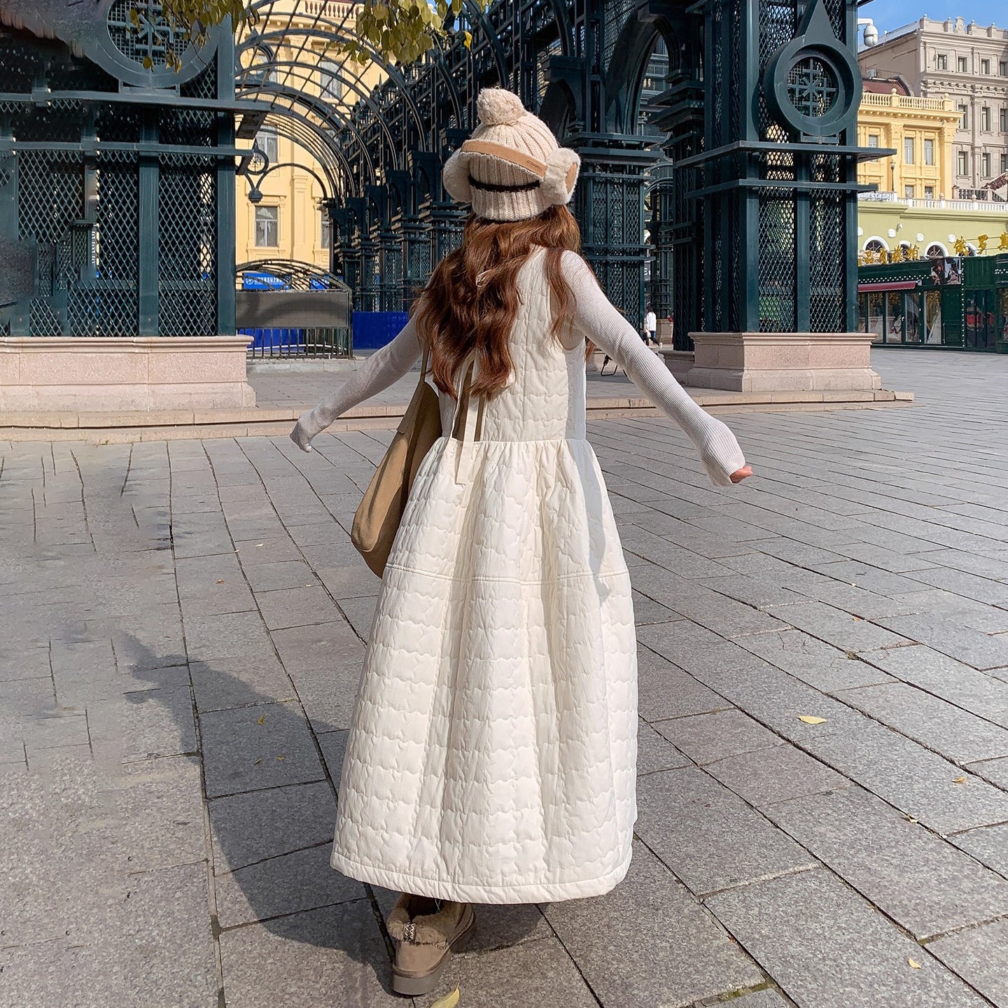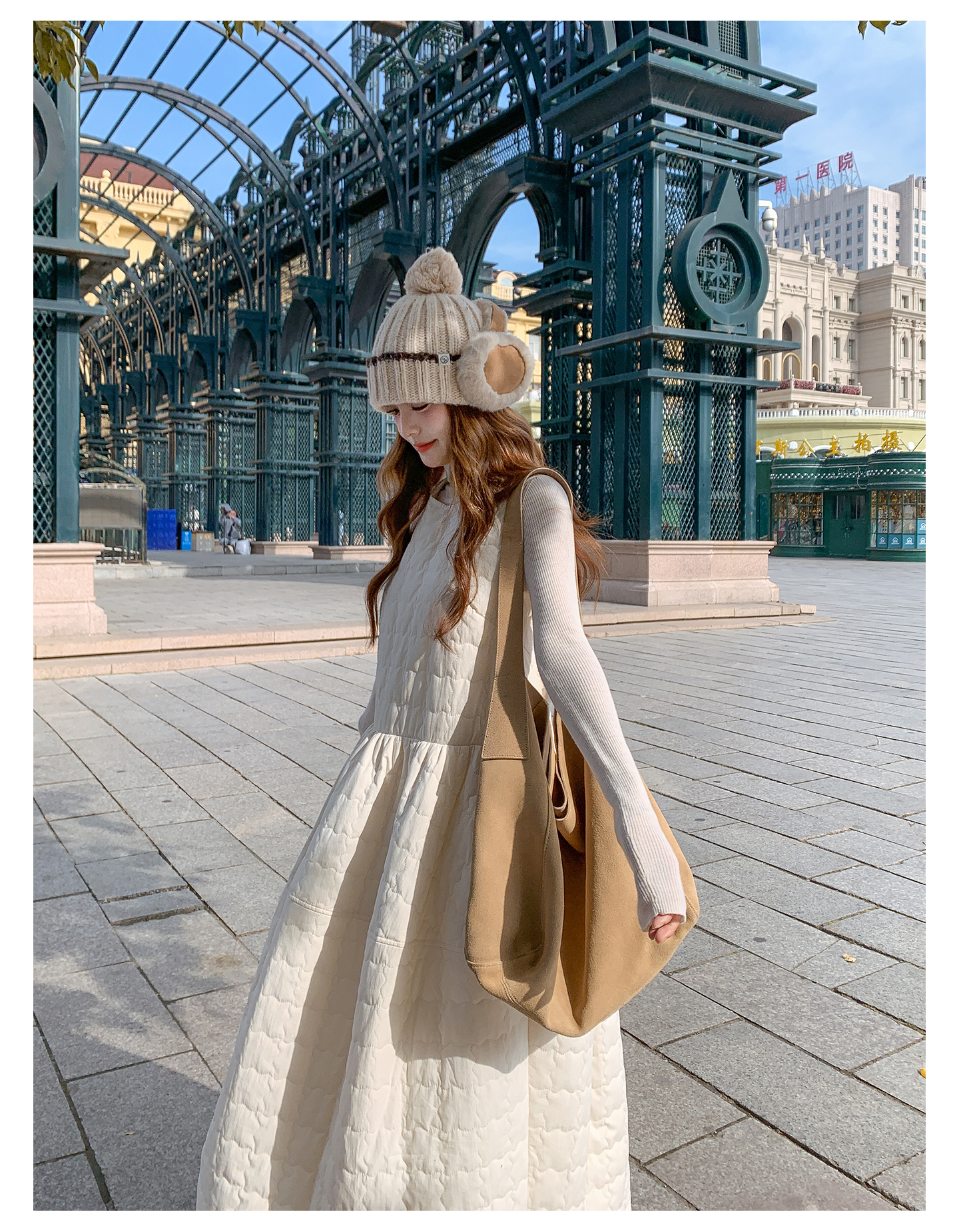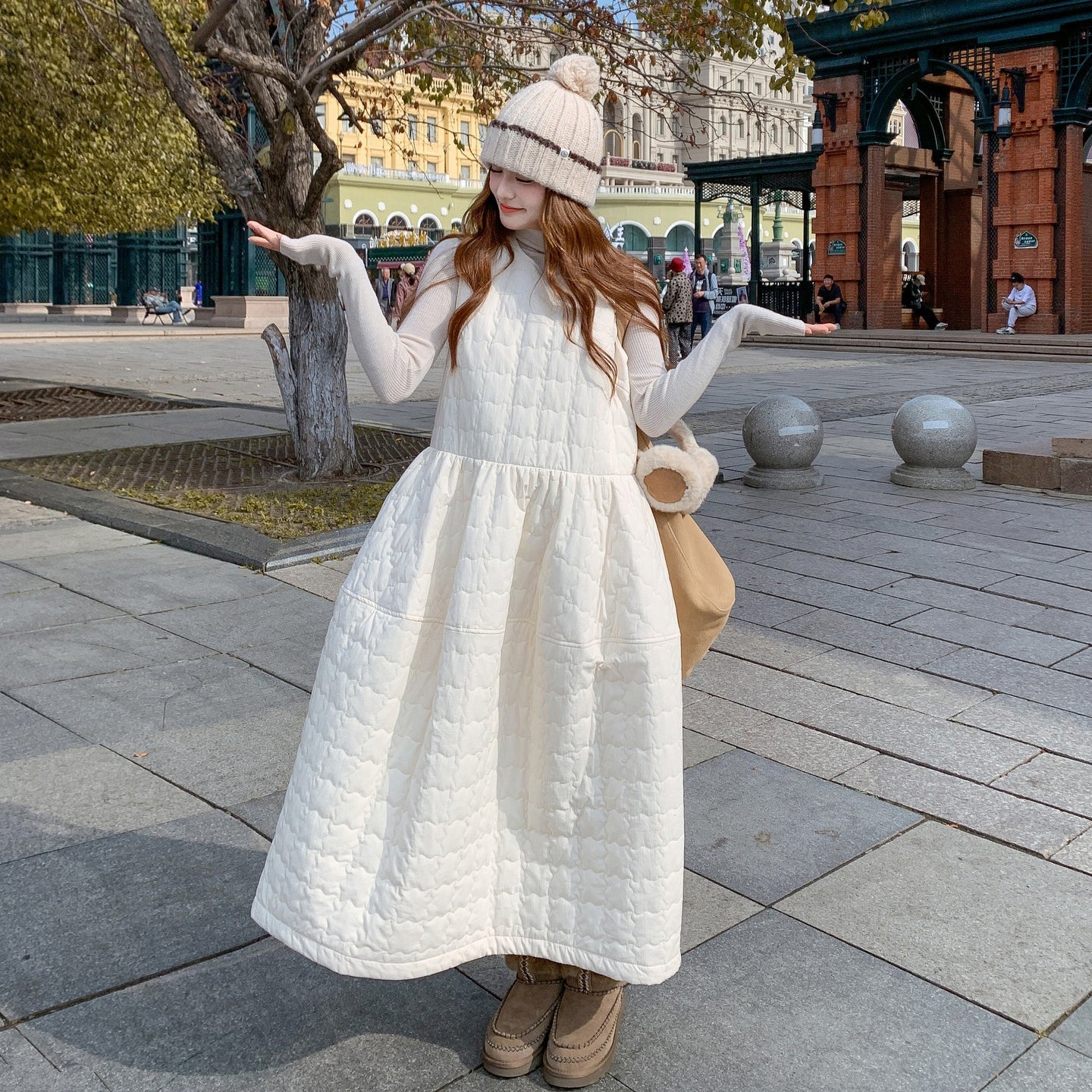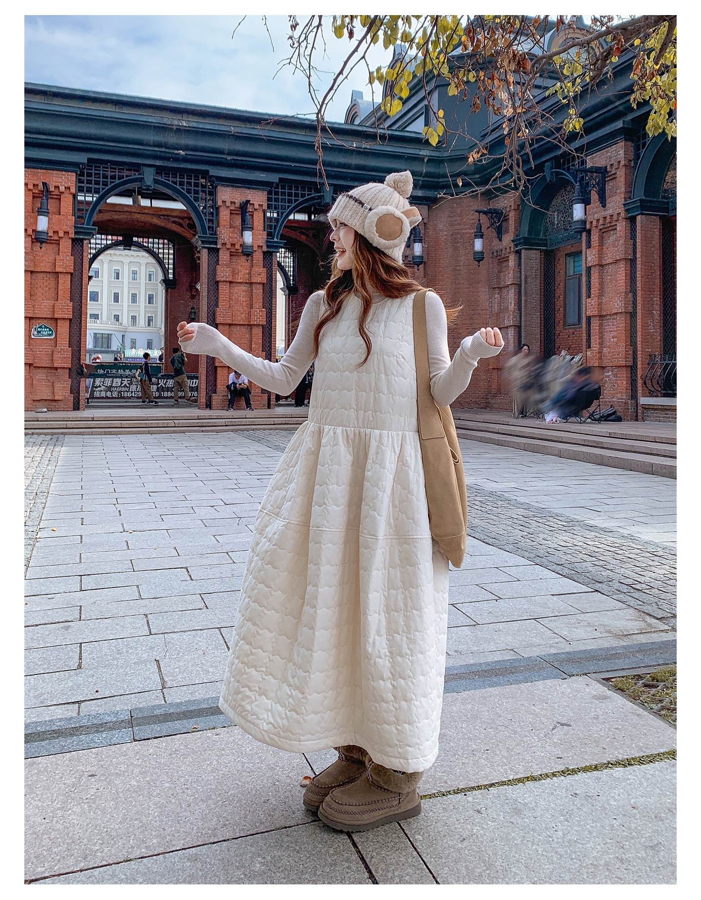 【ワンピース】韓国風 チェック柄 中綿入り ノースリーブワンピース 花びらシルエット レディース 秋冬新作【JZシリーズ】
