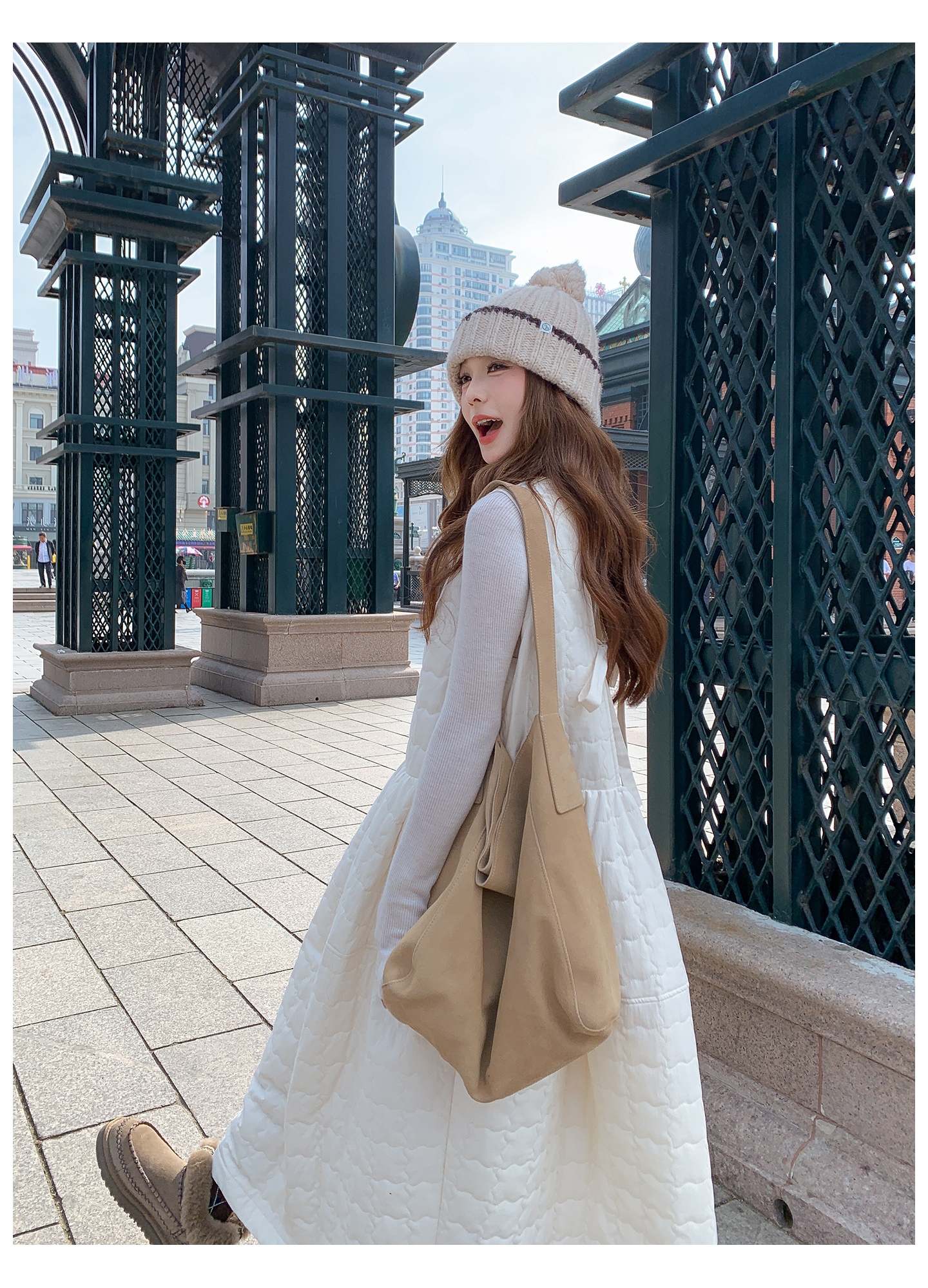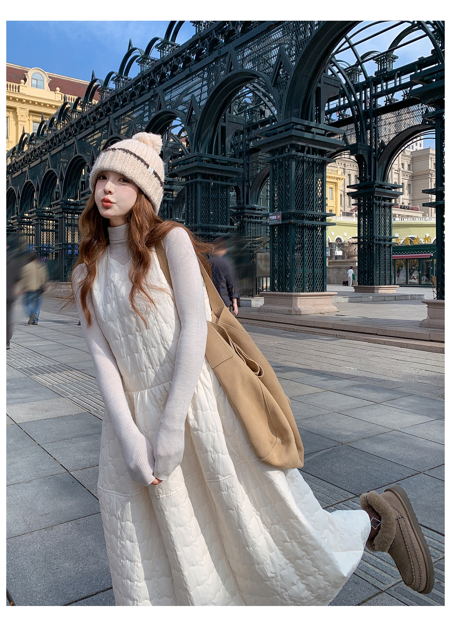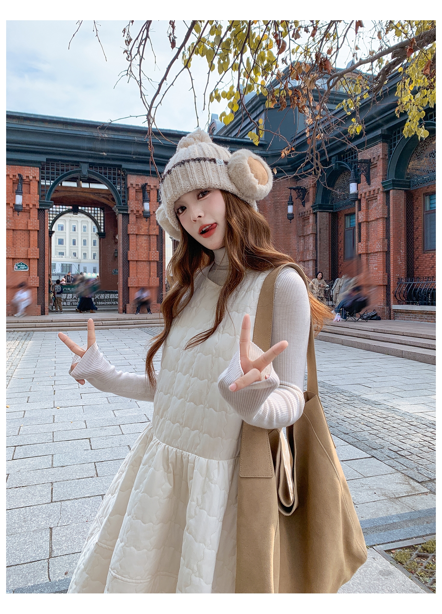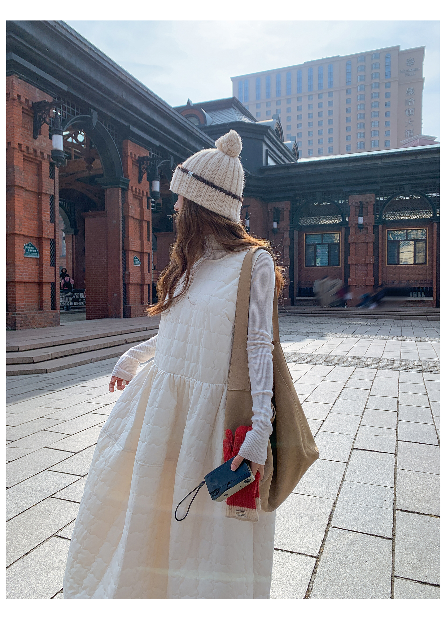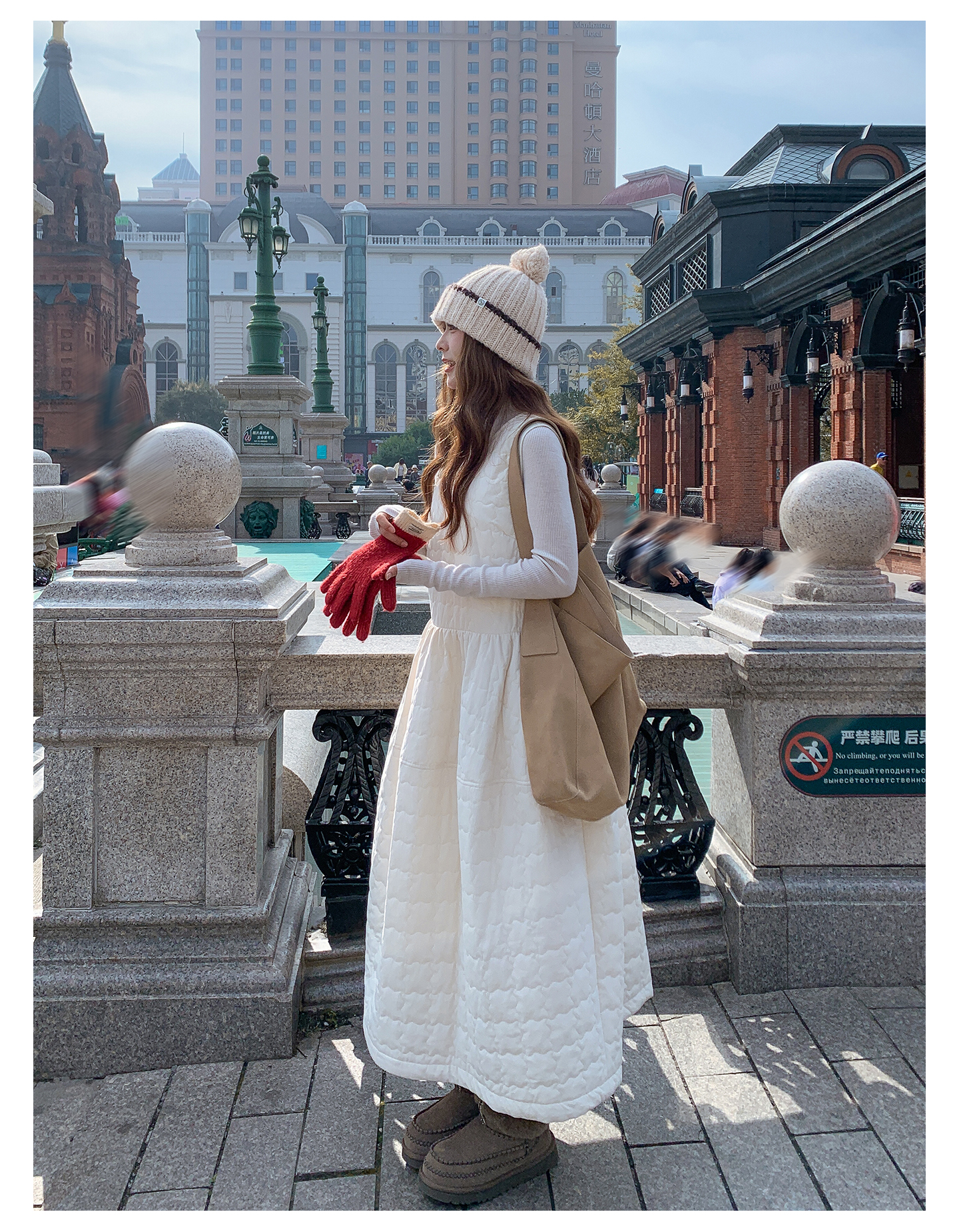 【ワンピース】韓国風 チェック柄 中綿入り ノースリーブワンピース 花びらシルエット レディース 秋冬新作【JZシリーズ】