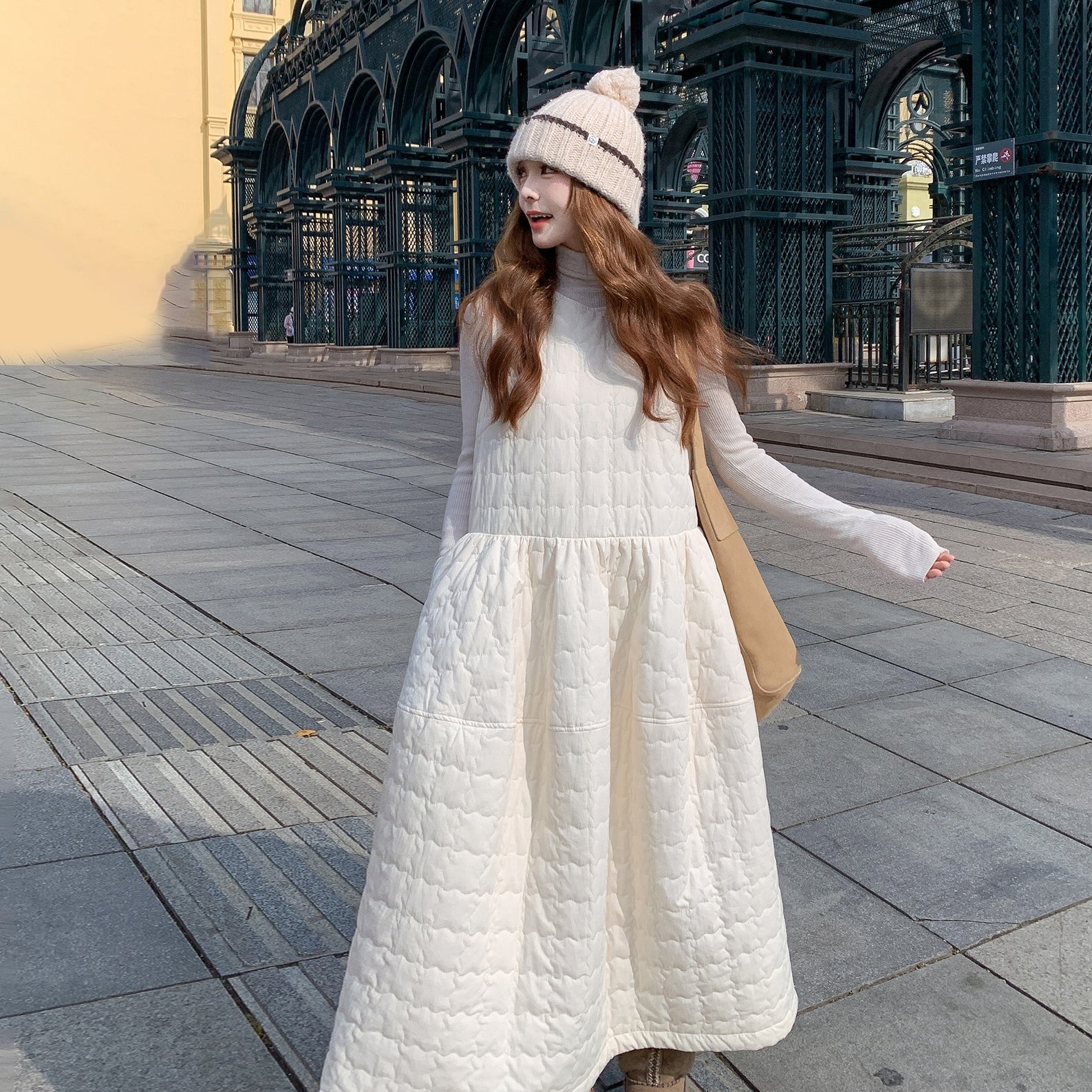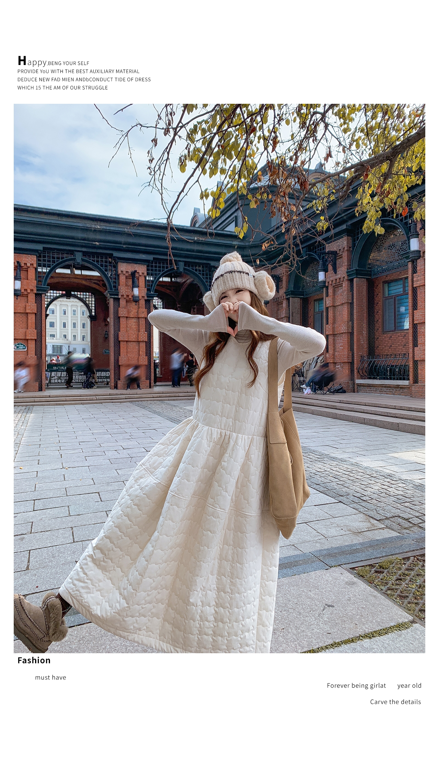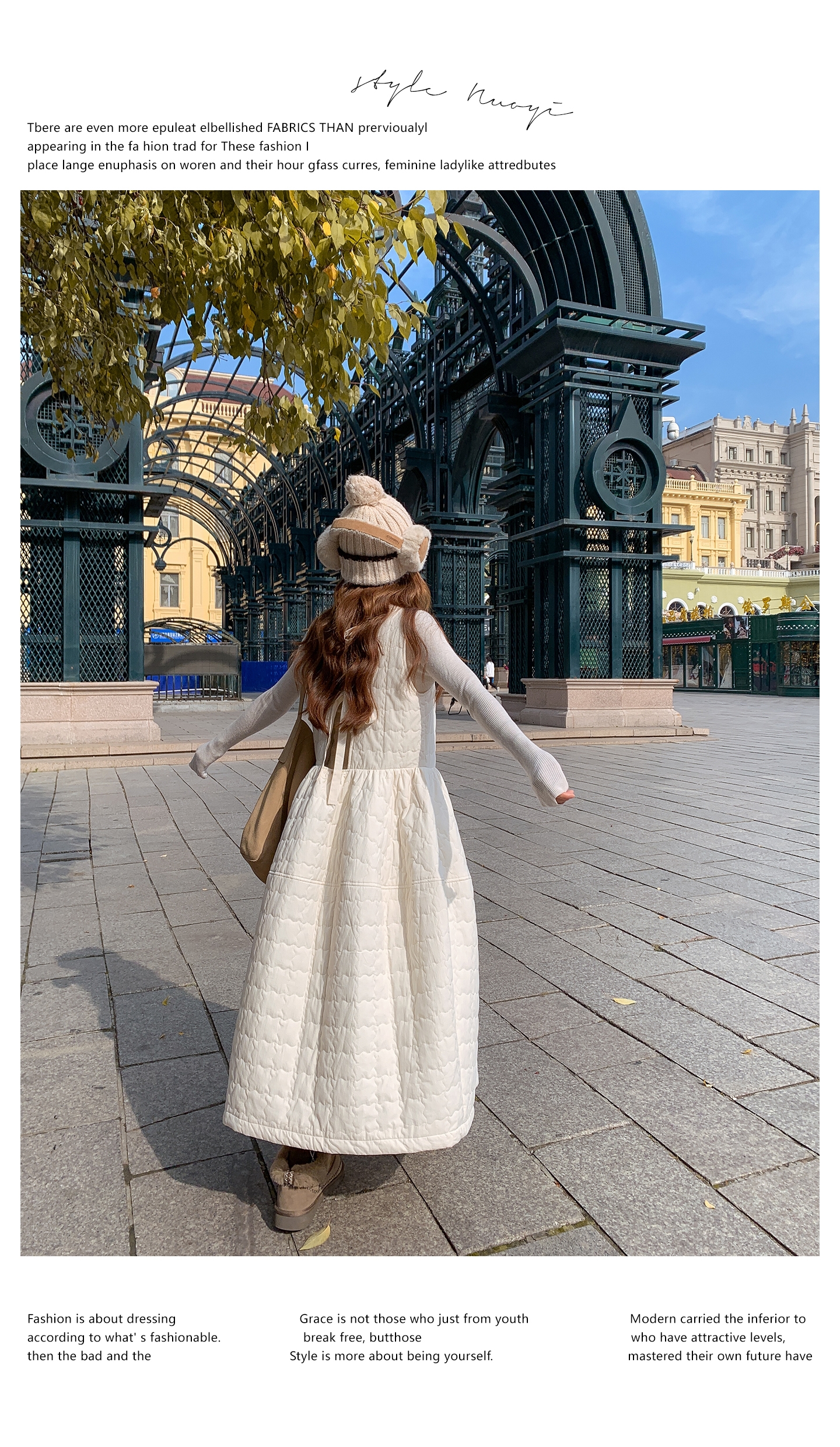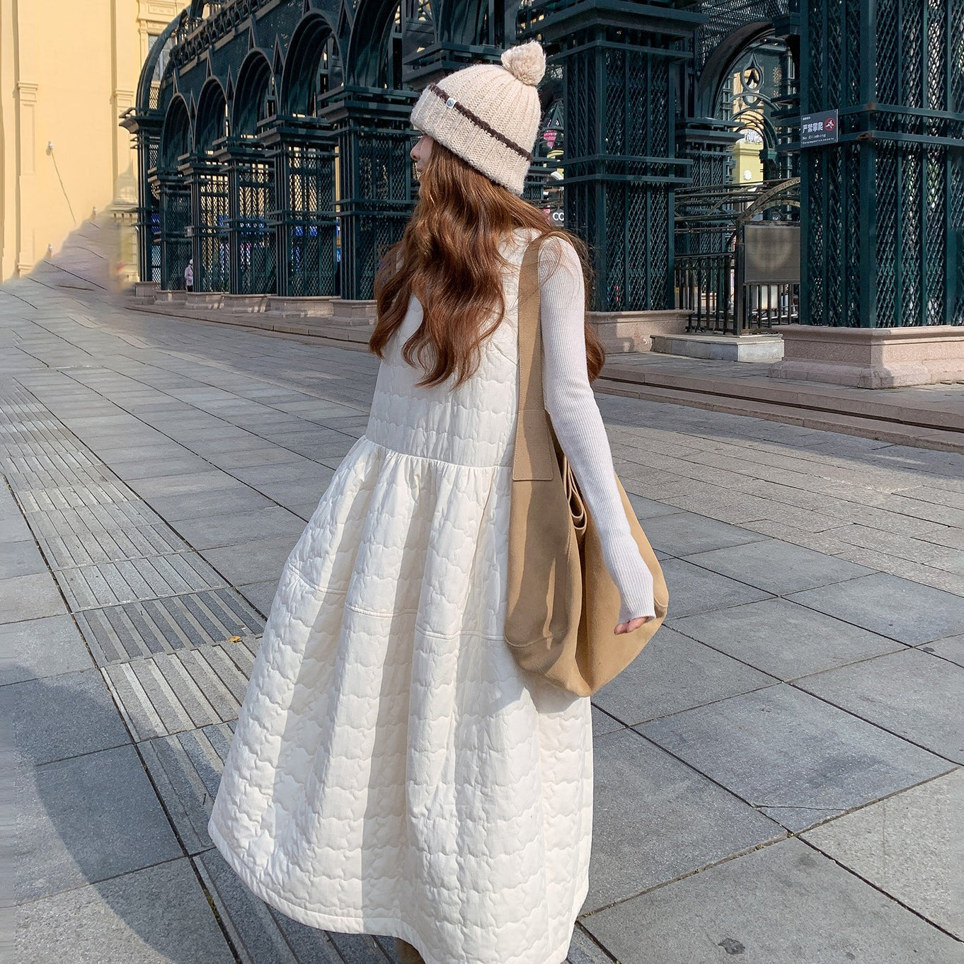 【商品名】【ワンピース】韓国風 チェック柄 中綿入り ノースリーブワンピース 花びらシルエット レディース 秋冬新作【JZシリーズ】