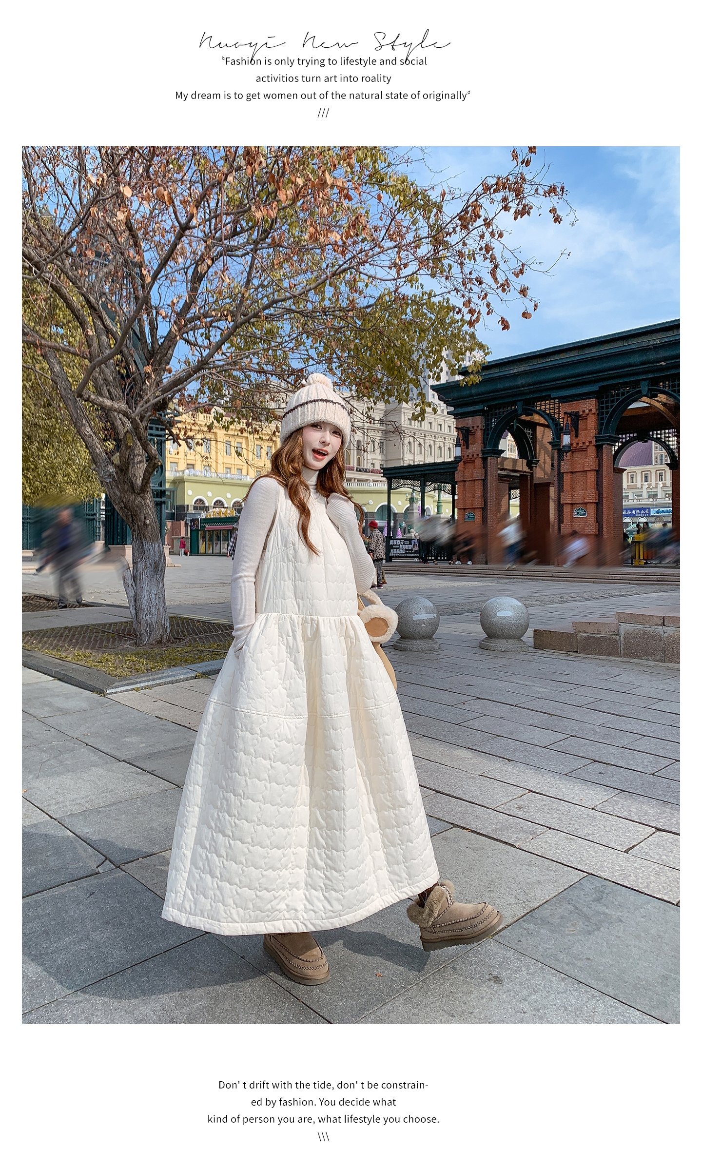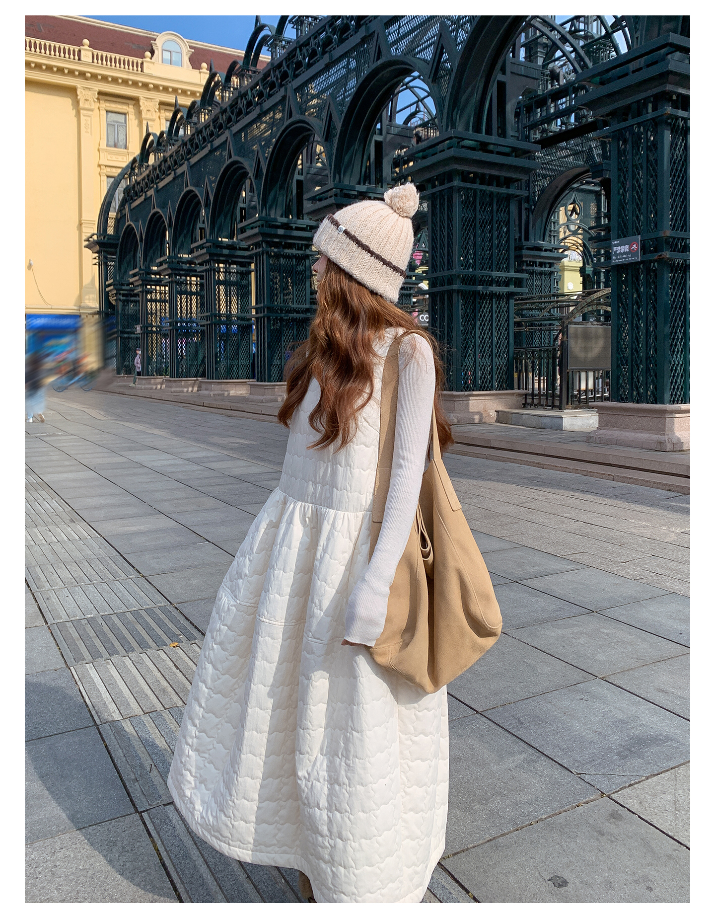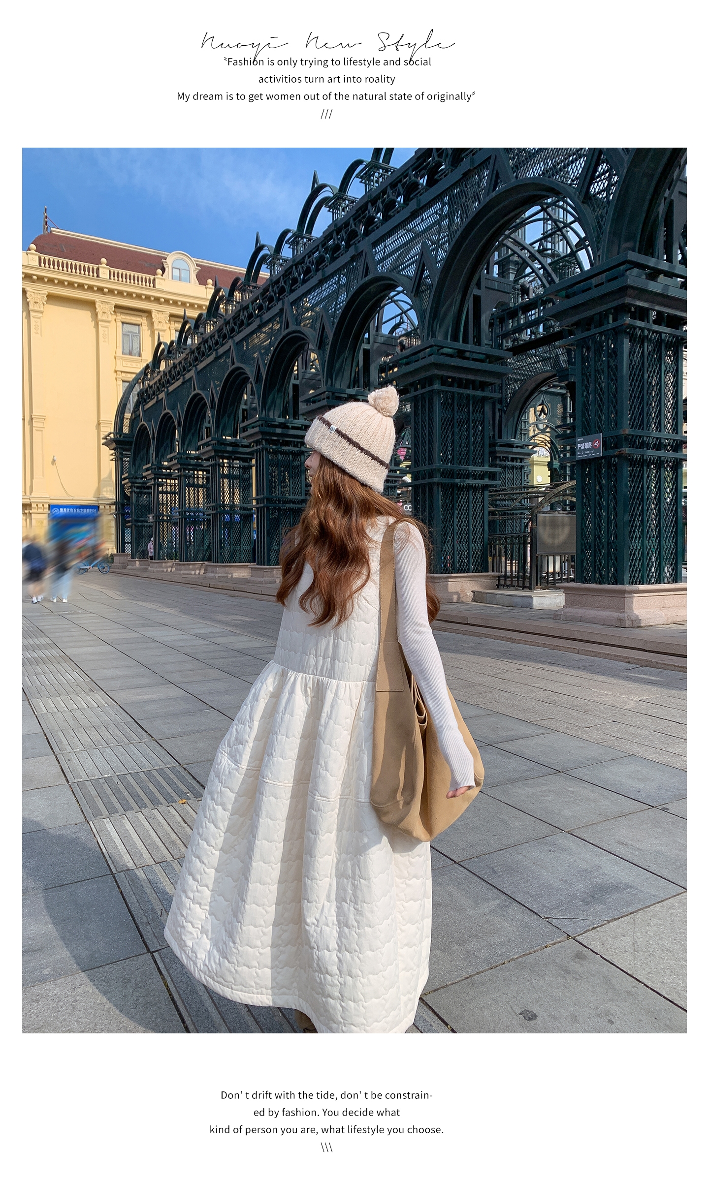 【商品名】【ワンピース】韓国風 チェック柄 中綿入り ノースリーブワンピース 花びらシルエット レディース 秋冬新作【JZシリーズ】