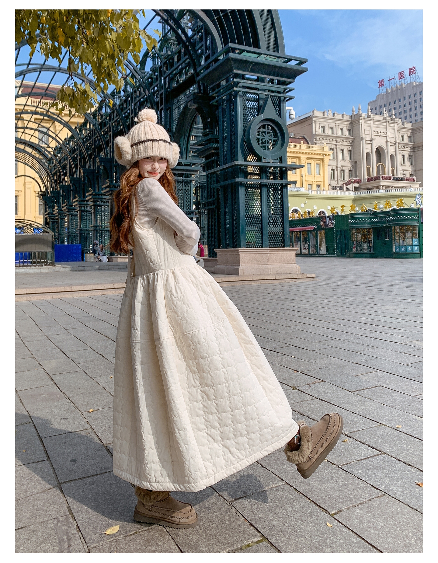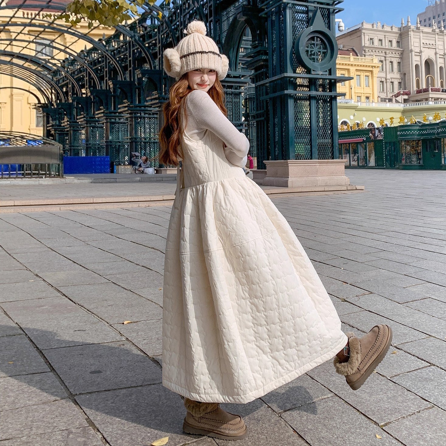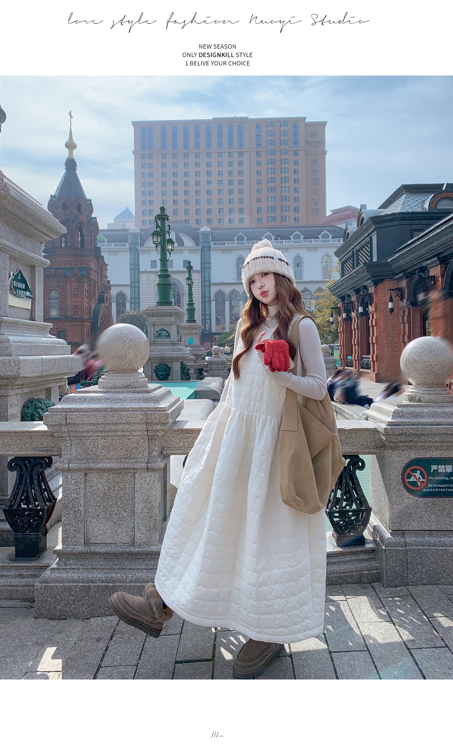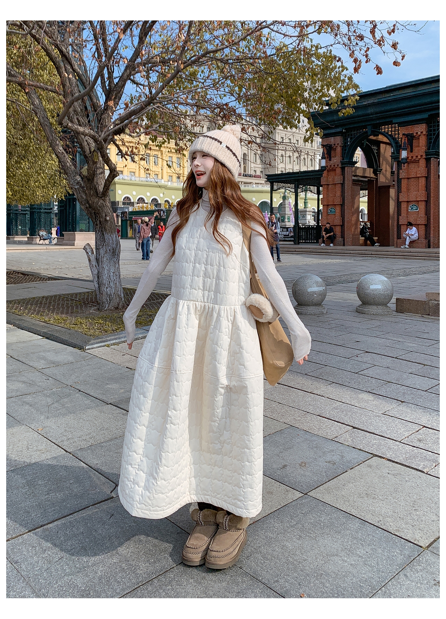 【商品名】【ワンピース】韓国風 チェック柄 中綿入り ノースリーブワンピース 花びらシルエット レディース 秋冬新作【JZシリーズ】