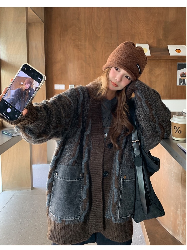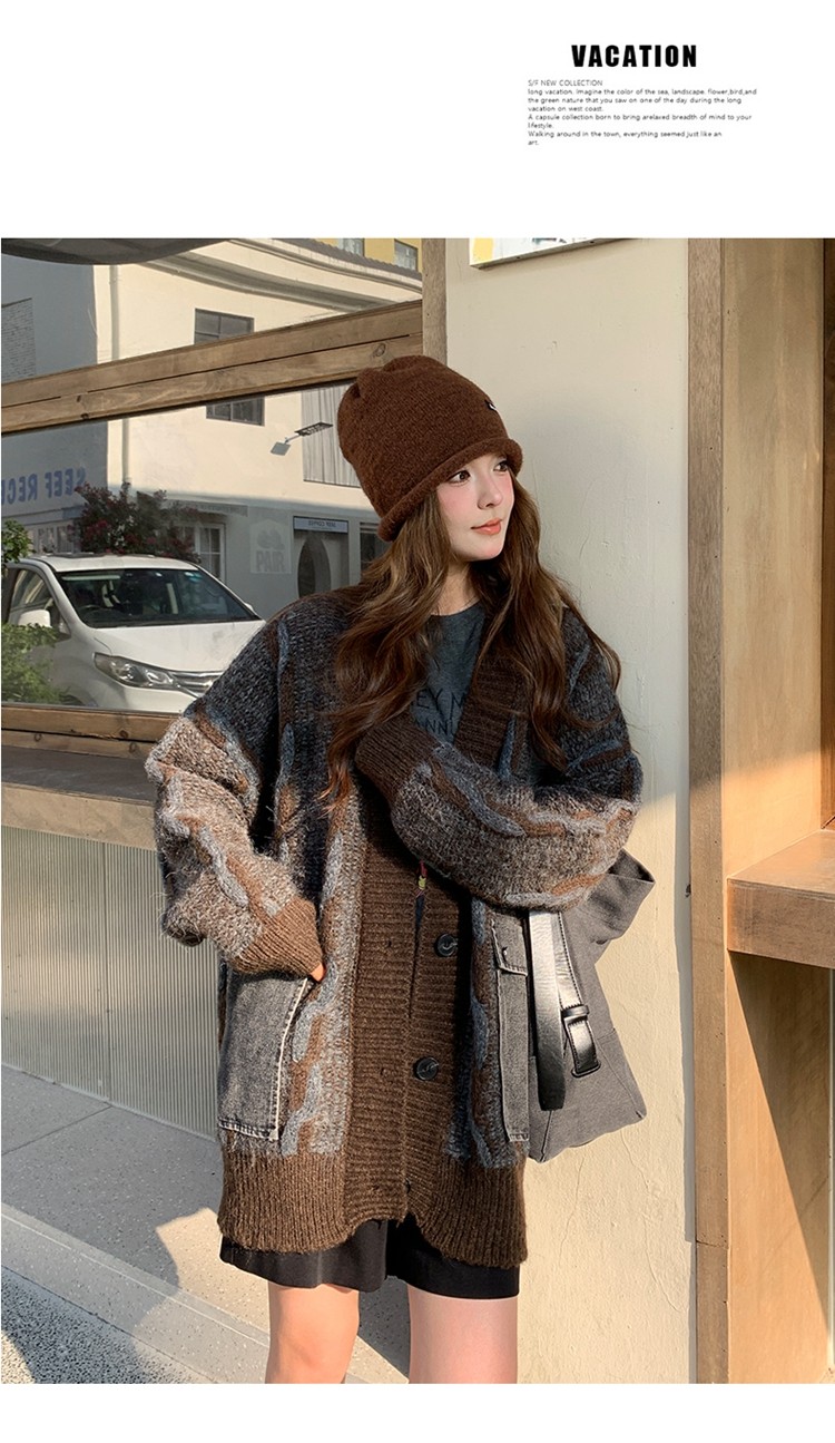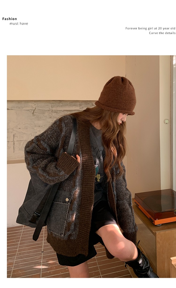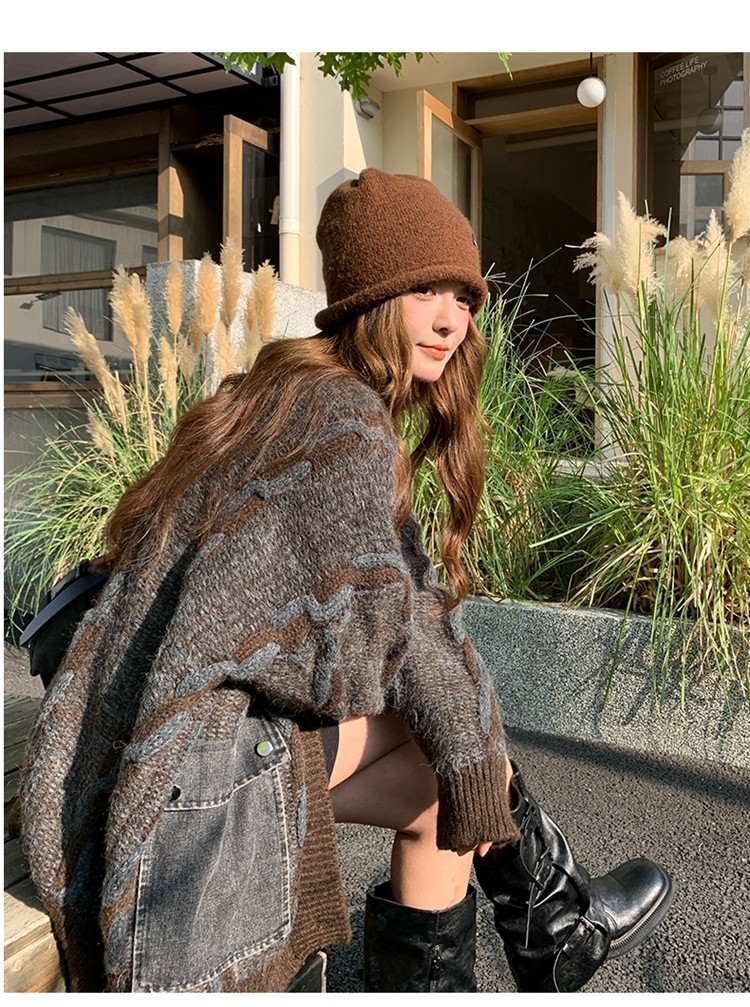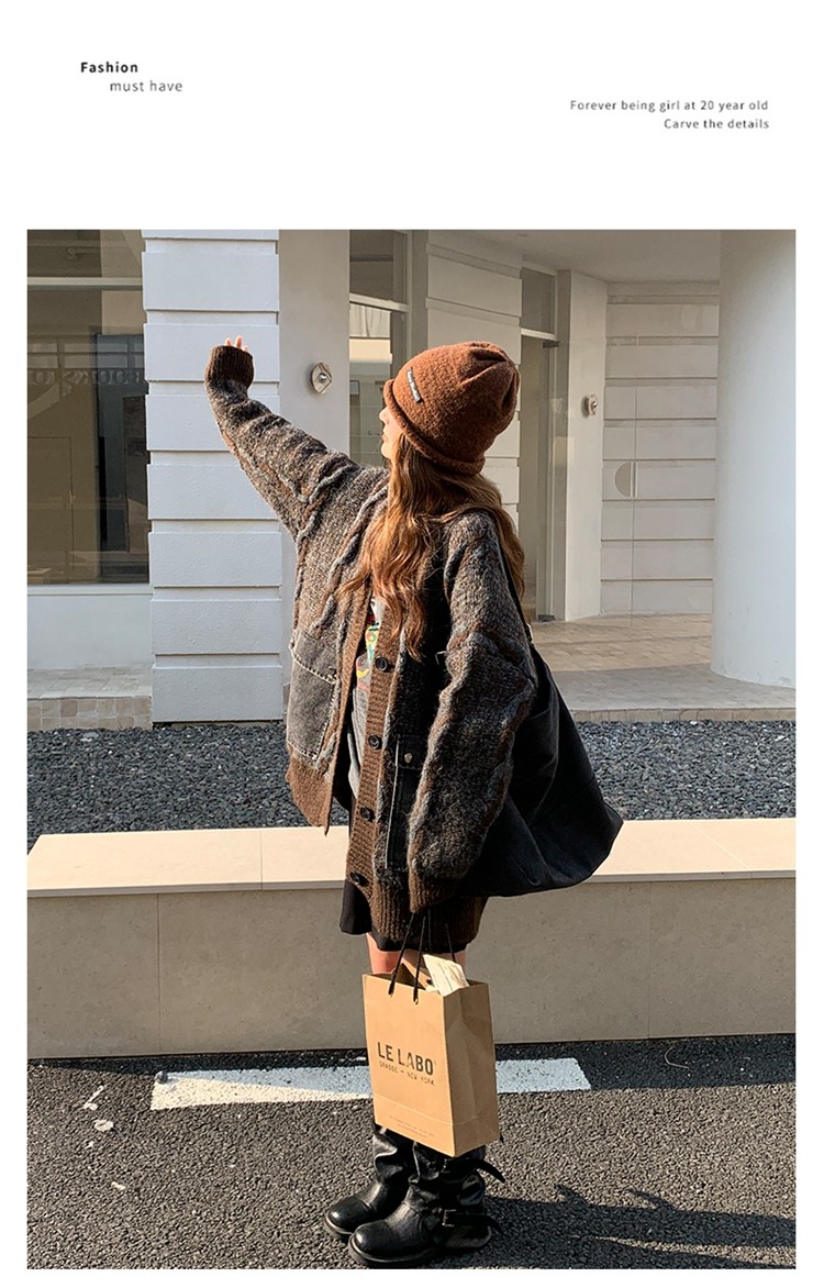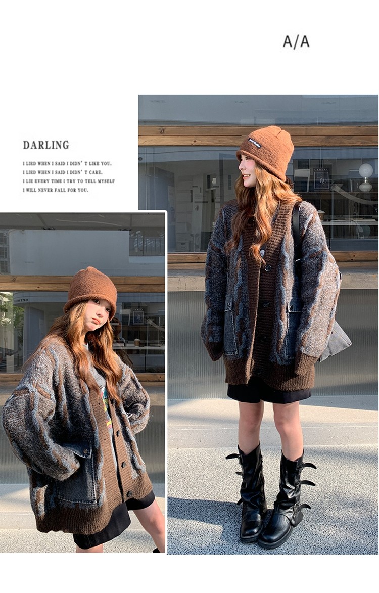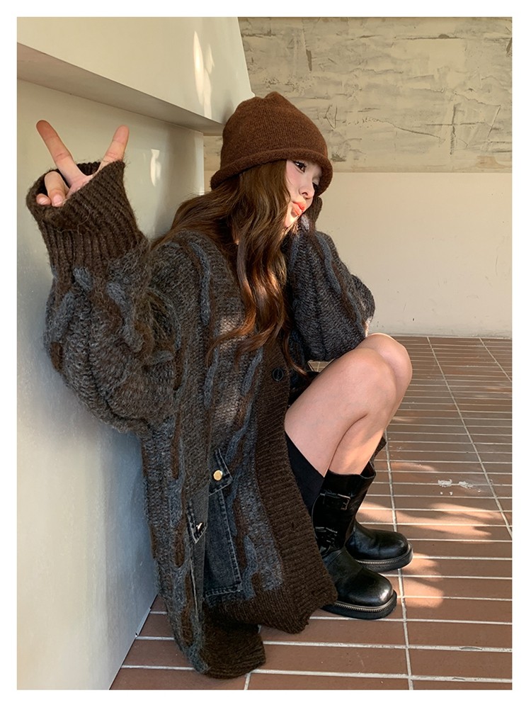 【アウター】✨レトロデザインで個性派!韓国風 ゆったり ニットカーディガン レディース 秋冬 ふんわり可愛い雰囲気【JZシリーズ】