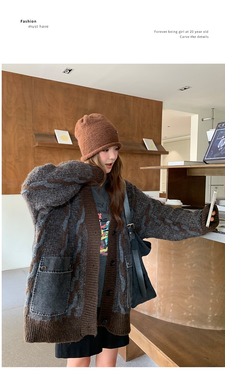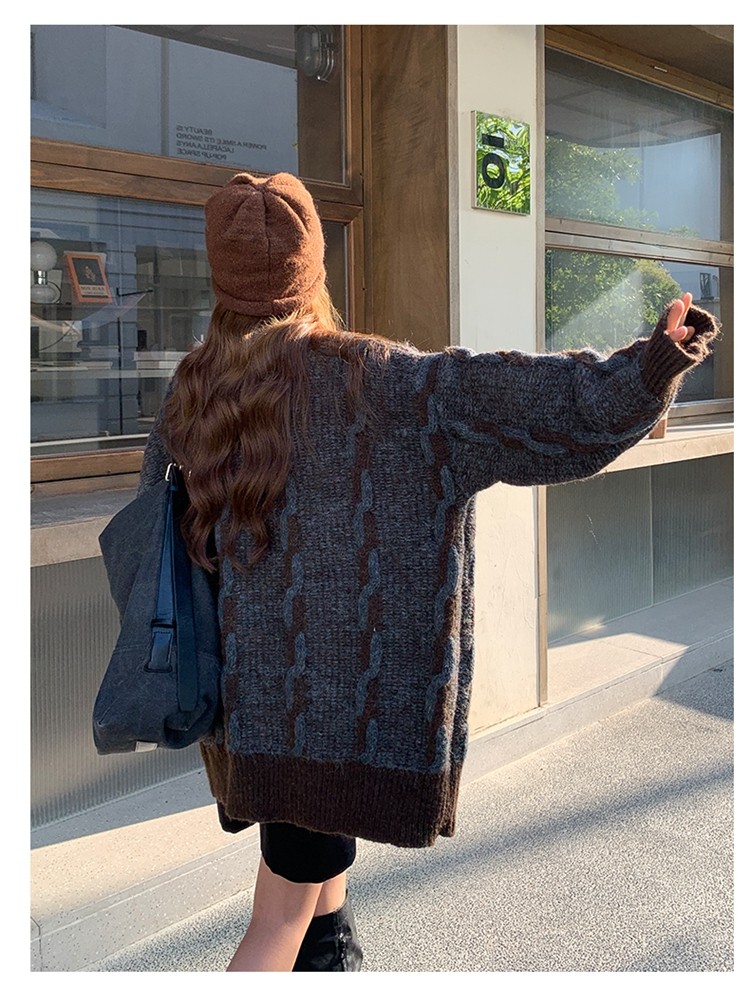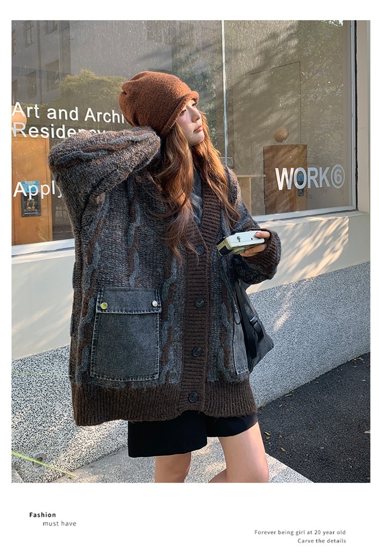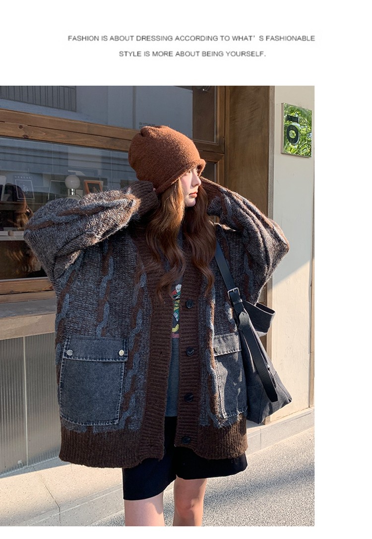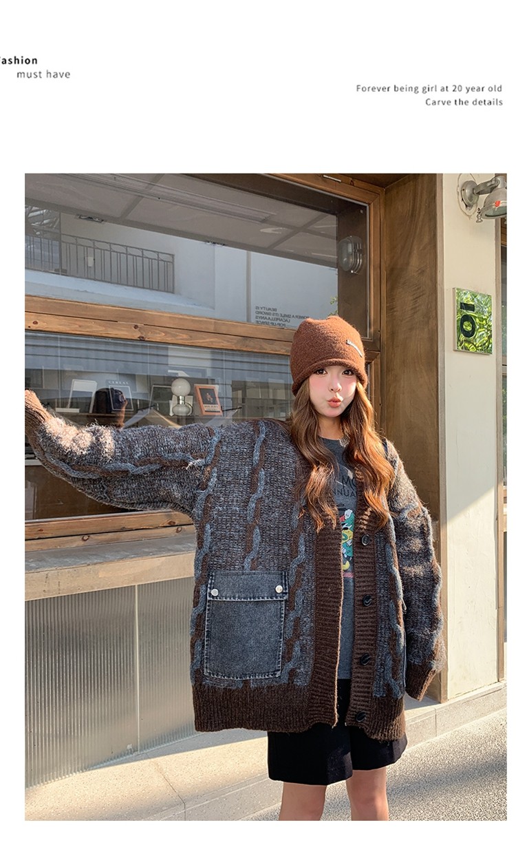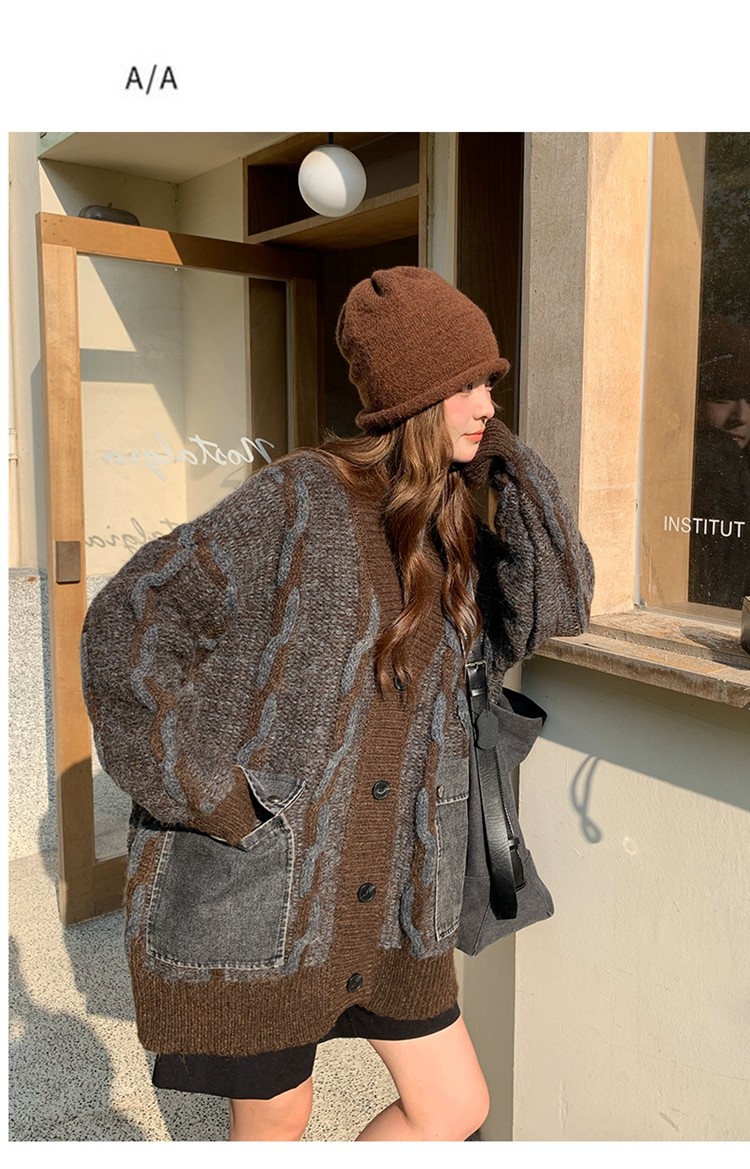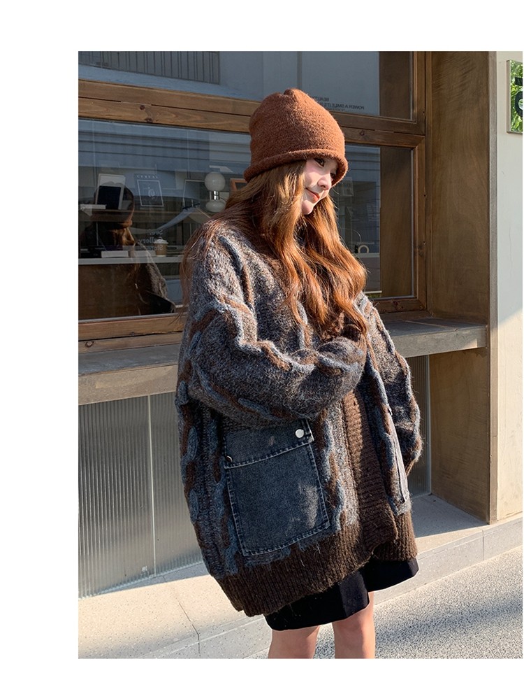【アウター】✨レトロデザインで個性派!韓国風 ゆったり ニットカーディガン レディース 秋冬 ふんわり可愛い雰囲気【JZシリーズ】