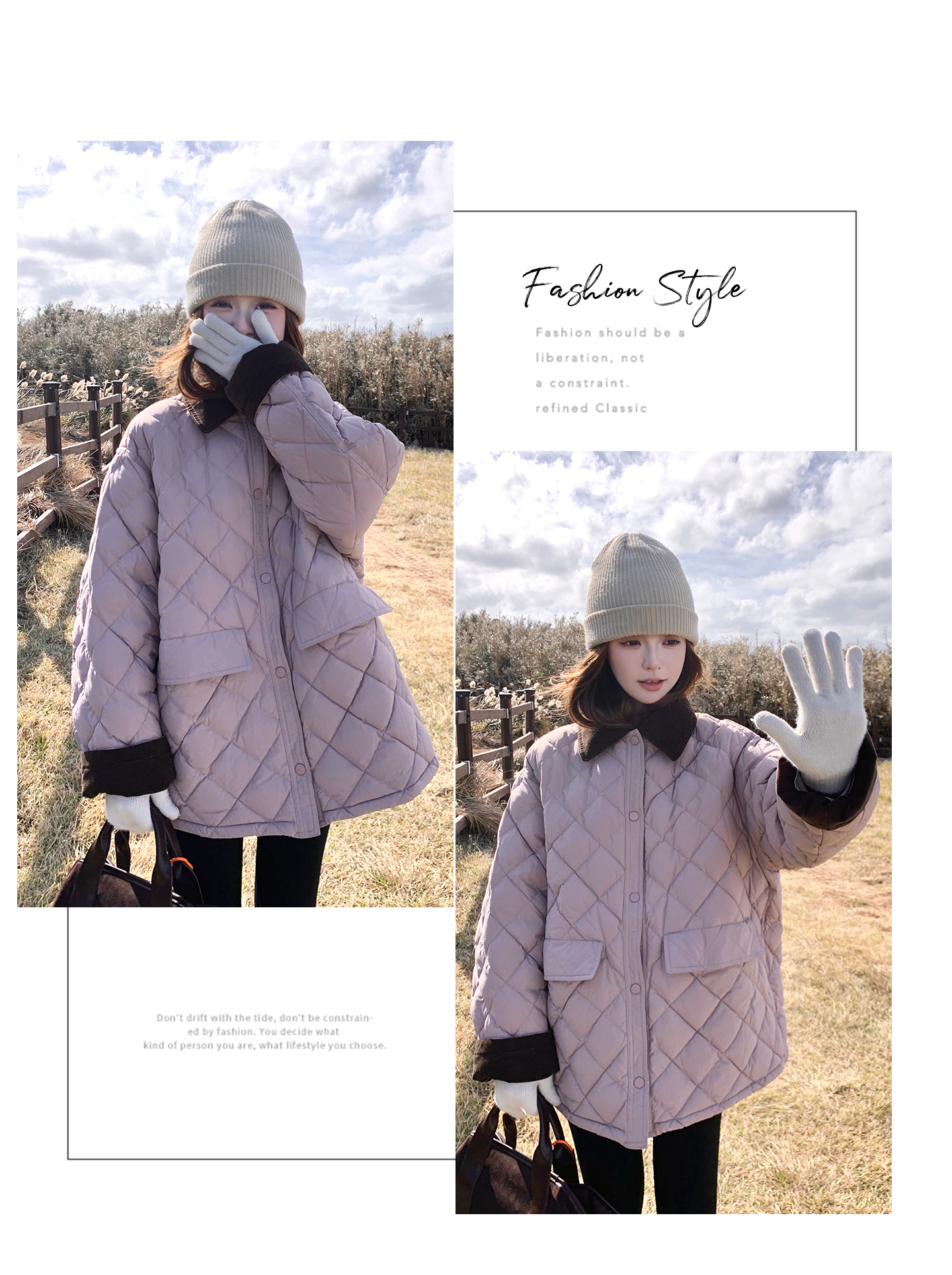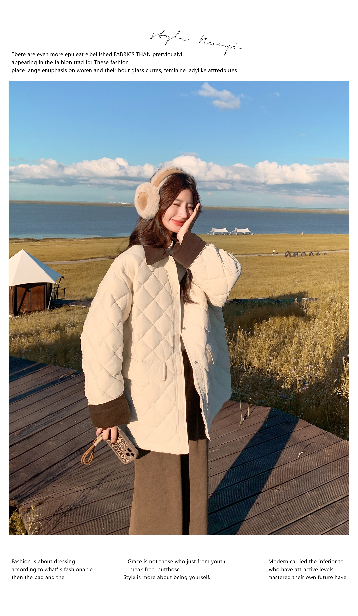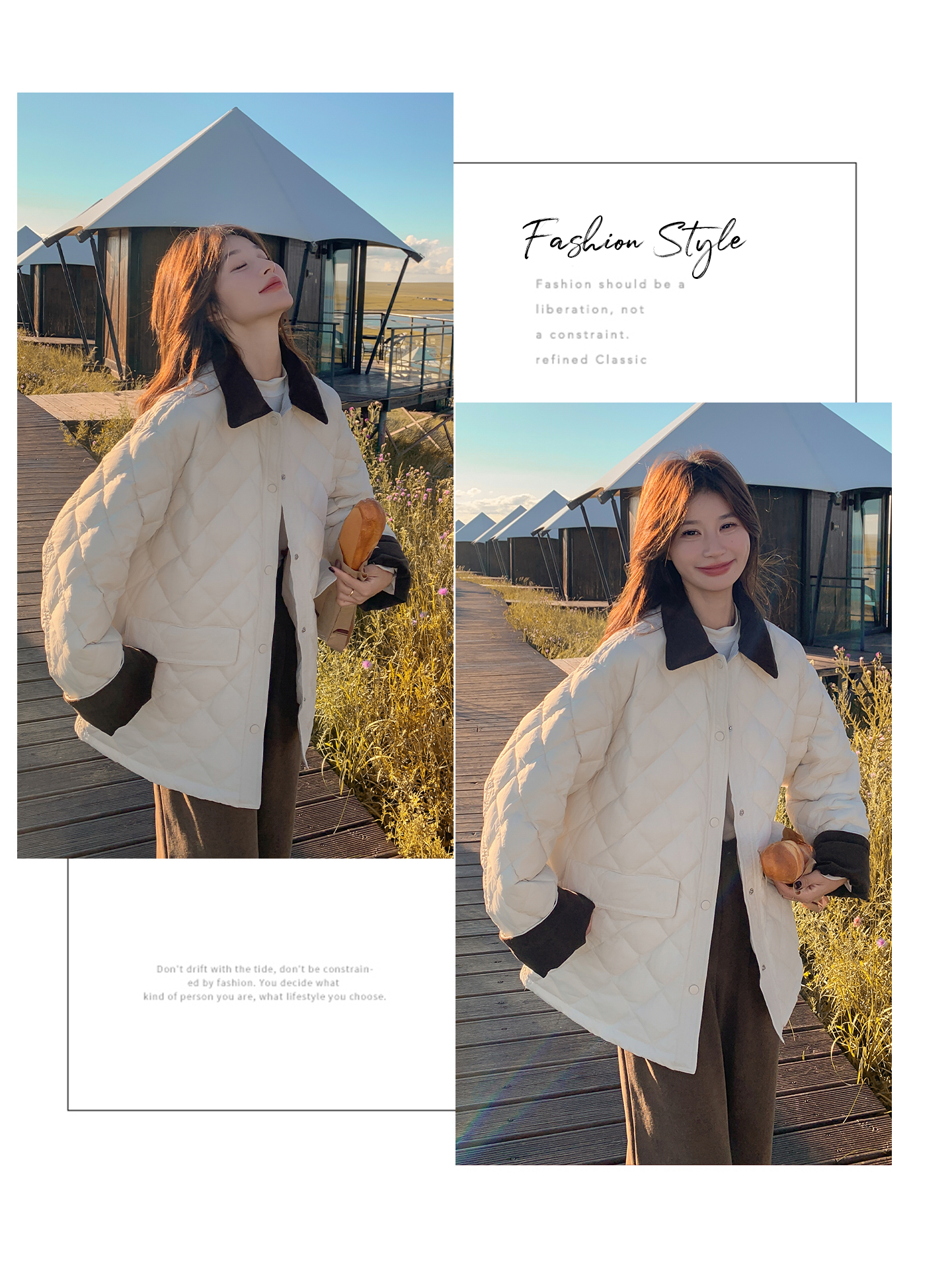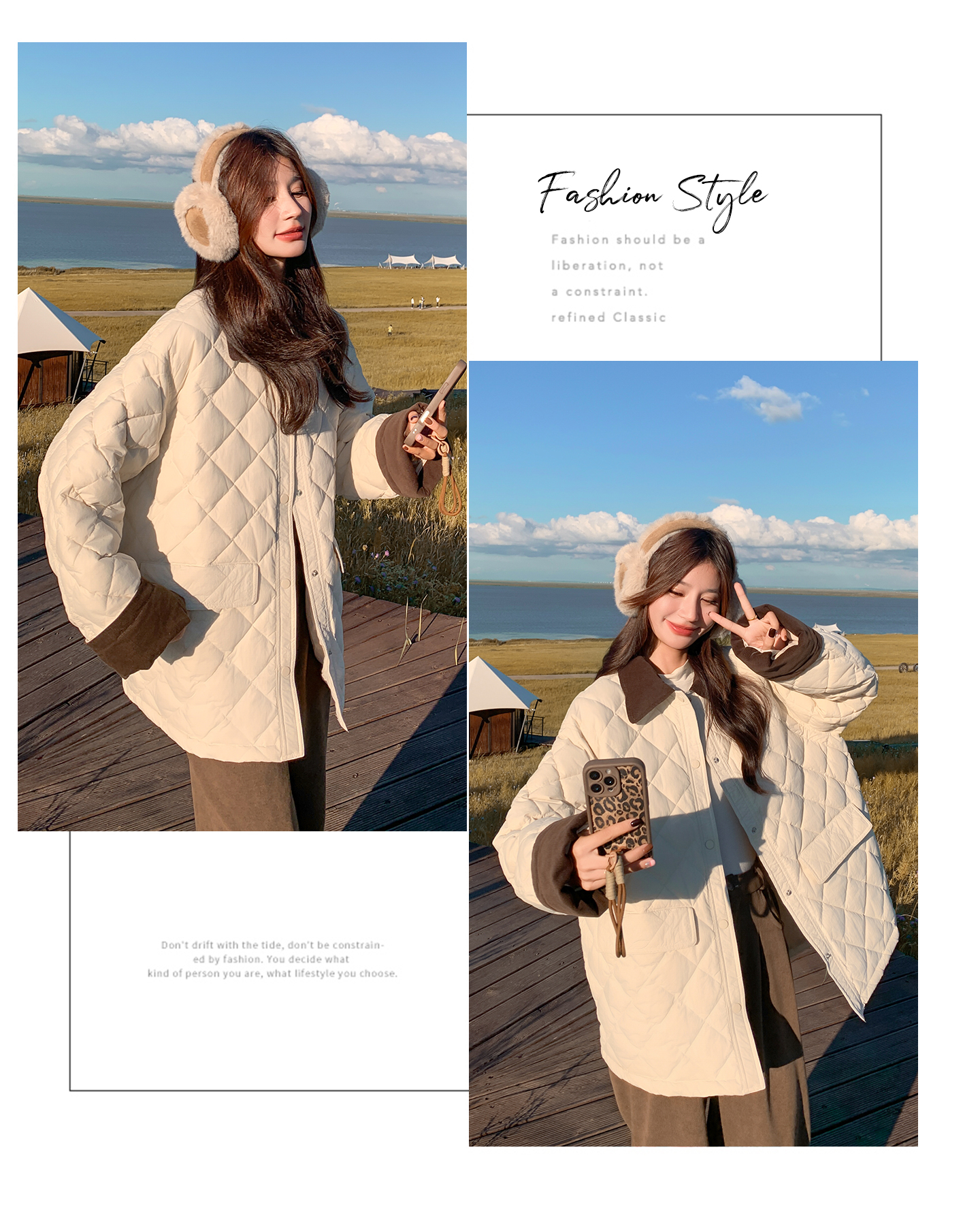 【アウター】バイカラー&大きめポケット🎵 上品 中綿コート レディース 秋冬 韓国風 綿入れコート【JZシリーズ】