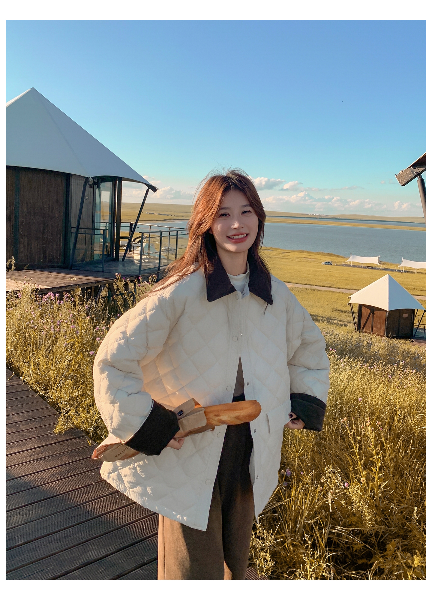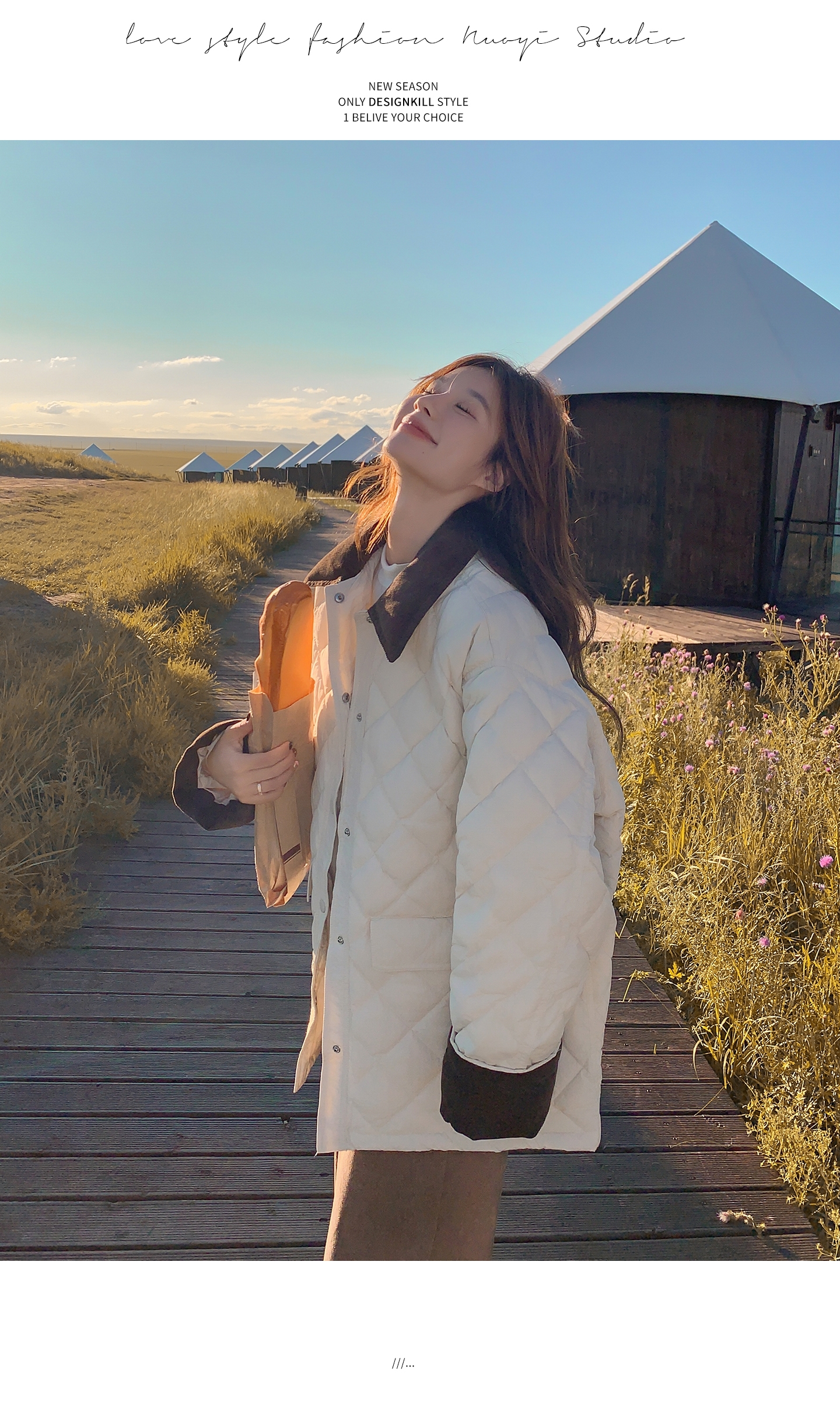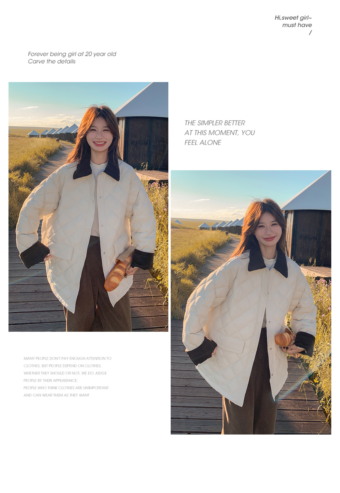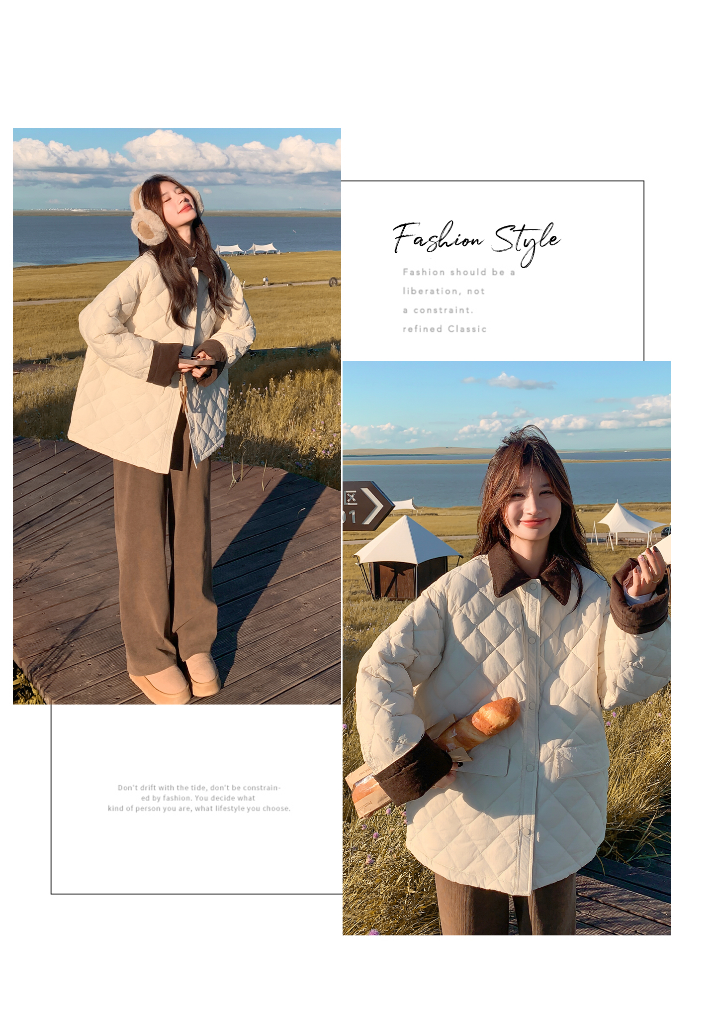 【アウター】バイカラー&大きめポケット🎵 上品 中綿コート レディース 秋冬 韓国風 綿入れコート【JZシリーズ】