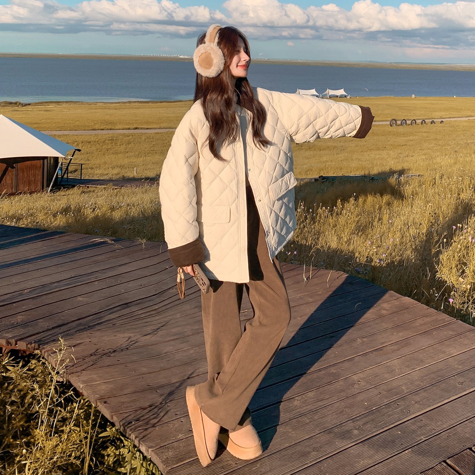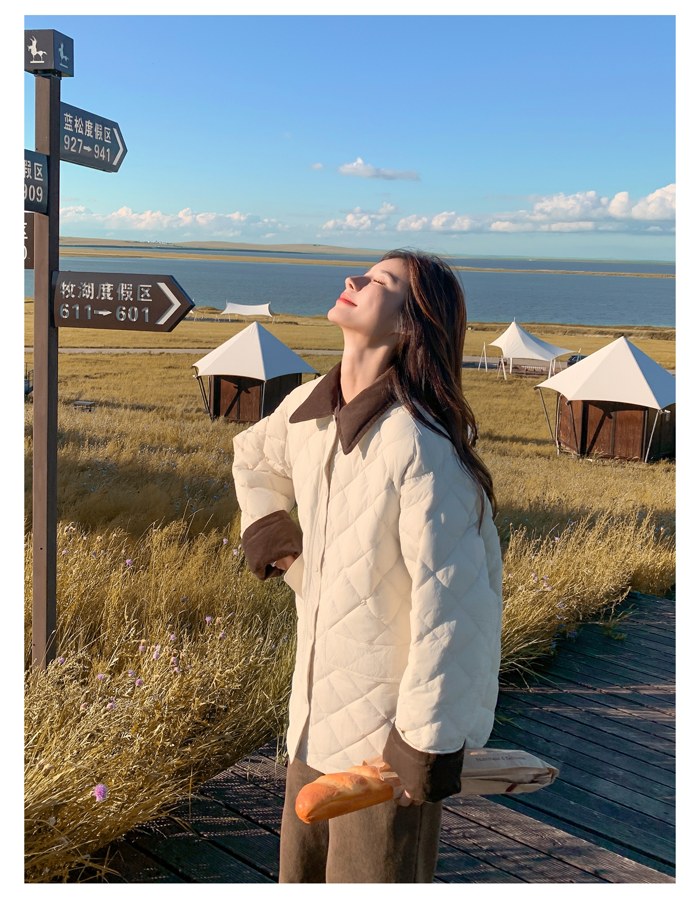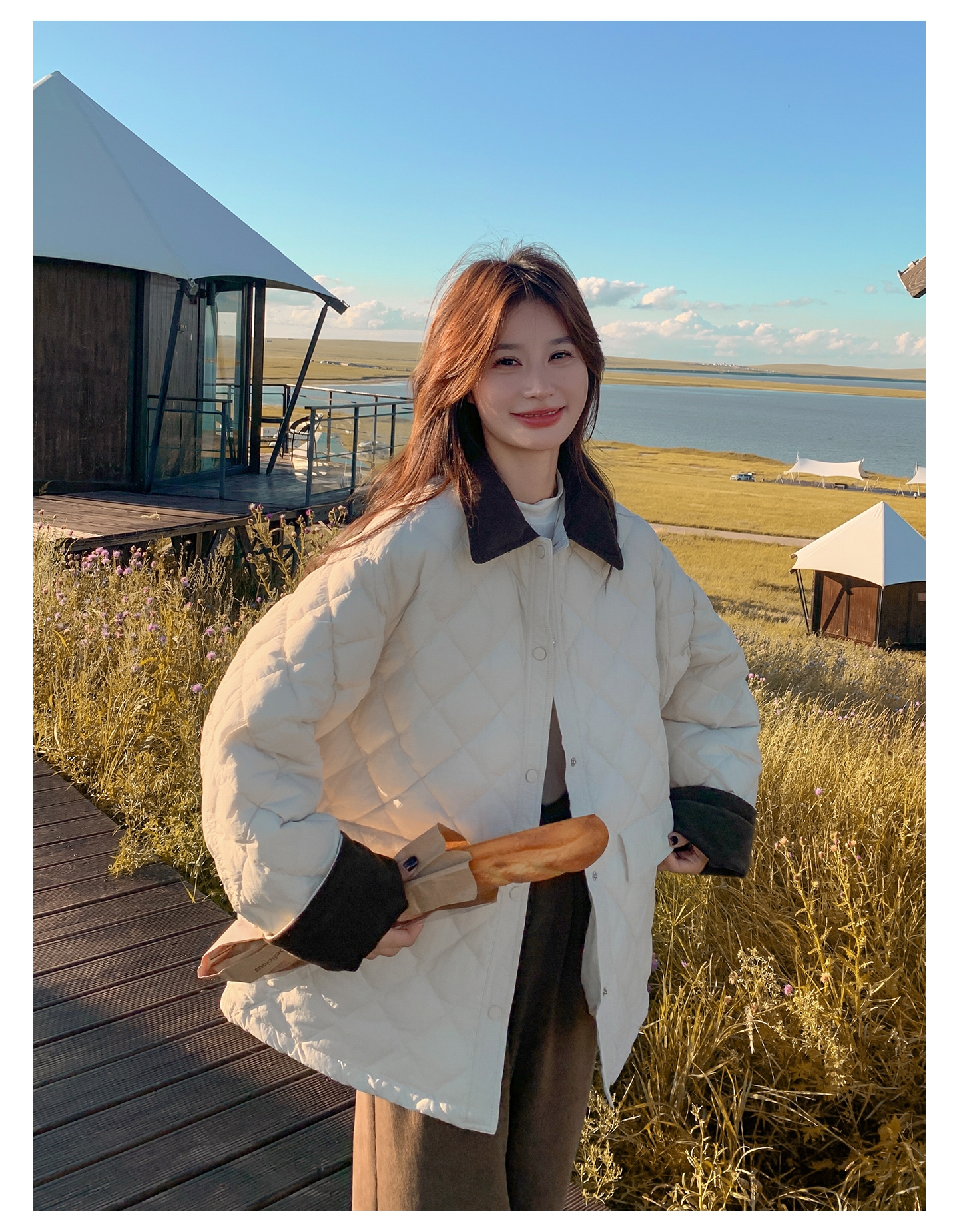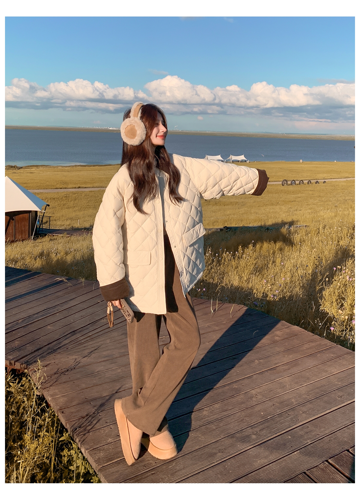 【アウター】バイカラー&大きめポケット🎵 上品 中綿コート レディース 秋冬 韓国風 綿入れコート【JZシリーズ】