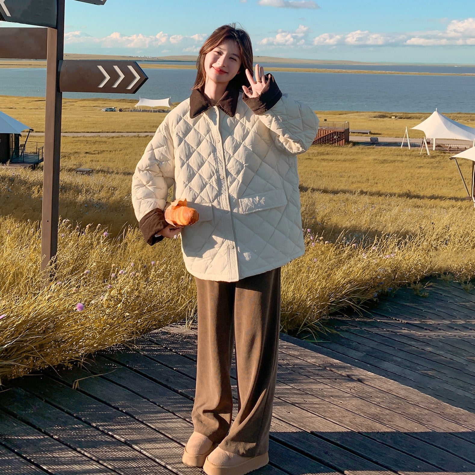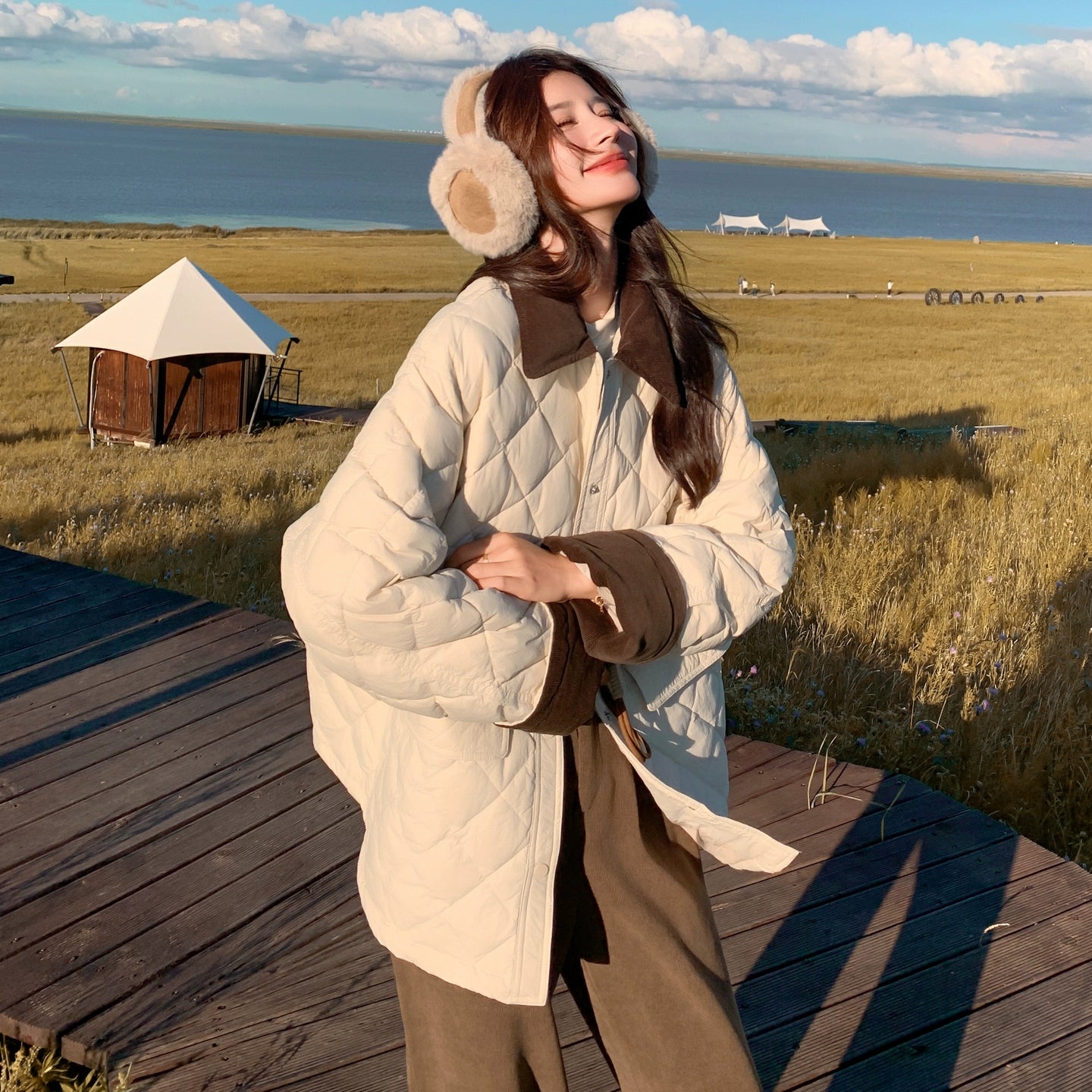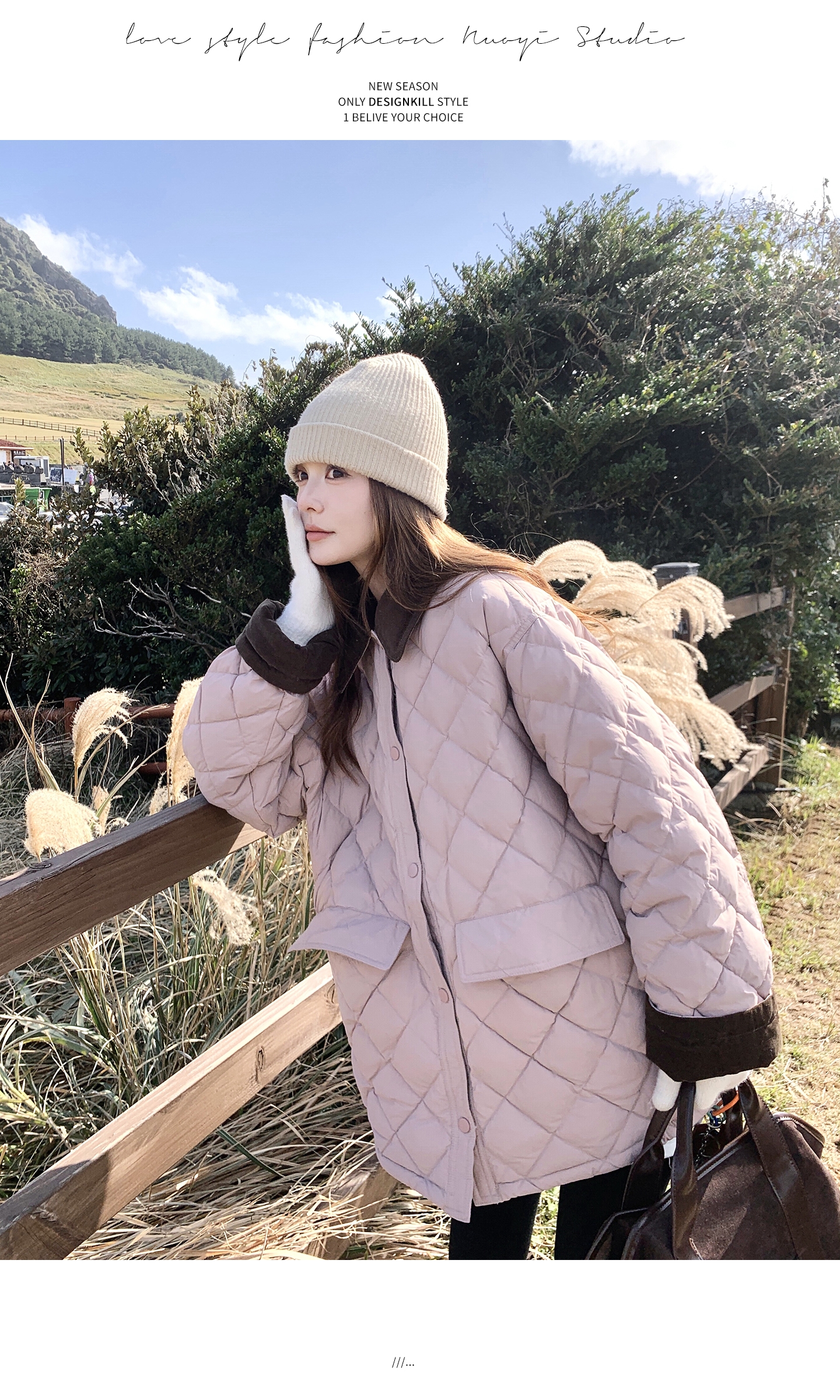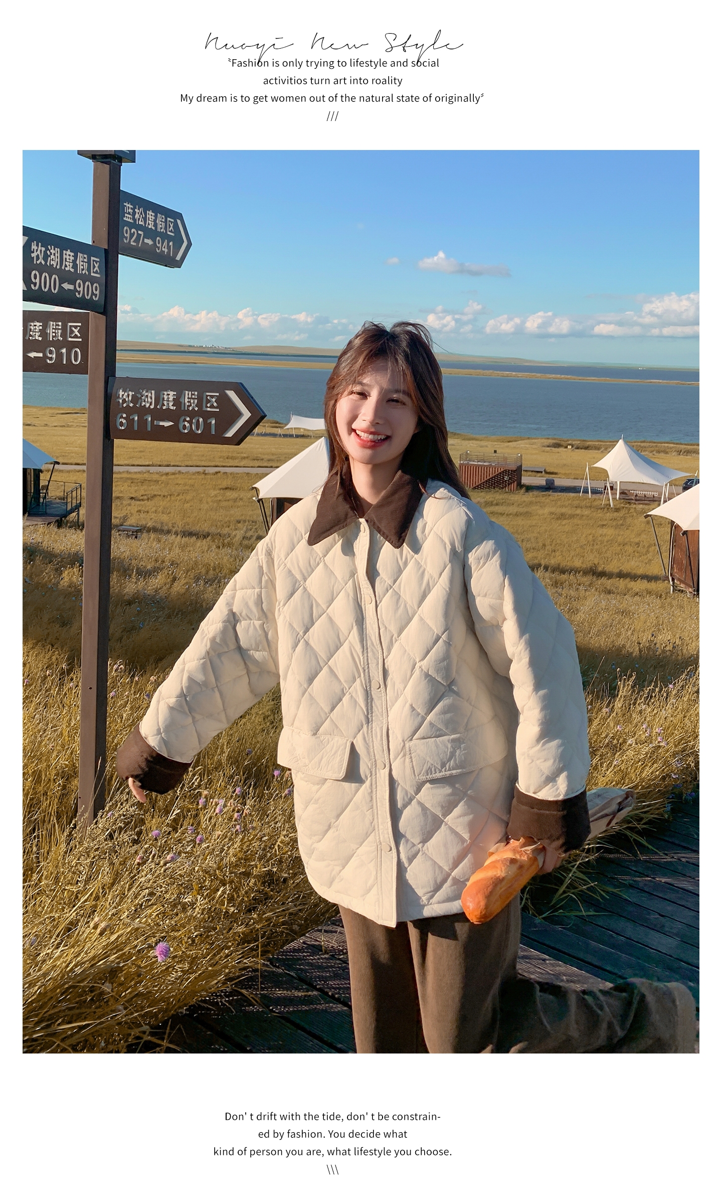 【アウター】バイカラー&大きめポケット🎵 上品 中綿コート レディース 秋冬 韓国風 綿入れコート【JZシリーズ】