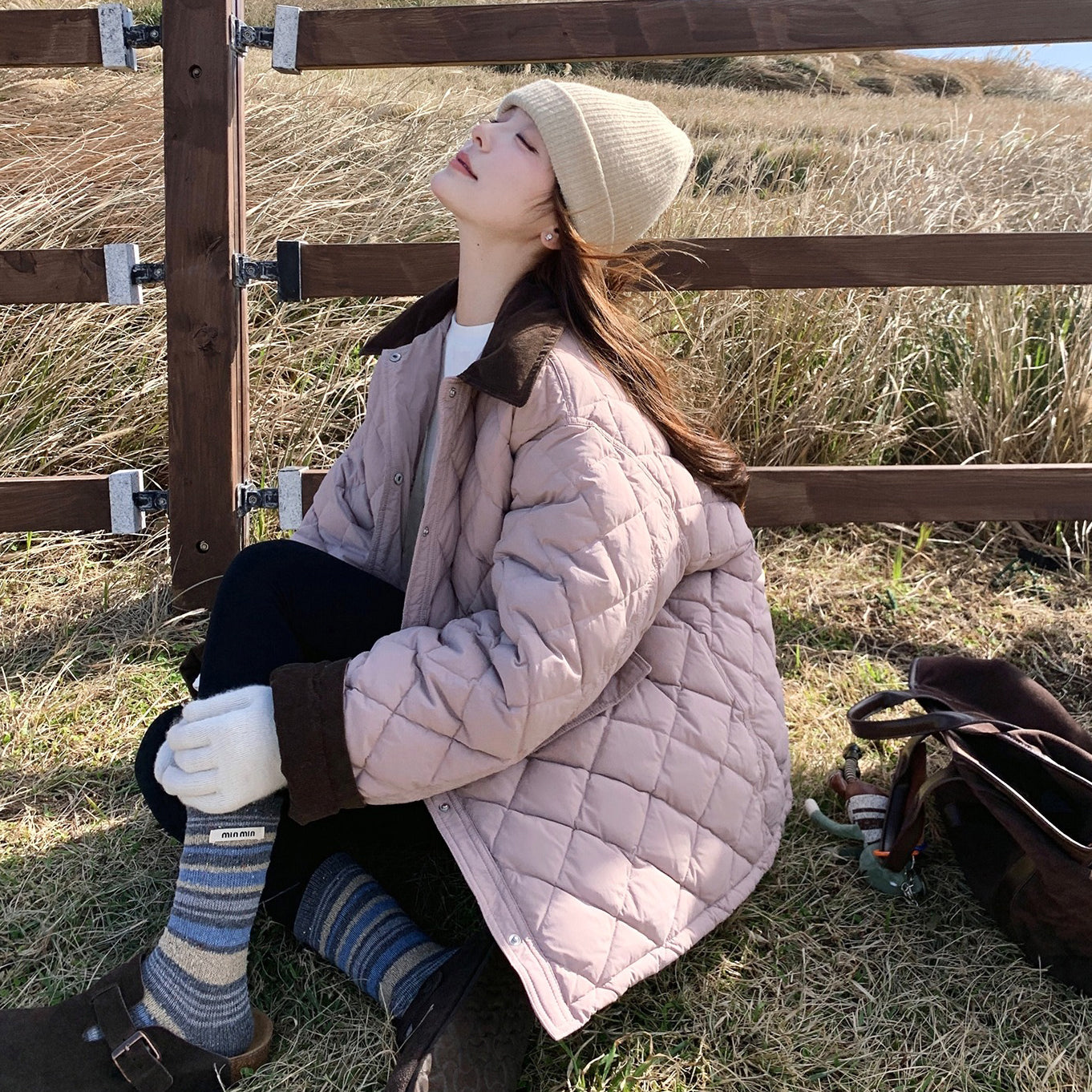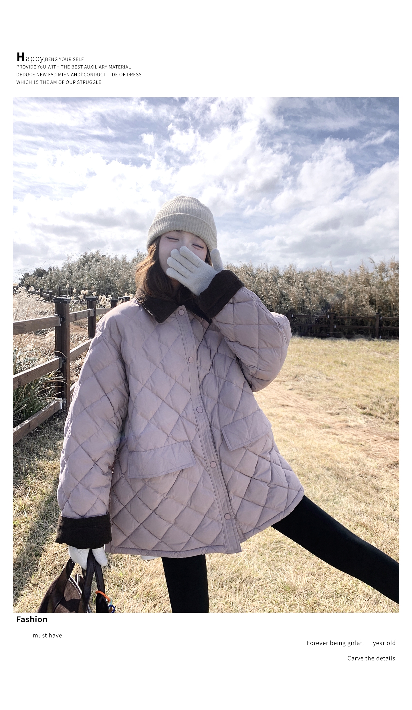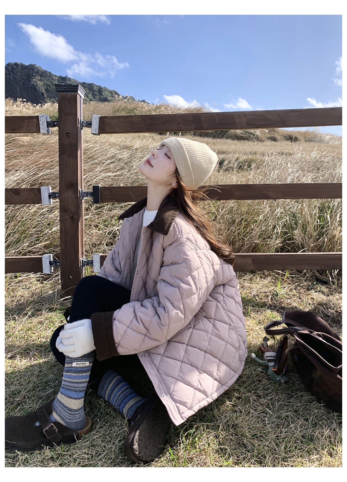 【アウター】レトロ 春 秋 冬 ボア襟 パーカーダウンジャケット 【JZシリーズ】