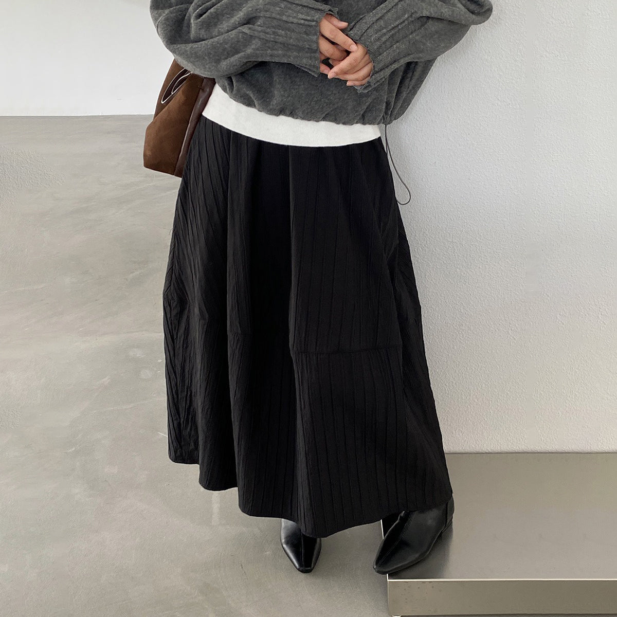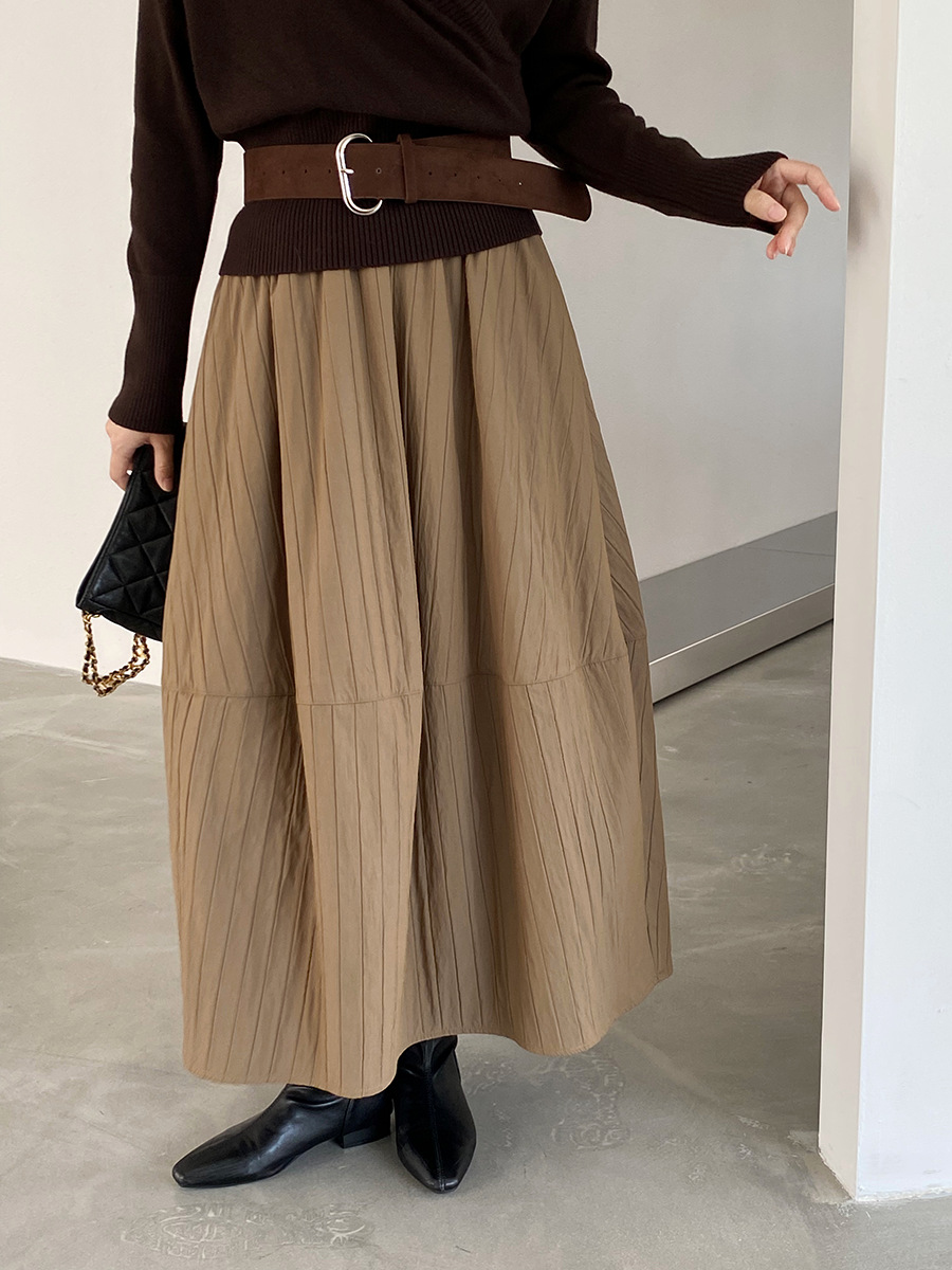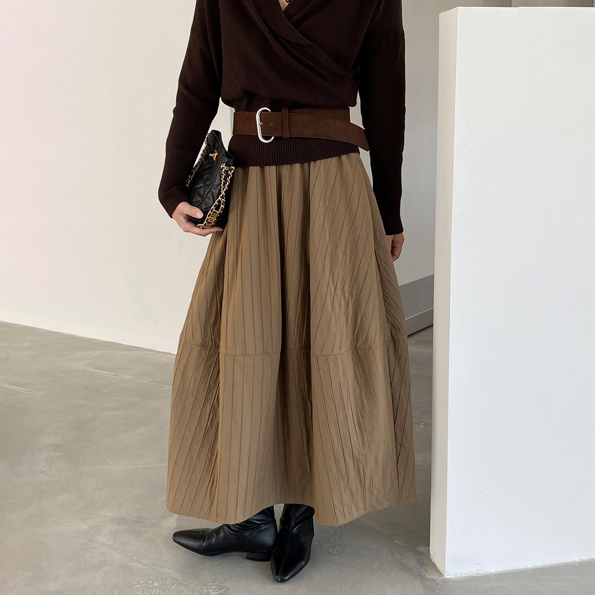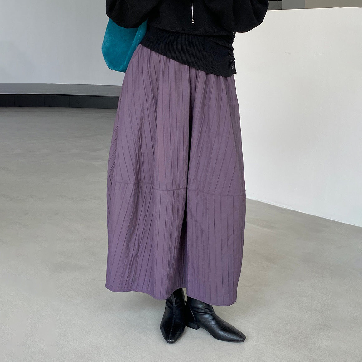 4カラー【ボトムス】ハイウエスト&バルーンシルエット⭐️あったか中長スカート レディース 春秋冬 花苞デザイン【JZシリーズ】