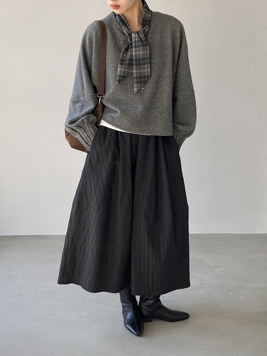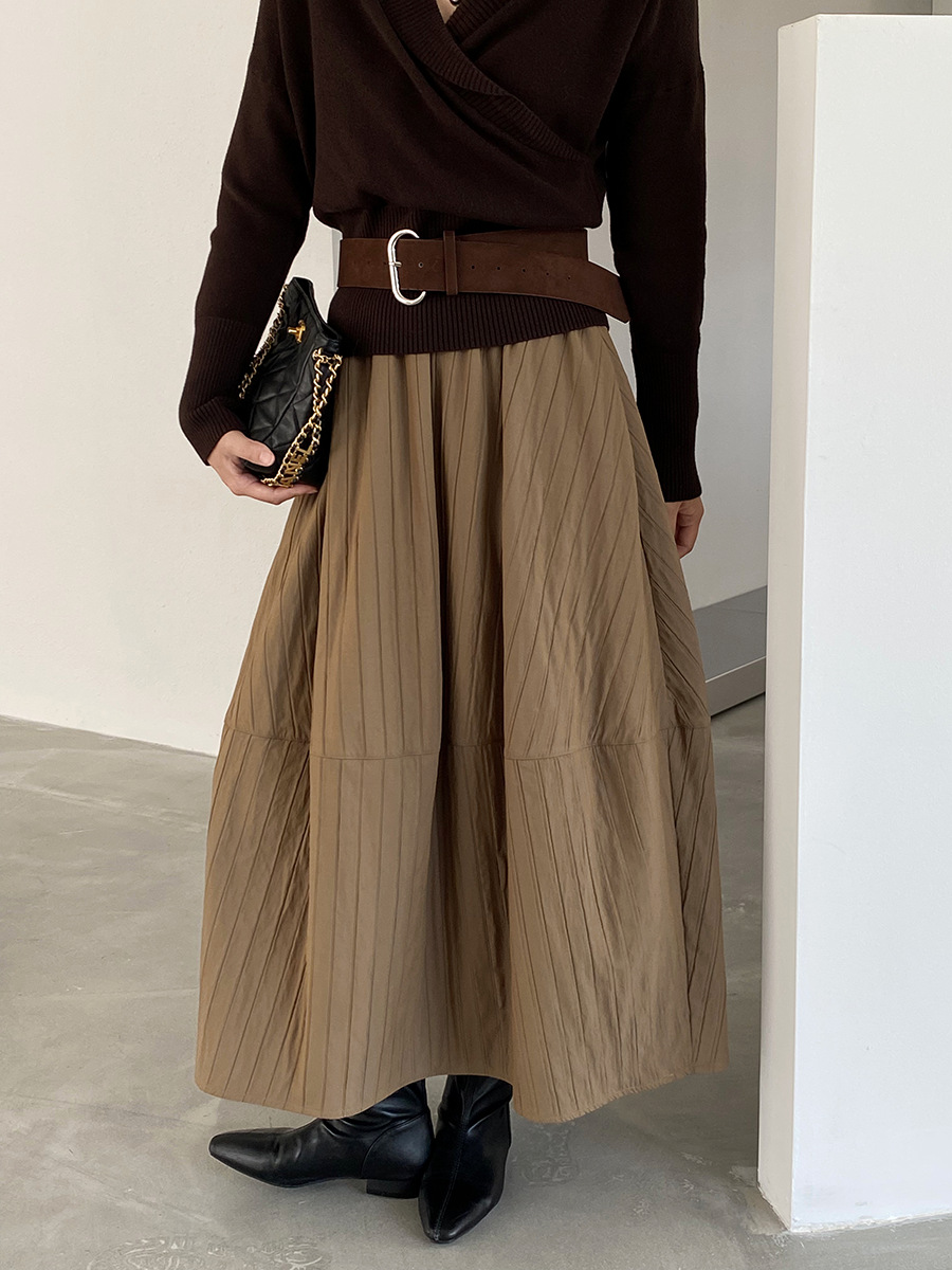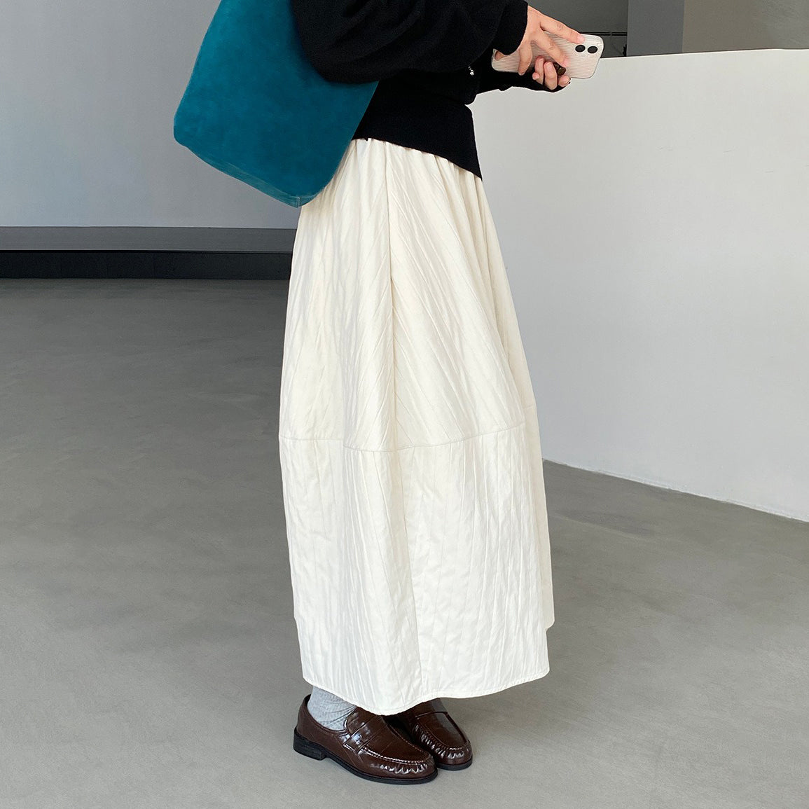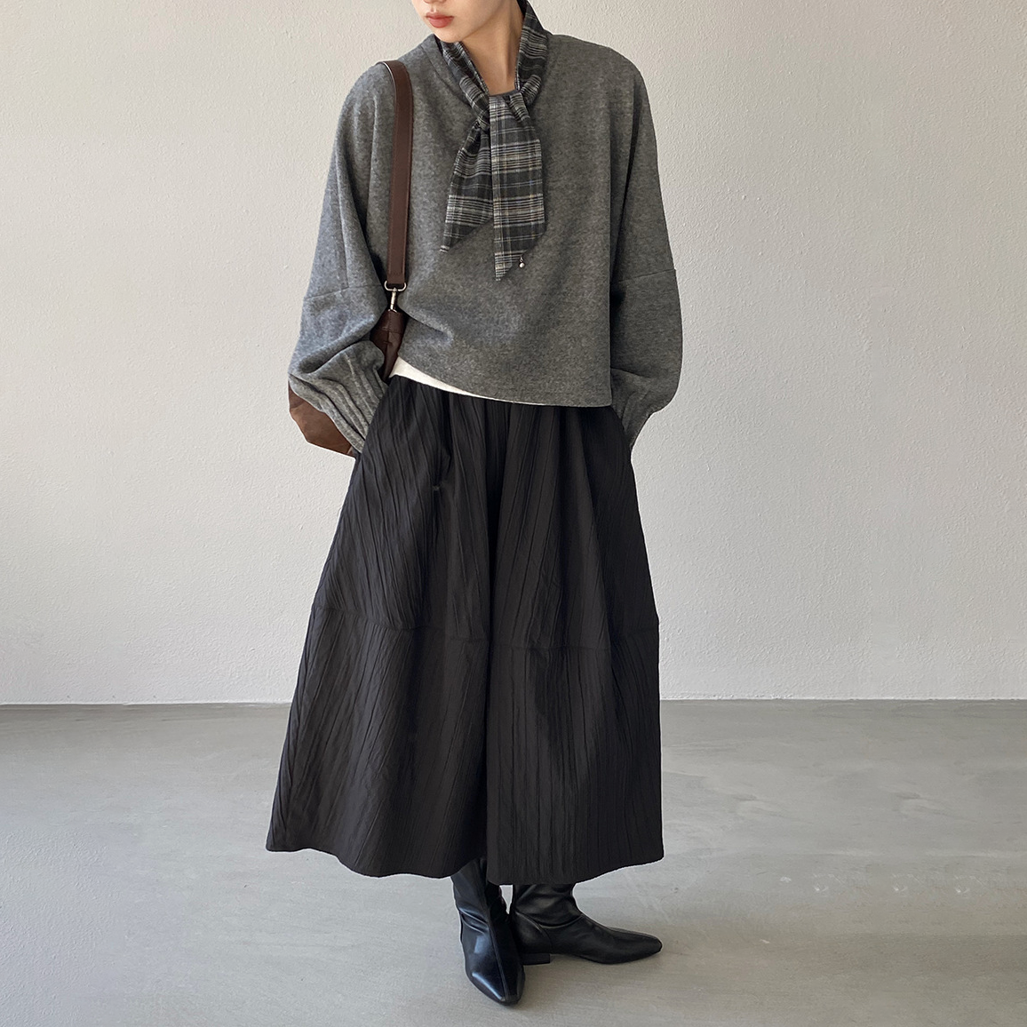 4カラー【ボトムス】ハイウエスト&バルーンシルエット⭐️あったか中長スカート レディース 春秋冬 花苞デザイン【JZシリーズ】