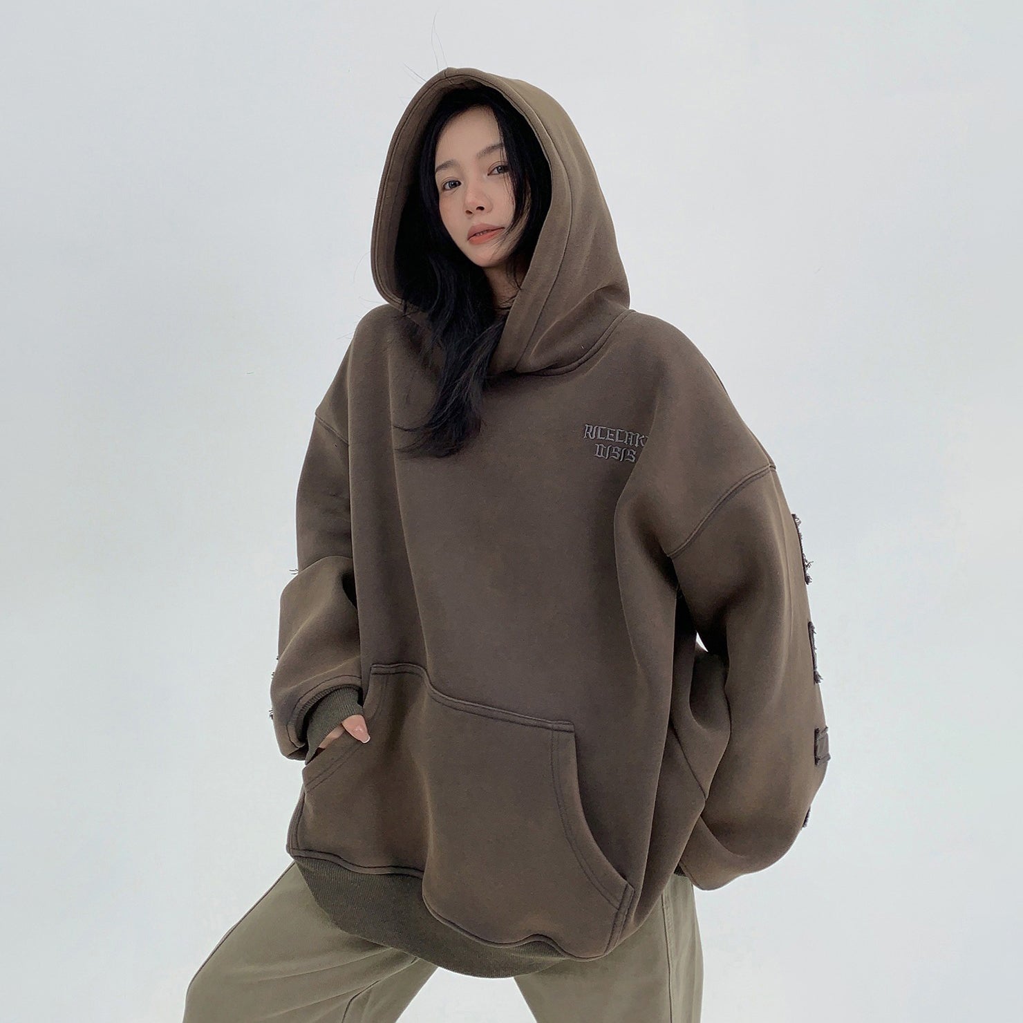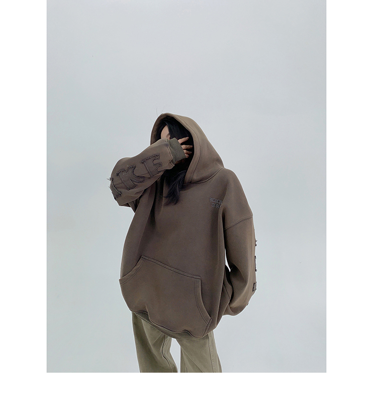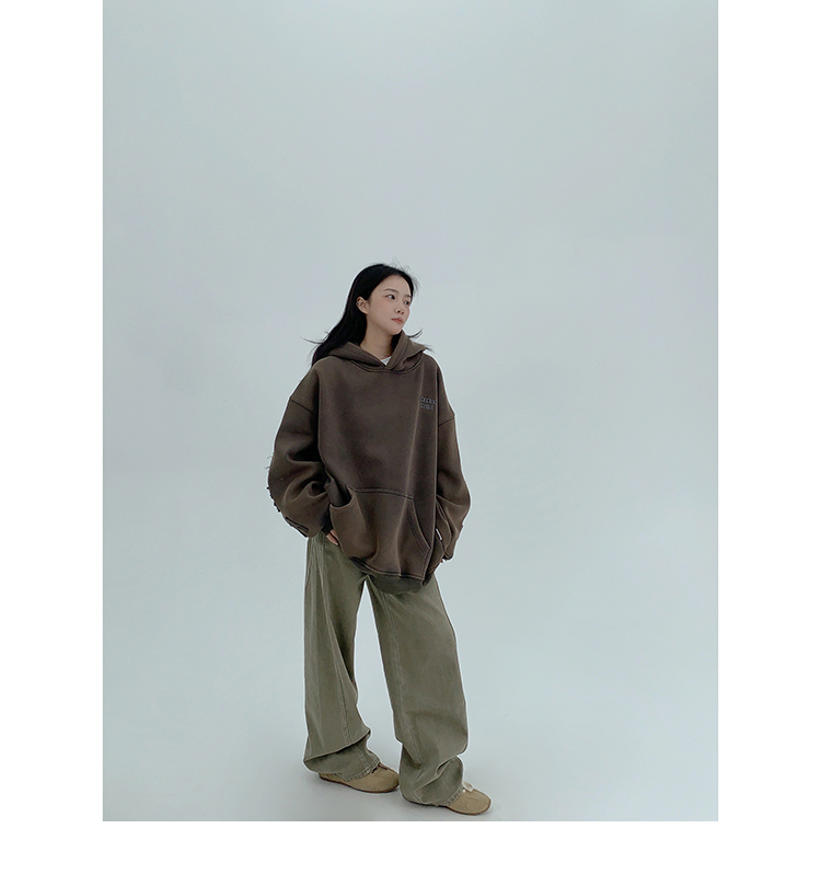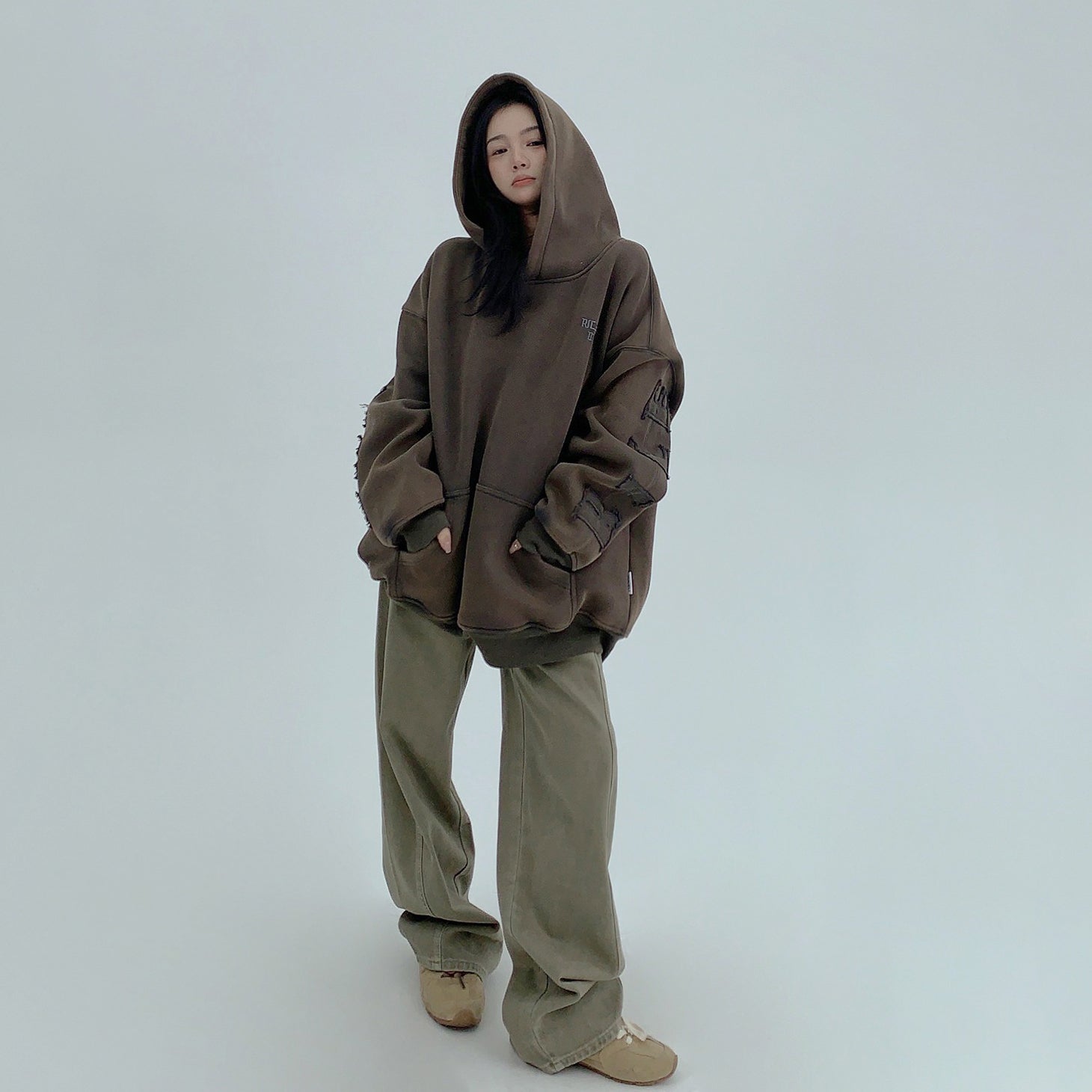 【トップス】秋冬 男女兼用 ダメージ加工 裏起毛 フード付き ルーズ カップル ウェア パーカー【FCシリーズ】