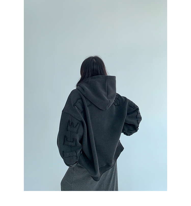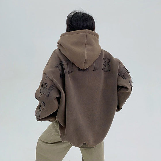 【トップス】リラックス感 ゆったりシルエット ダメージ加工 刺繍 春 秋 冬 フード付き パーカー 【FCシリーズ】