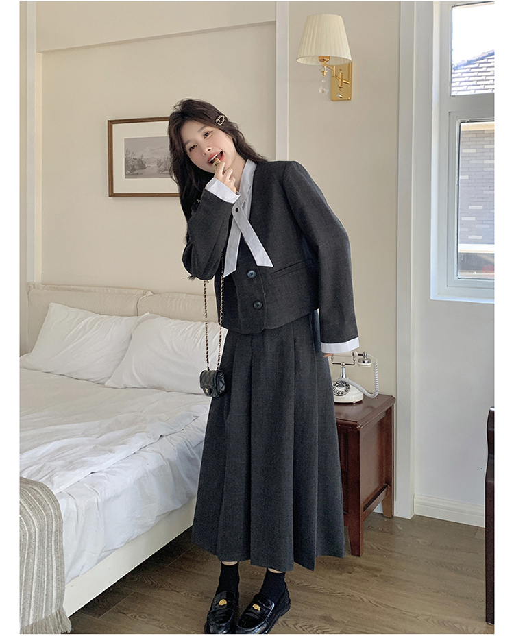 【セットアップ】大人可愛い 高級感 シャネル風 フェイクレイヤード 気質よい 2点セット【JZシリーズ】