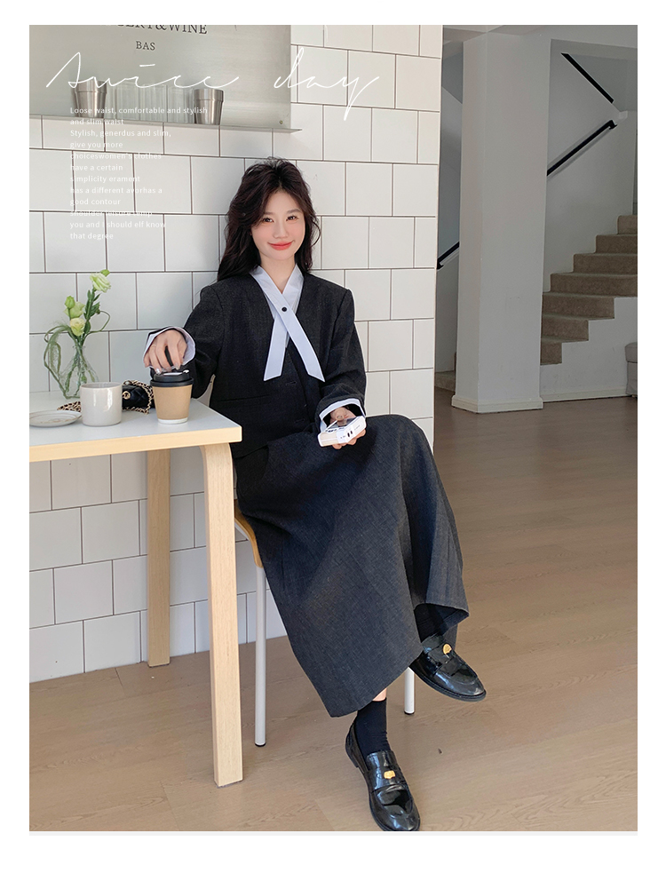 【ワンピース】細見え 日系 Vネック 無地 長袖ワンピース 切替デザイン ゆったり 気質ロング【JZシリーズ】【AHシリーズ】