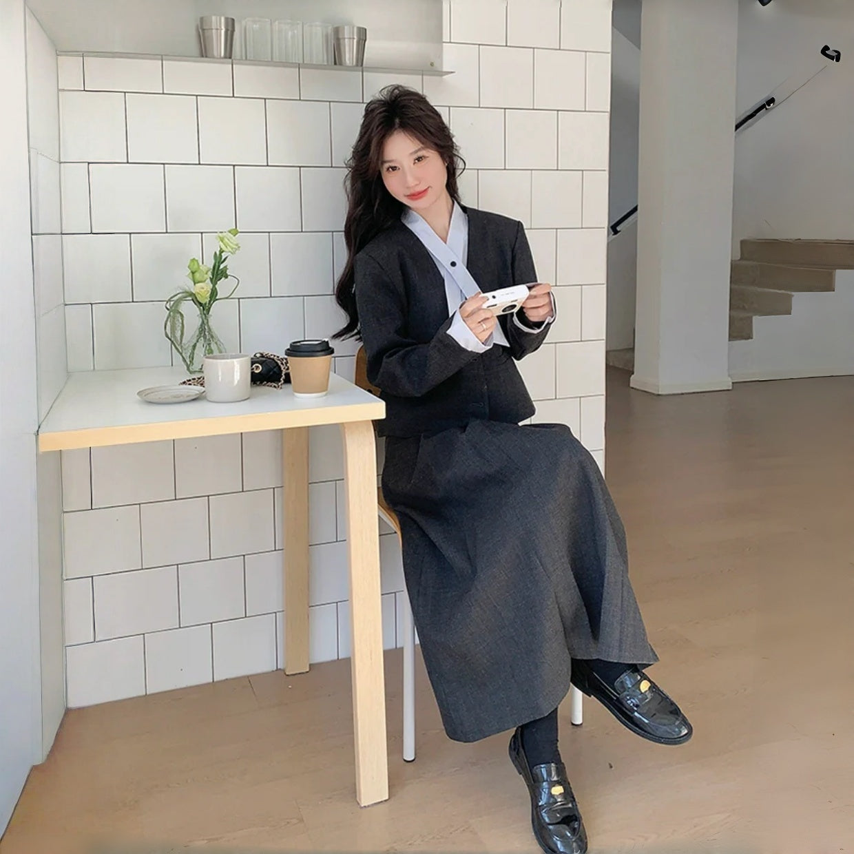 【セットアップ】秋新作 コーデュロイ 長袖トップス+スカート 上下セット レディース レトロ 細見え【JZシリーズ】