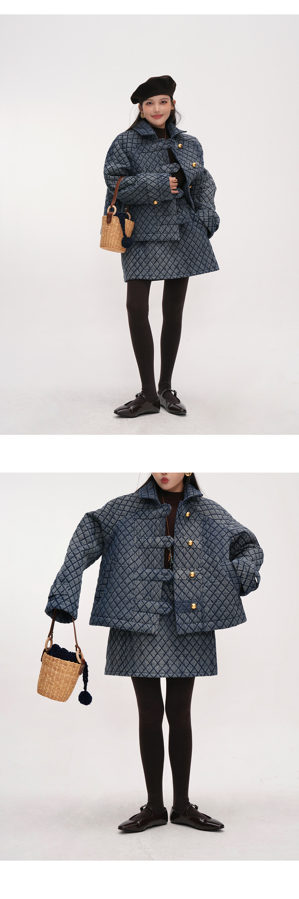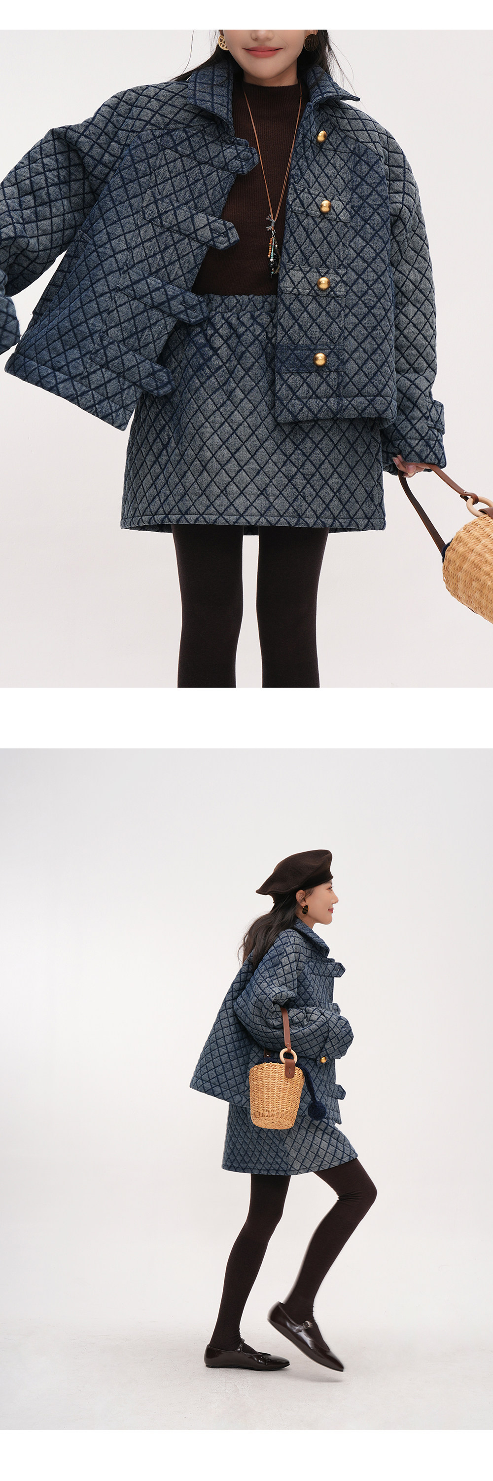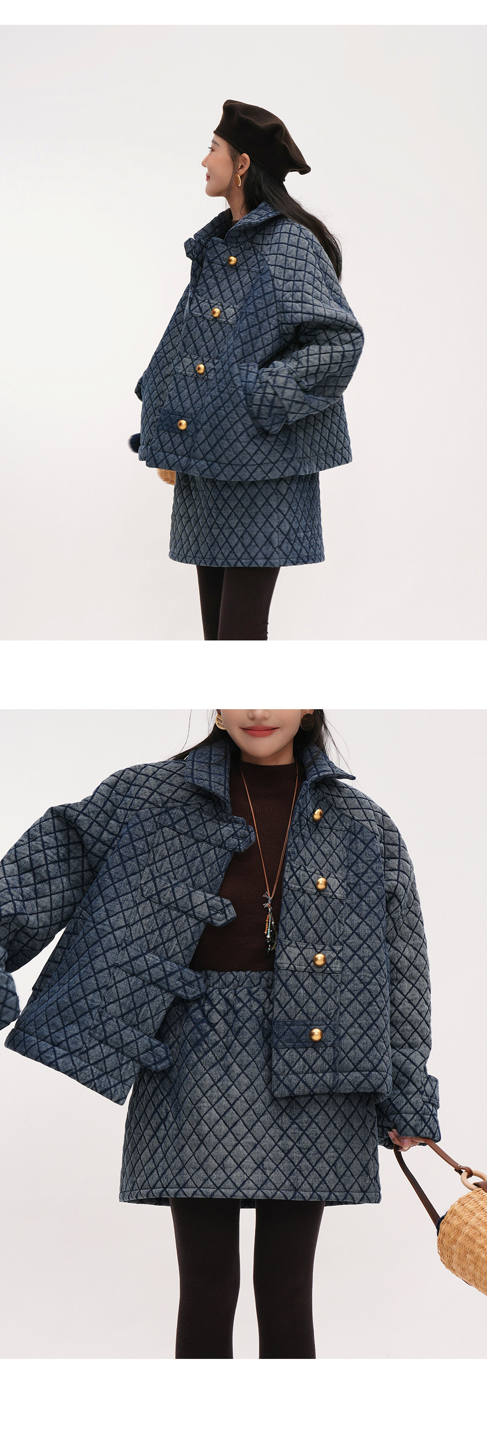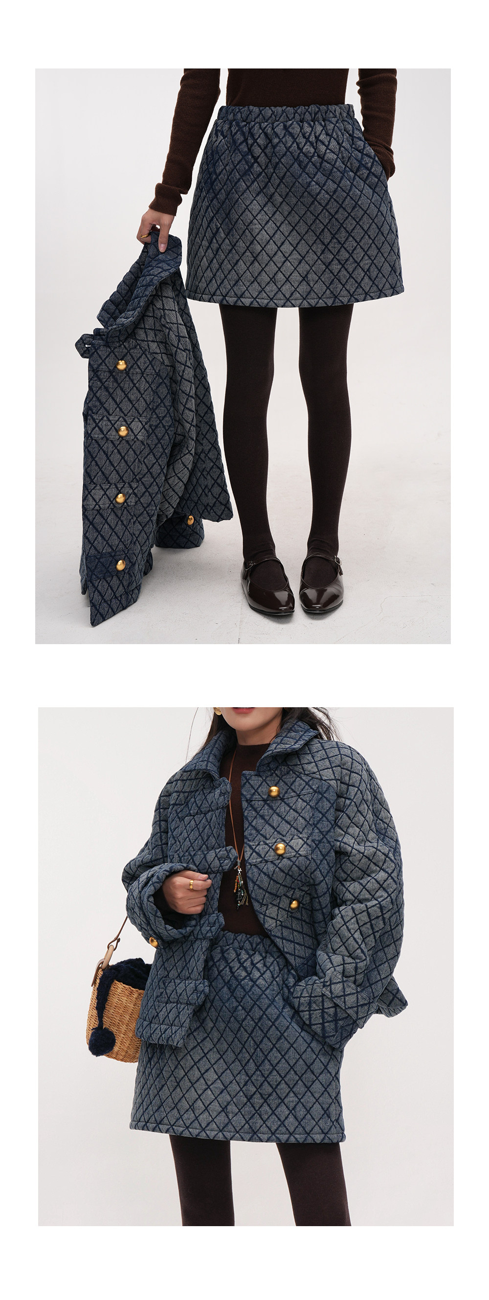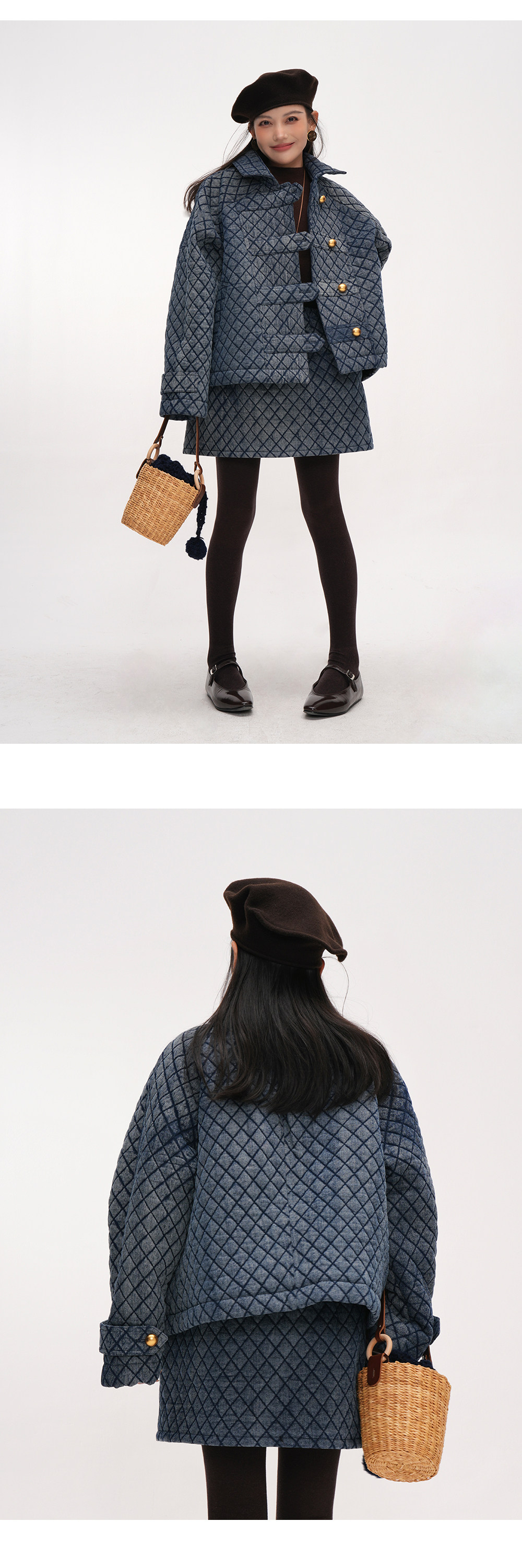 【セットアップ】【単品注文】レトロ可愛い♡ジャケット + スカート2点上下セット【JZシリーズ】【20~25日内発送】