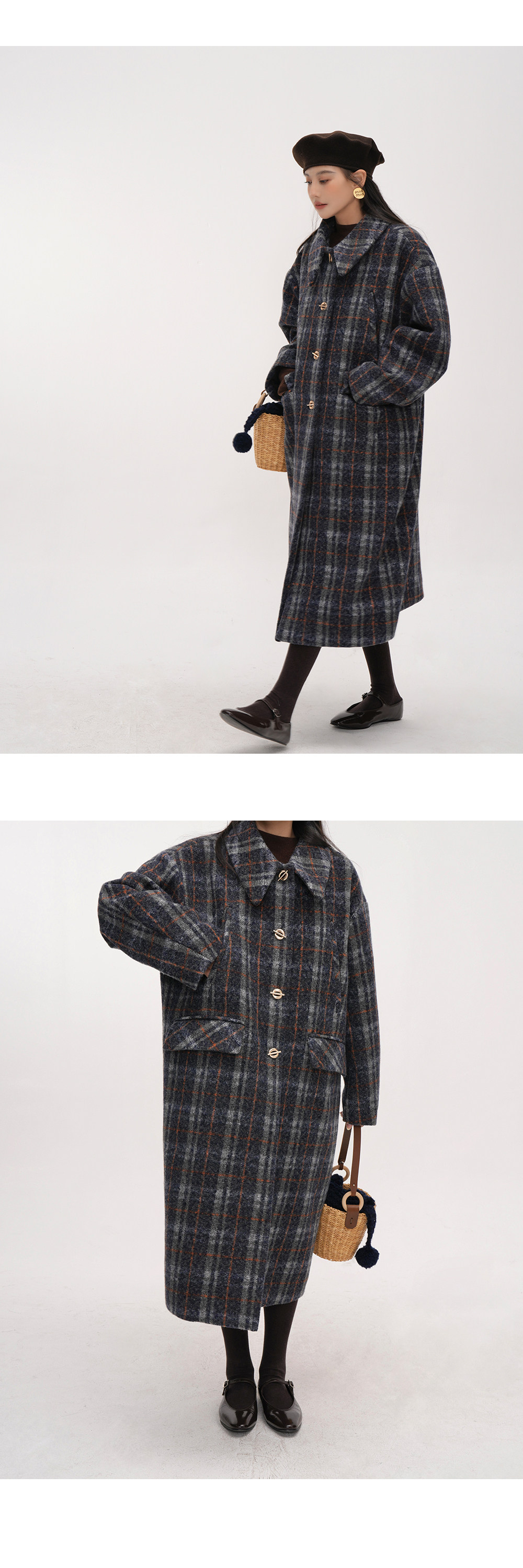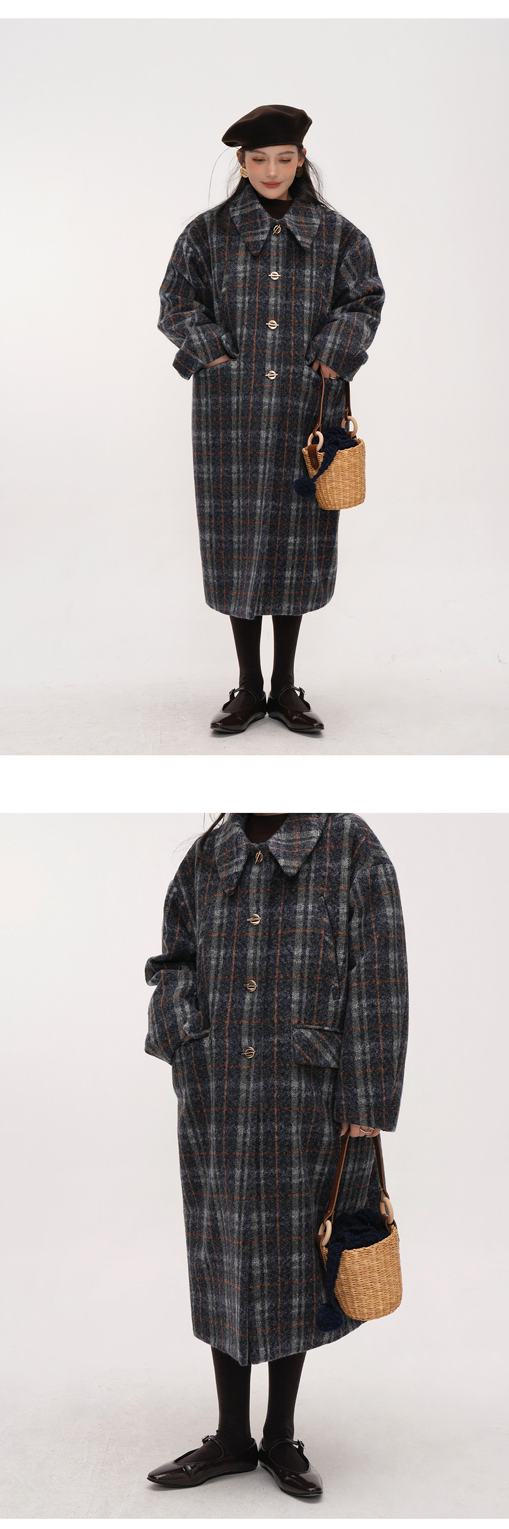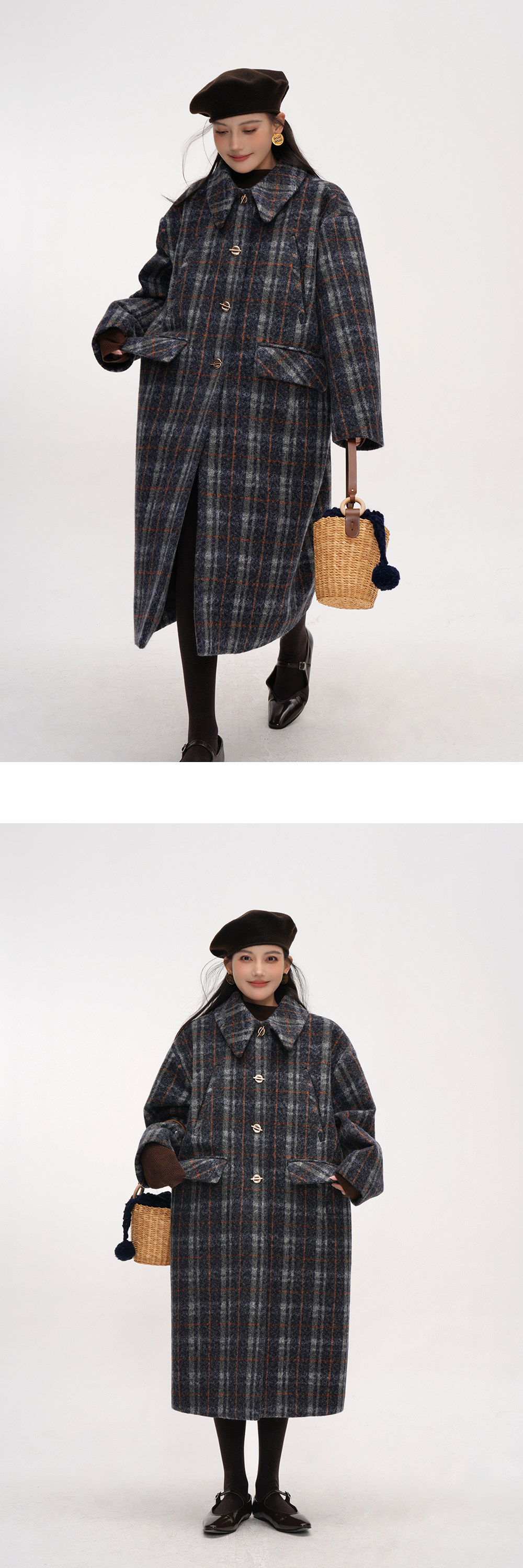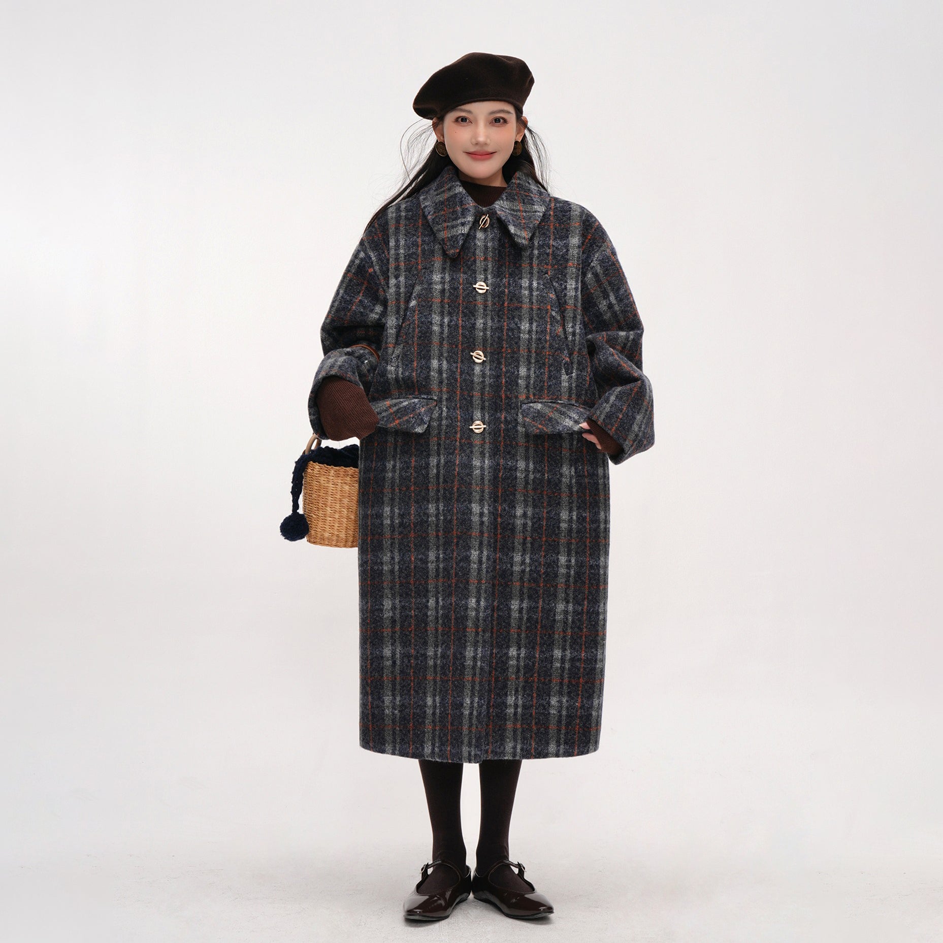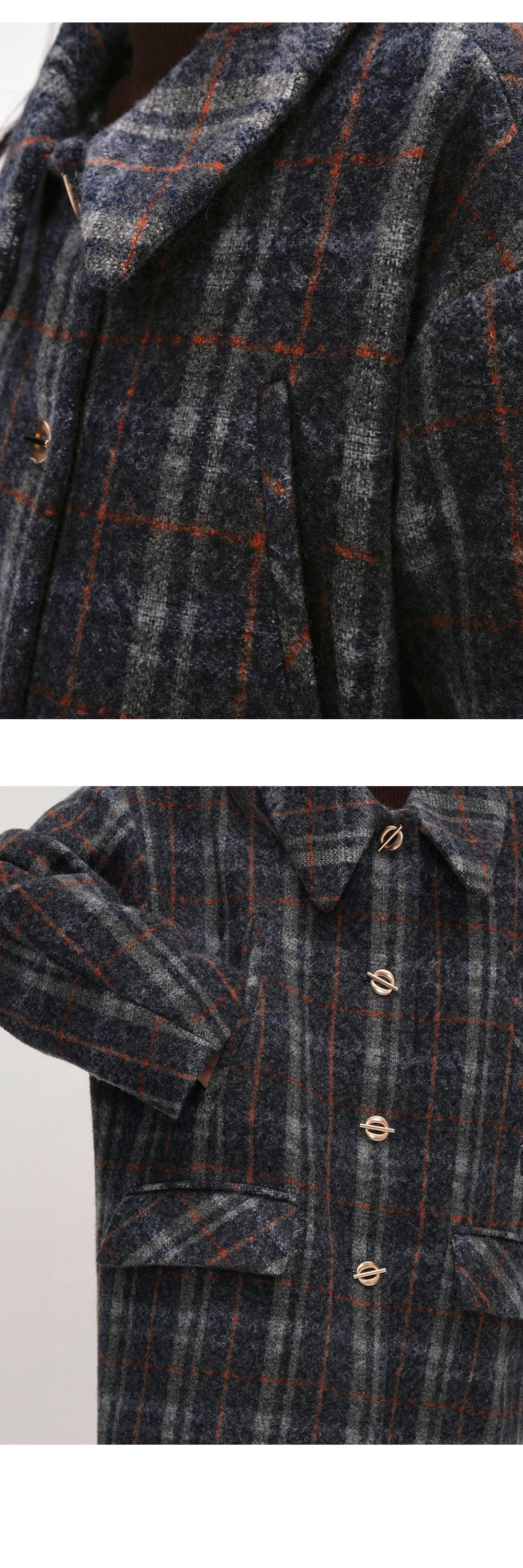 【アウター】チェック柄 ウール調レディース 秋冬 ゆったり シルエット ミドル丈 レトロ コート 【JZシリーズ】【25~30日内発送】