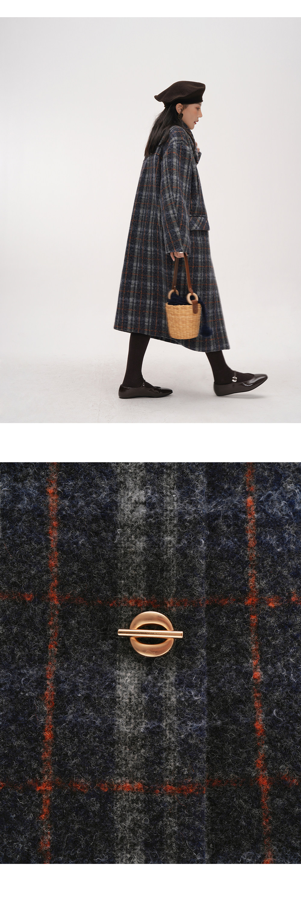 【商品名】【アウター】チェック柄 ウール調レディース 秋冬 ゆったり シルエット ミドル丈 レトロ コート 【JZシリーズ】
