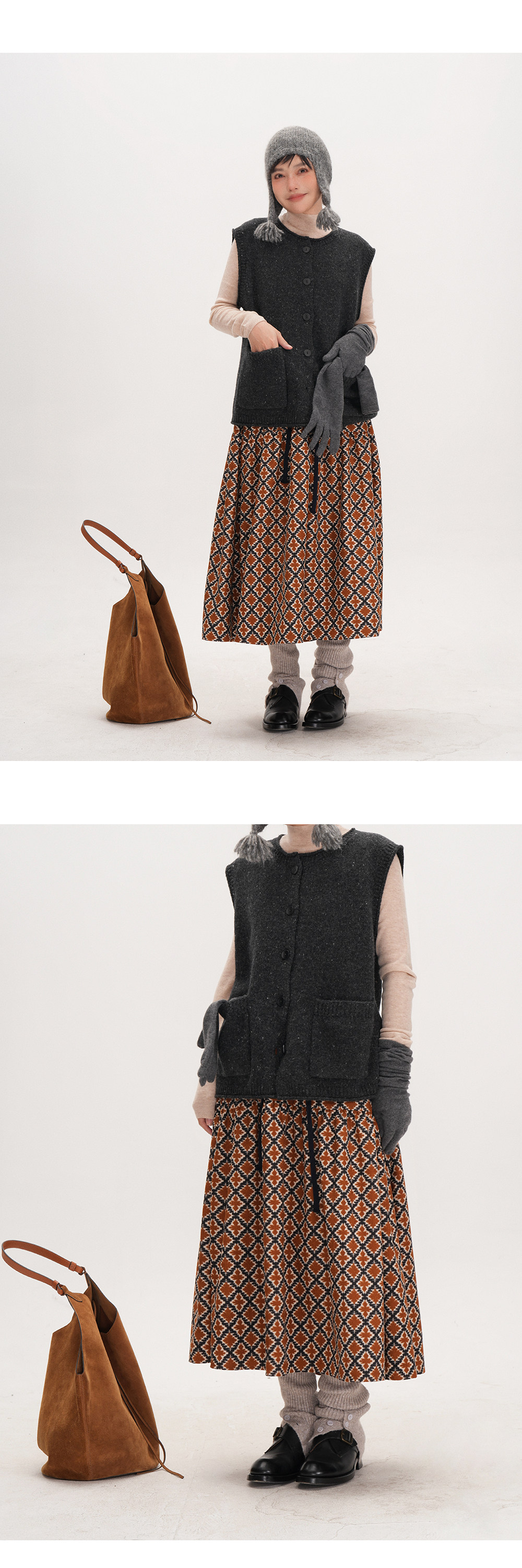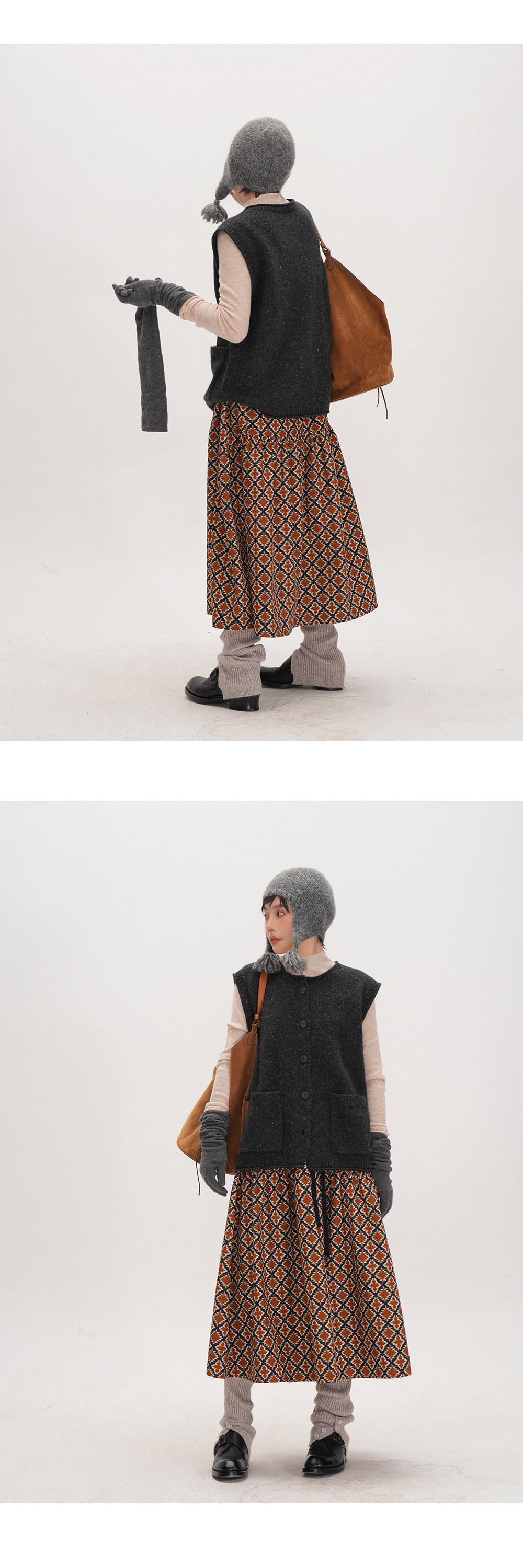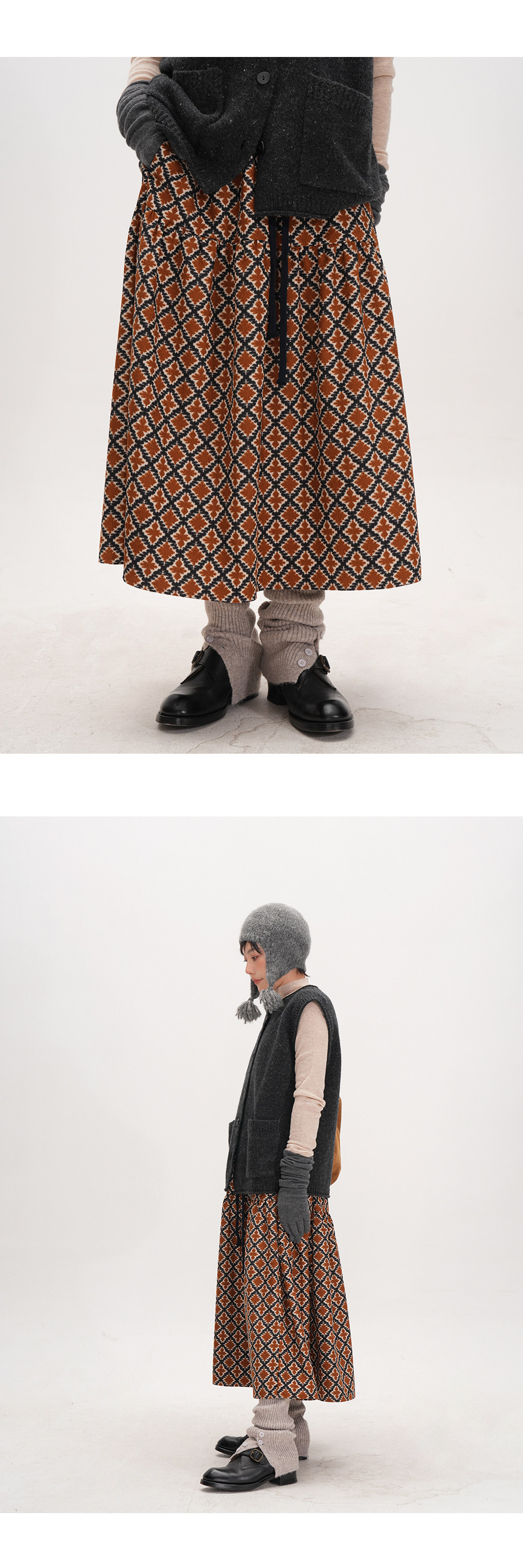 【ボトムス】秋冬らしい温もり素材 ⭐ プリントコーデュロイ ハイウエスト ゴムウエスト 学院風 シンプル ミモレ丈 スカート【JZシリーズ】【SHシリーズ】【15~20日内発送】
