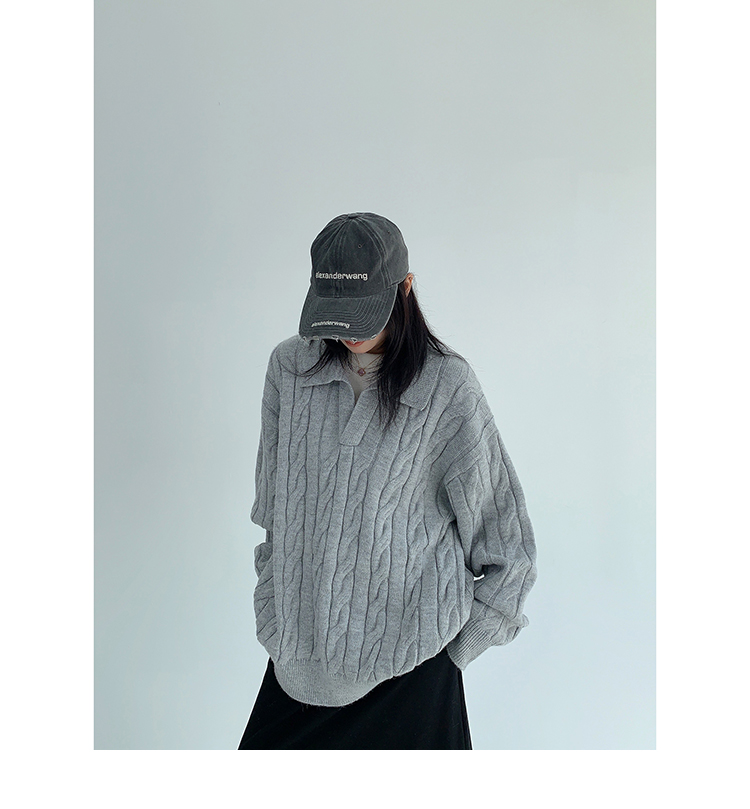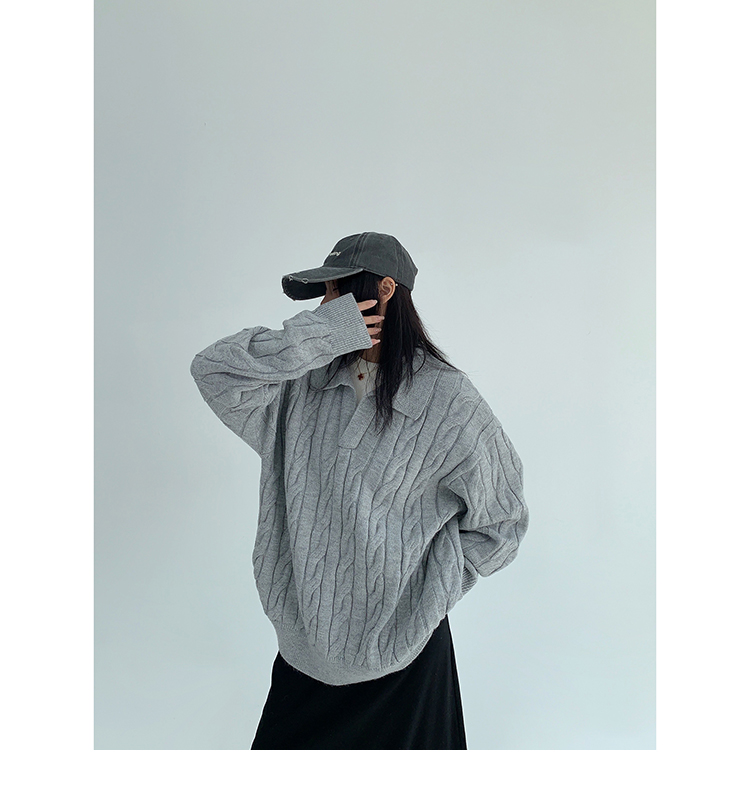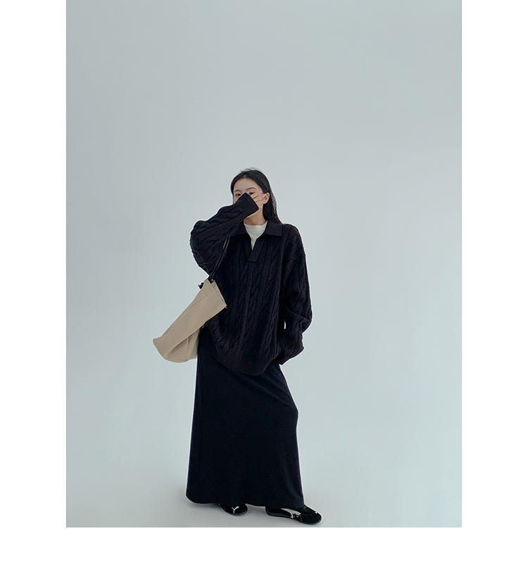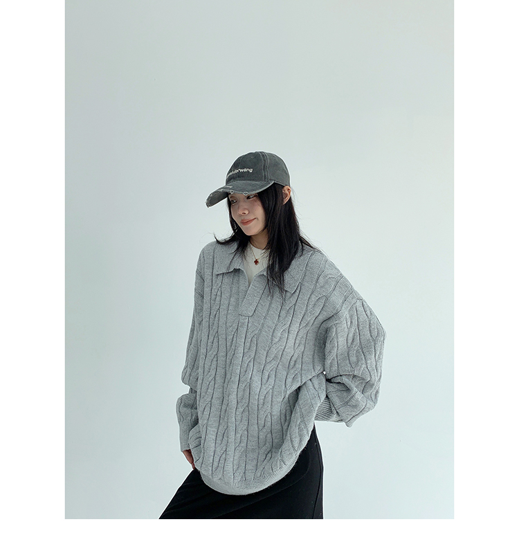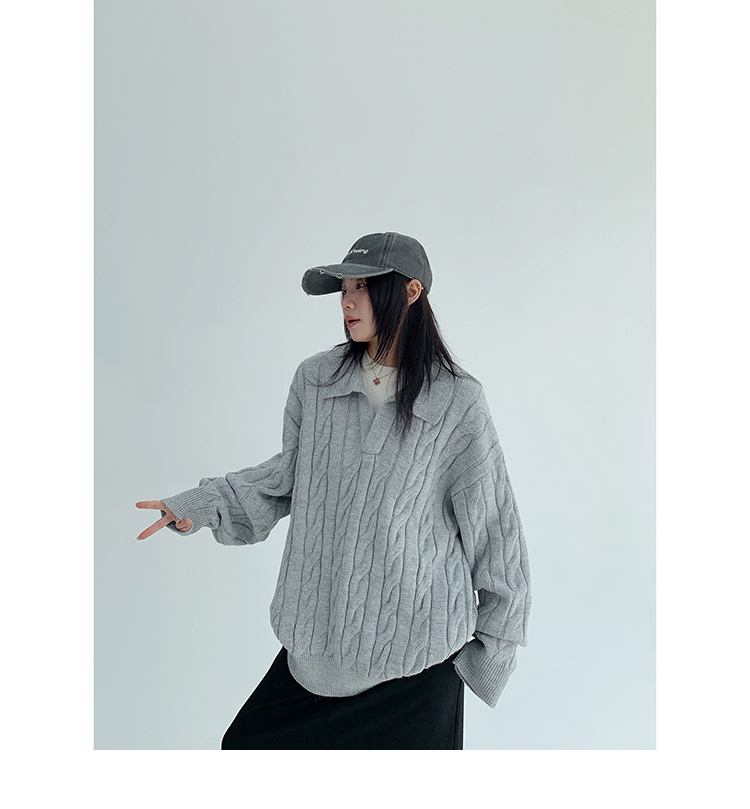 【トップス】フェイクレイヤード風 プルオーバー ニット レディース ゆったり厚手 折り襟デザイン【FCシリーズ】