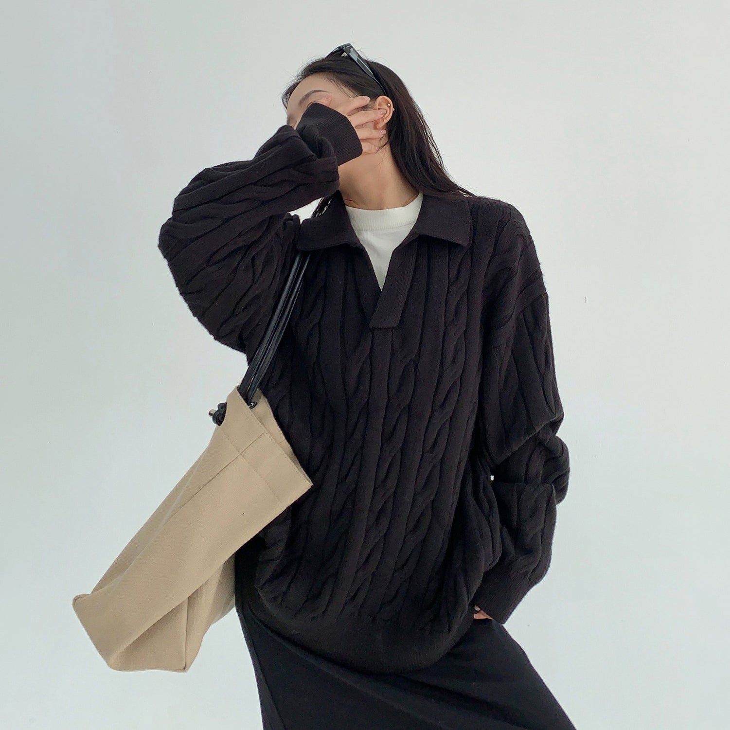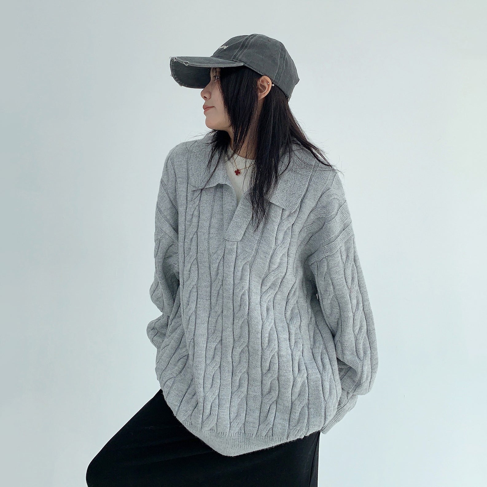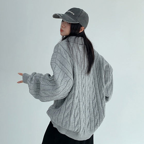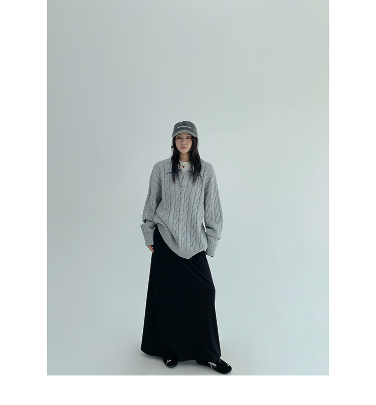 【トップス】フェイクレイヤード風 プルオーバー ニット レディース ゆったり厚手 折り襟デザイン【FCシリーズ】