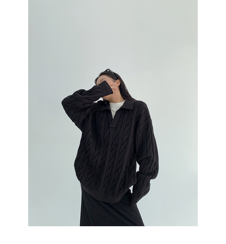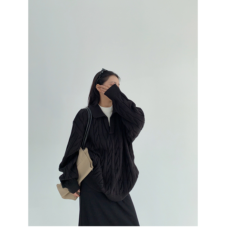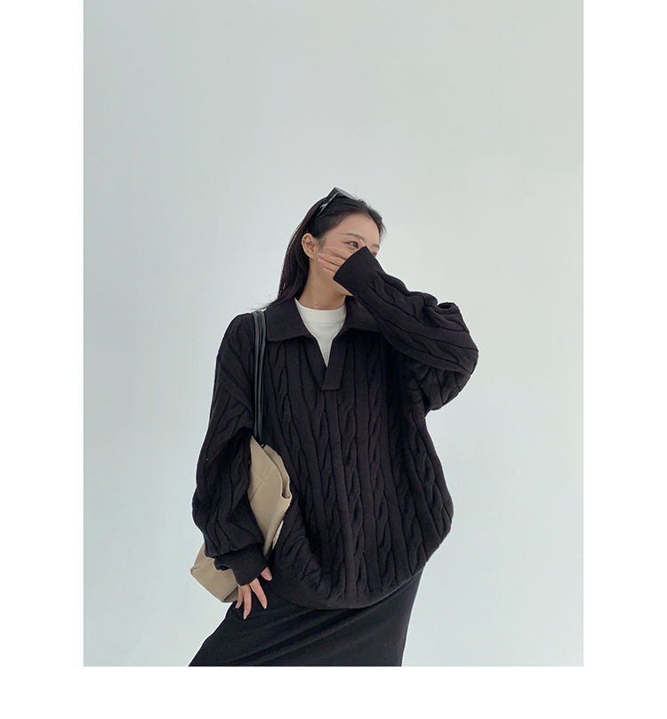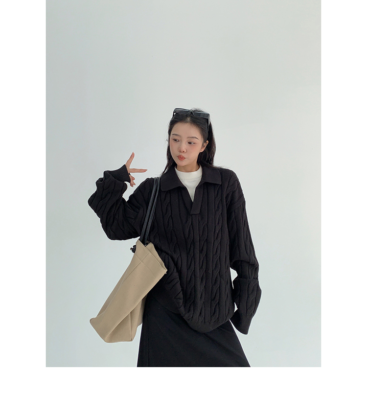 【商品名】【トップス】フェイクレイヤード風 プルオーバー ニット レディース ゆったり厚手 折り襟デザイン【FCシリーズ】