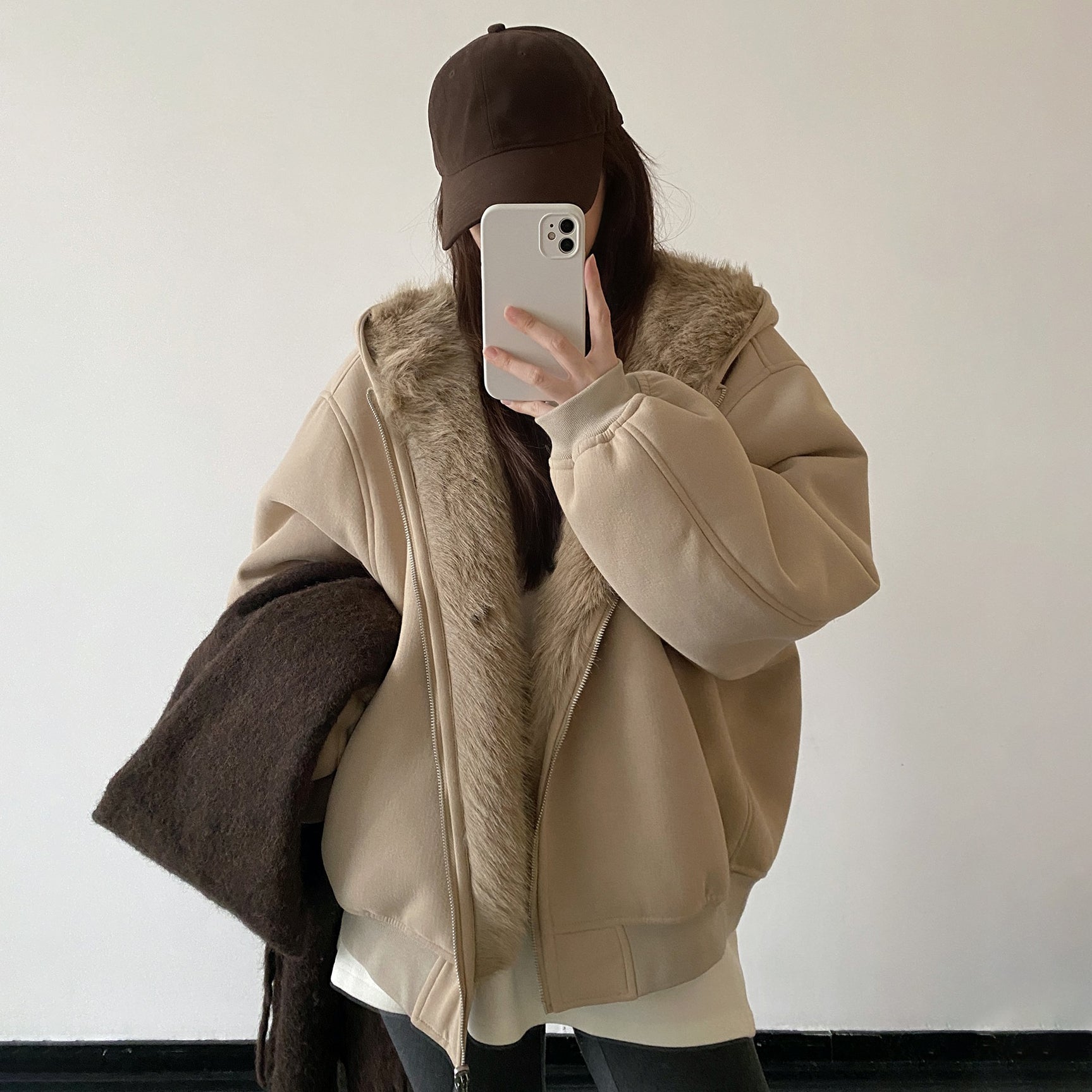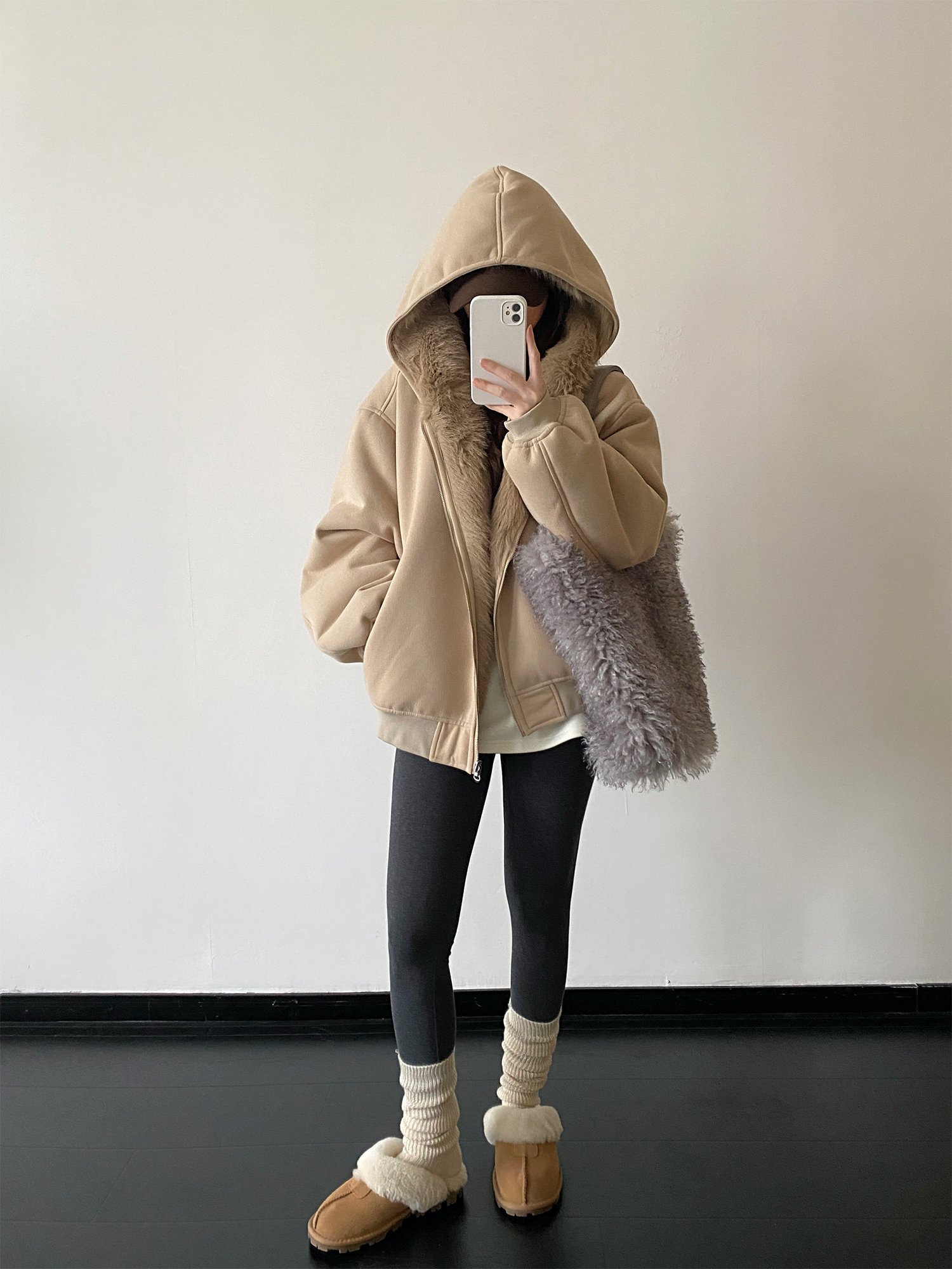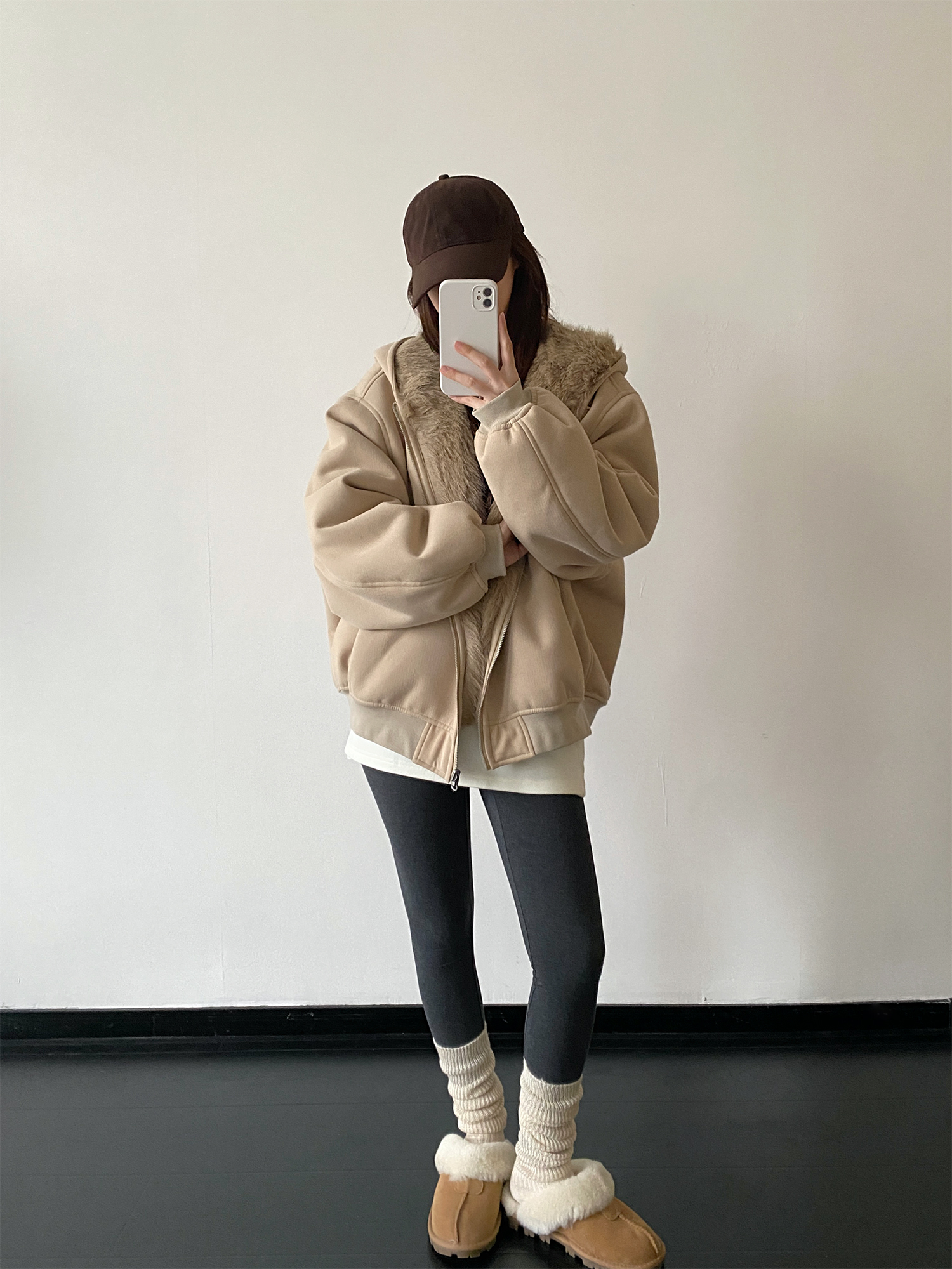 【アウター】レトロ 春 秋 冬 ボア襟 パーカーダウンジャケット 【JZシリーズ】