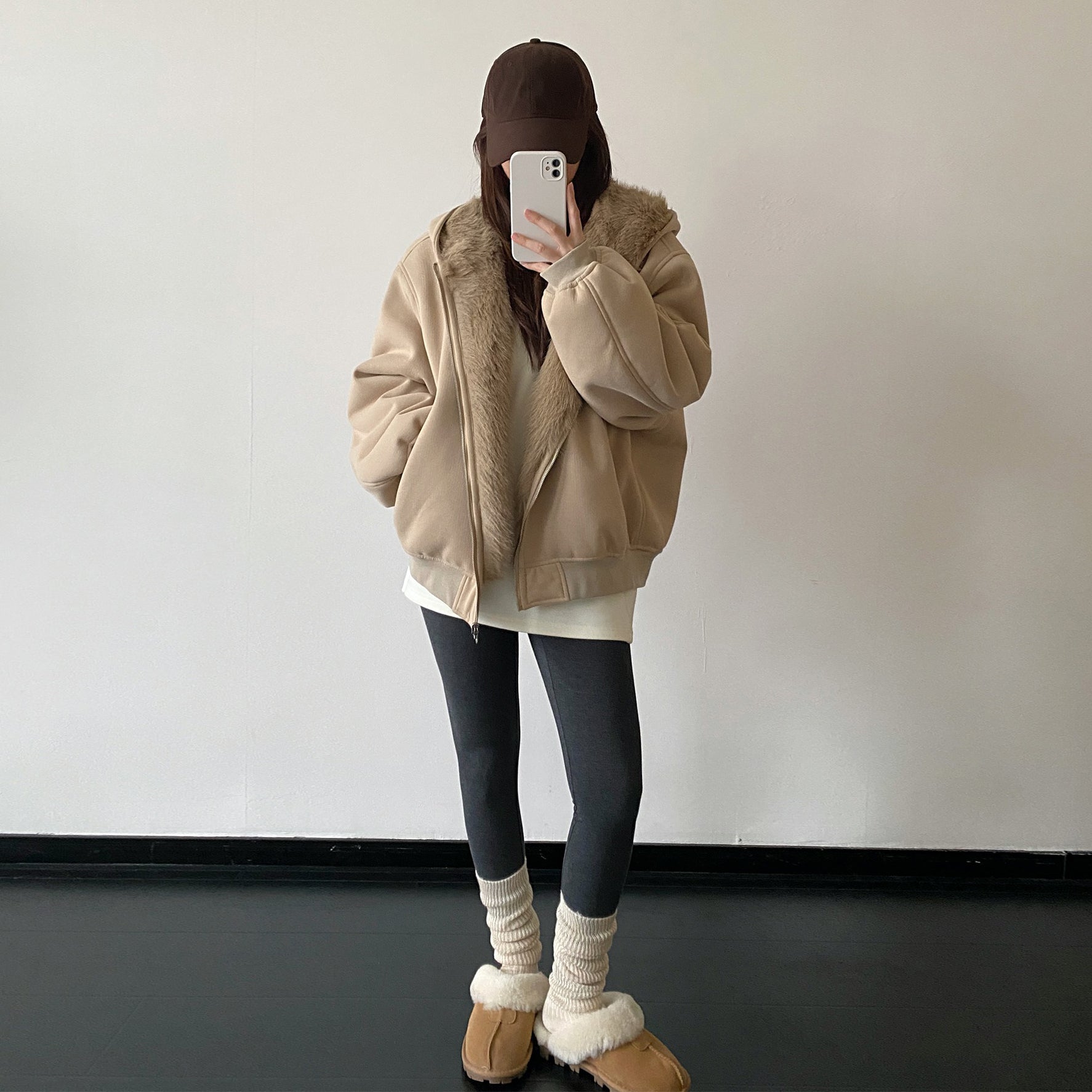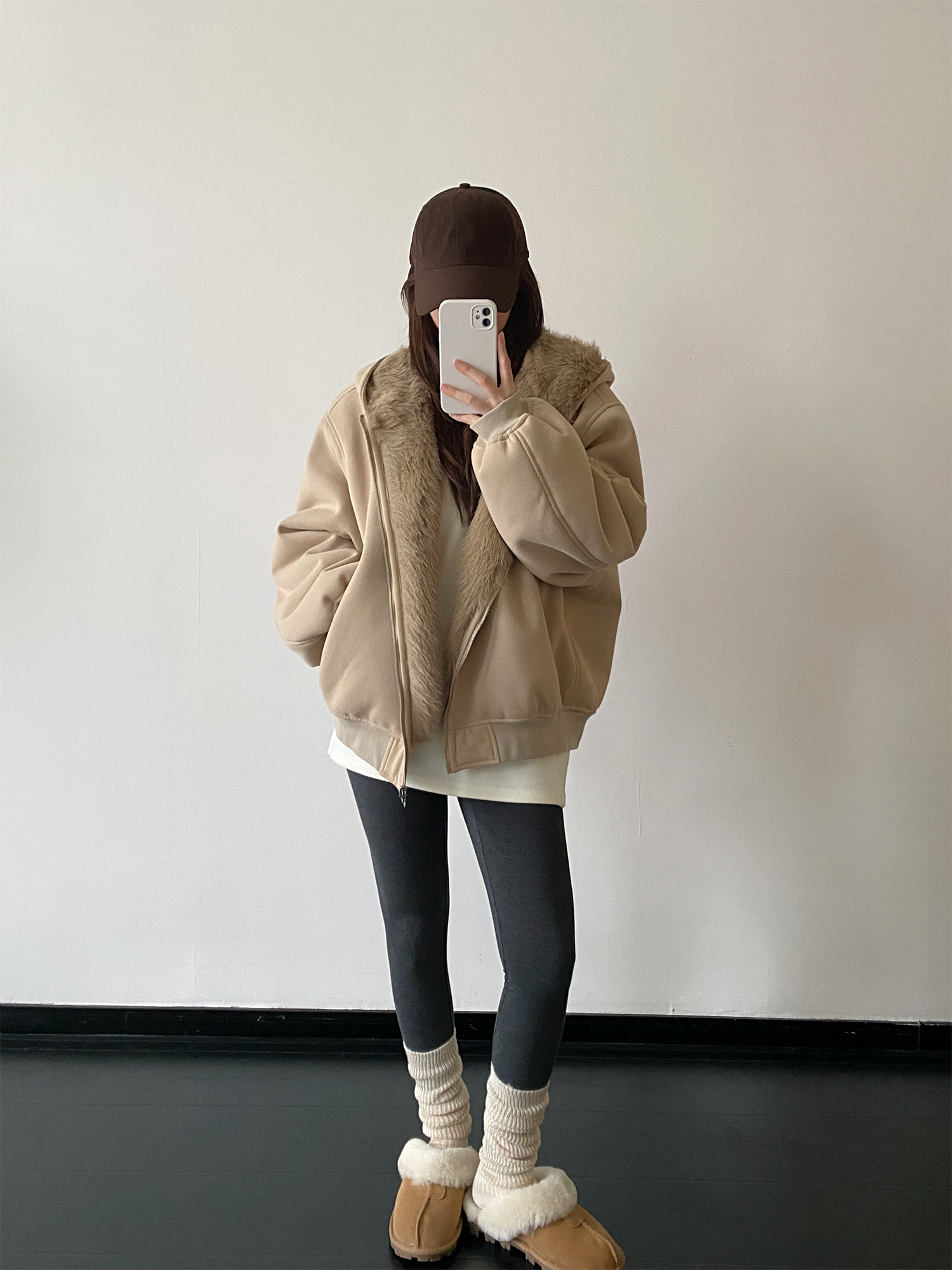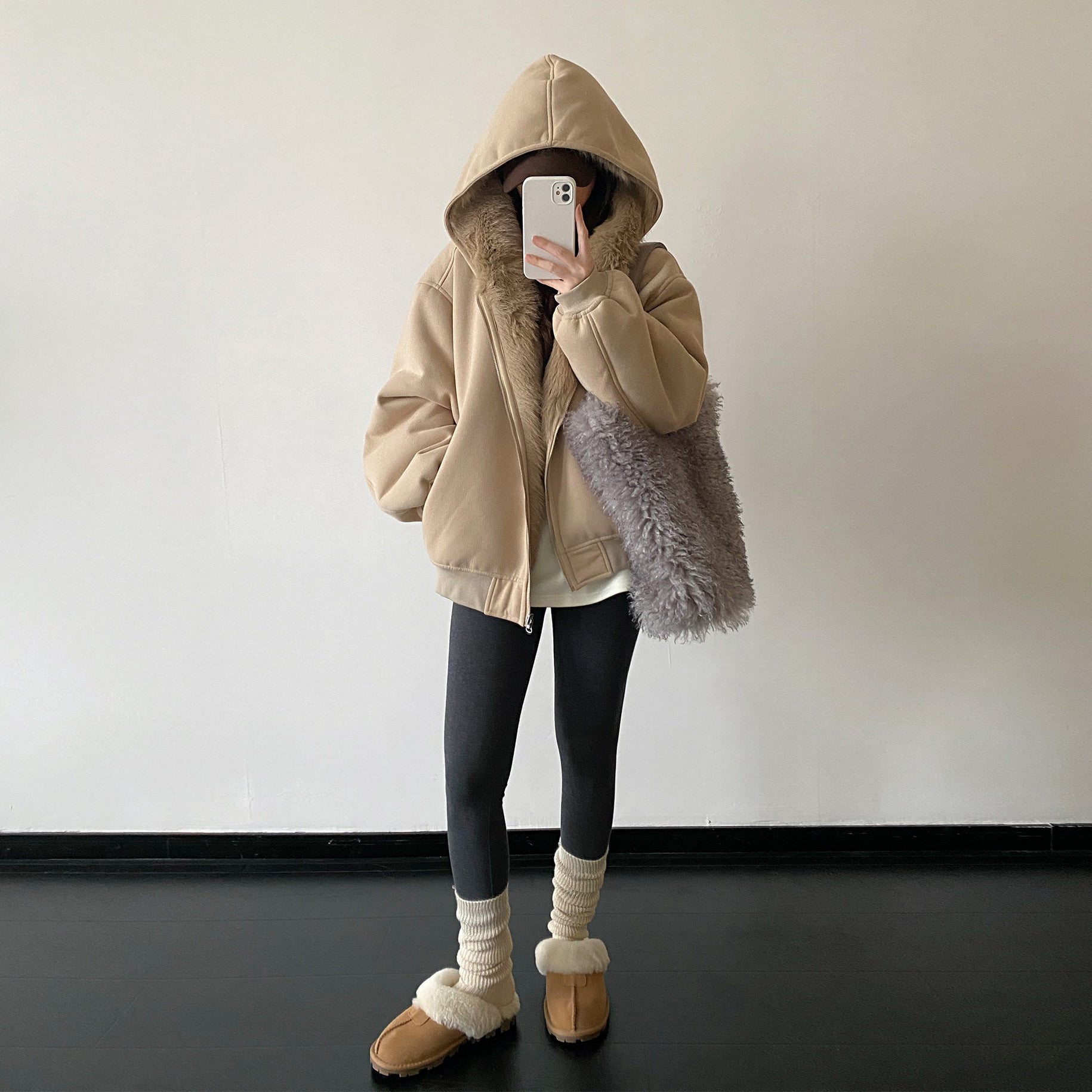 【アウター】レトロ 春 秋 冬 ボア襟 パーカーダウンジャケット 【JZシリーズ】